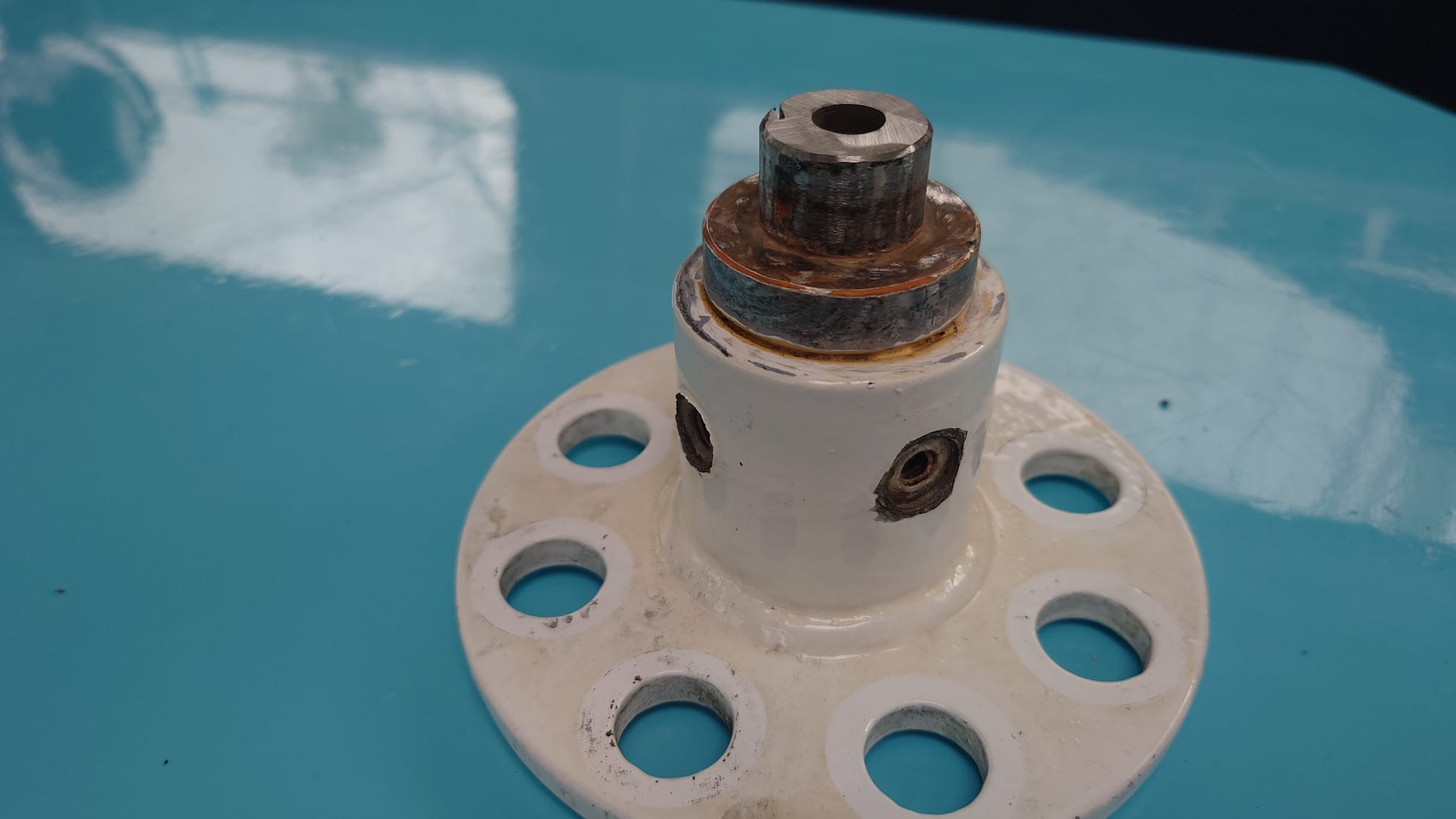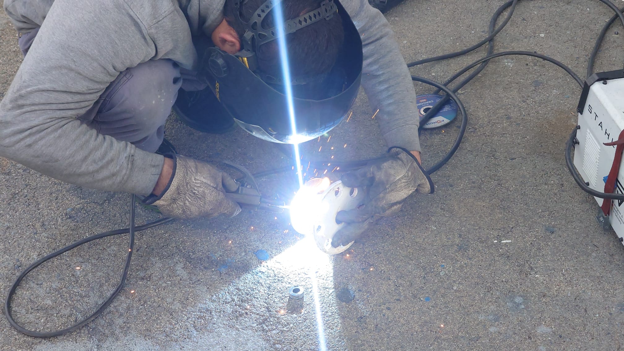 After that, he welds the hole where the speed sensor was. He brought a round piece of 5mm steel for that.