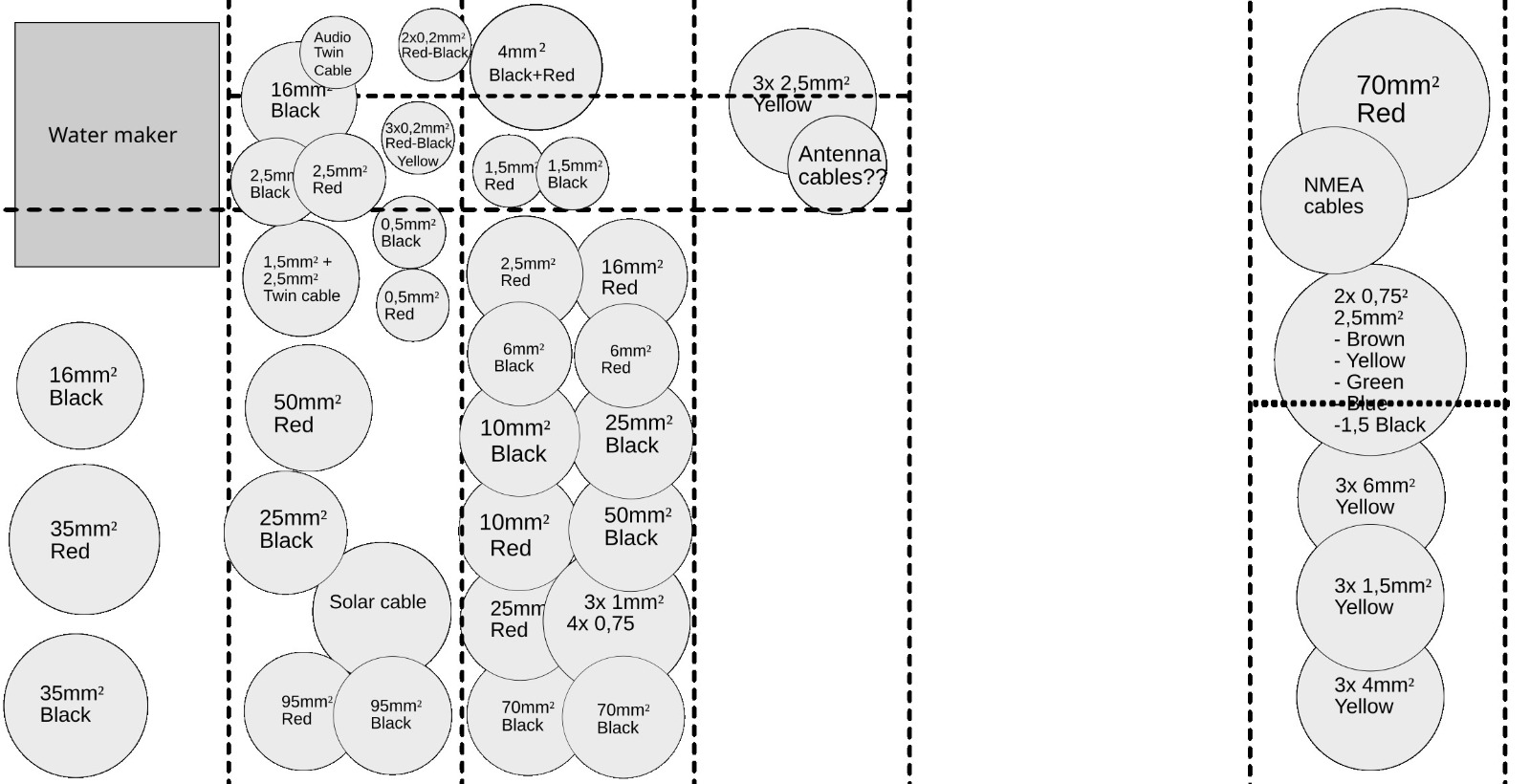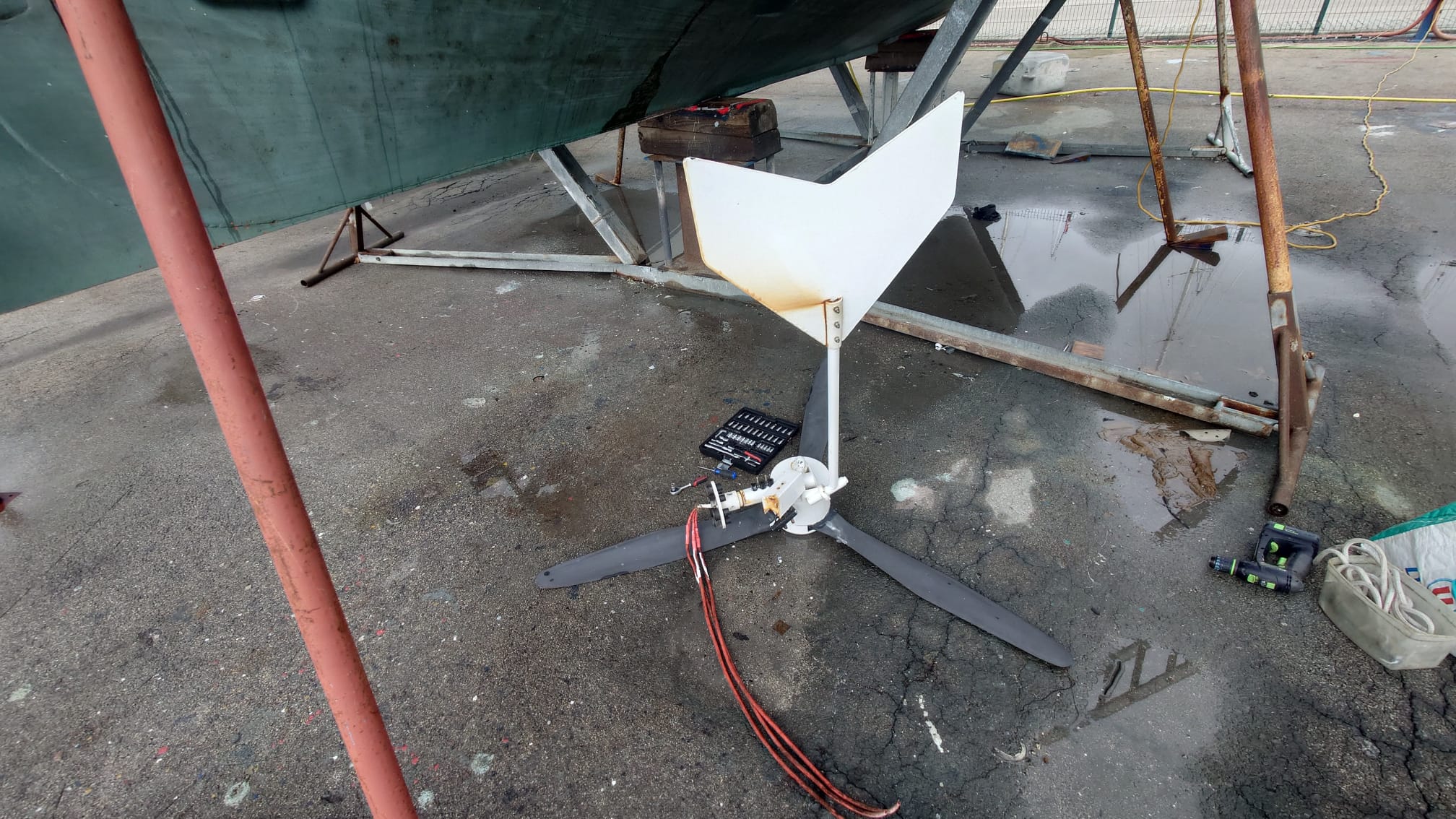 It’s funny how thin the wires from the generator are: 2.5mm2. While our cables in the mast, down to the rectifier and the MPPT are 16mm2 for 3x 25A, to have a minimal voltage loss. Luckily, they are only very short.