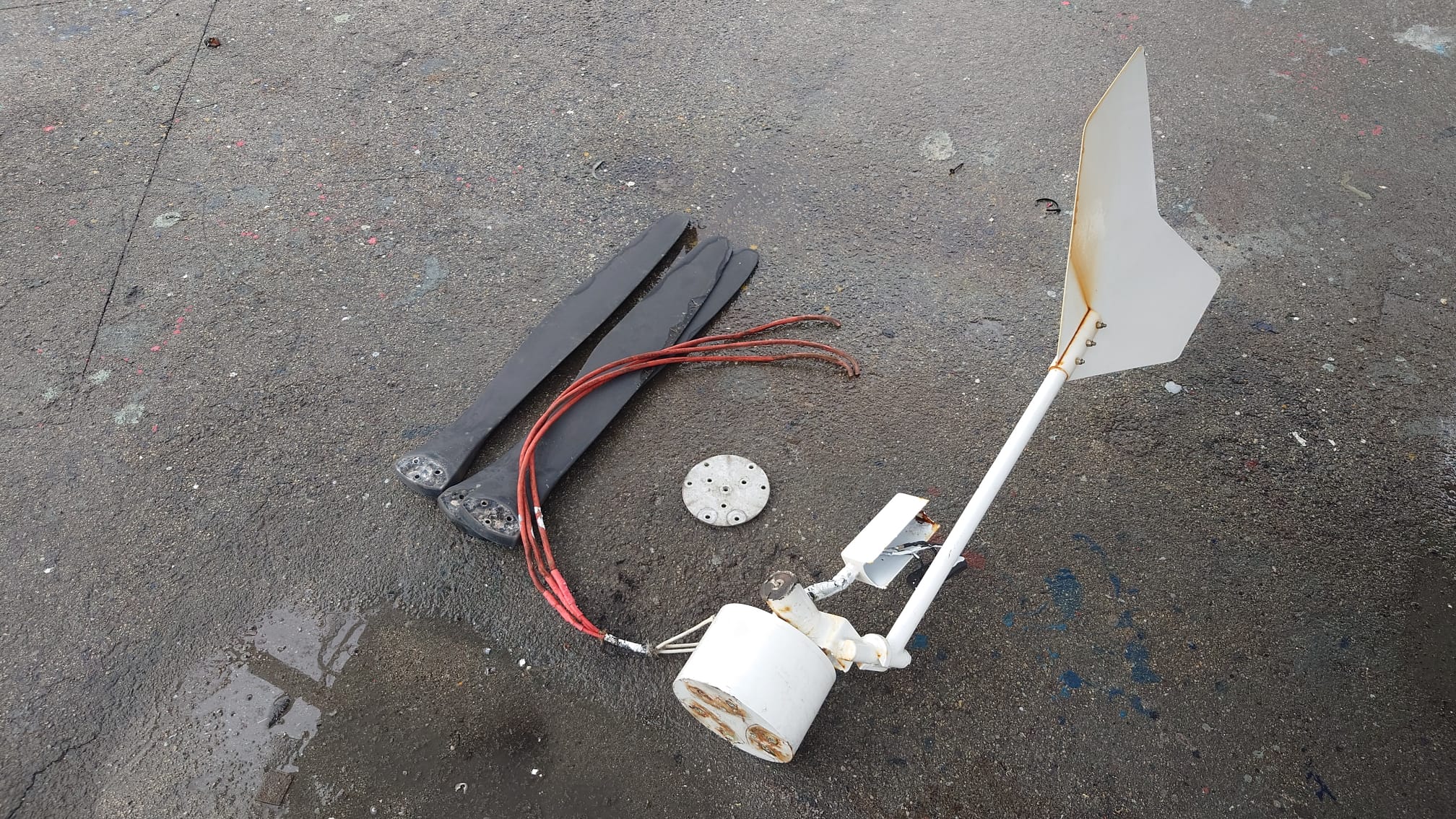 Wim mounts the rotor blades for the new wind generator and does all the preparation for mounting it.