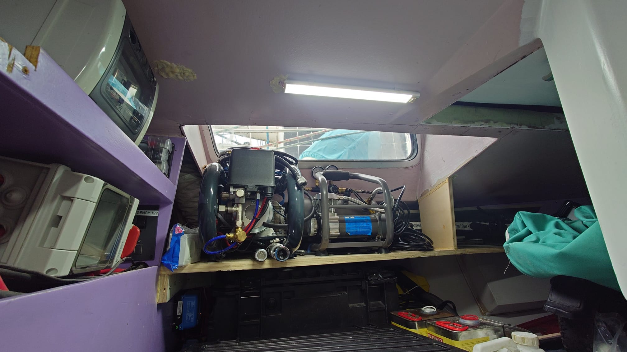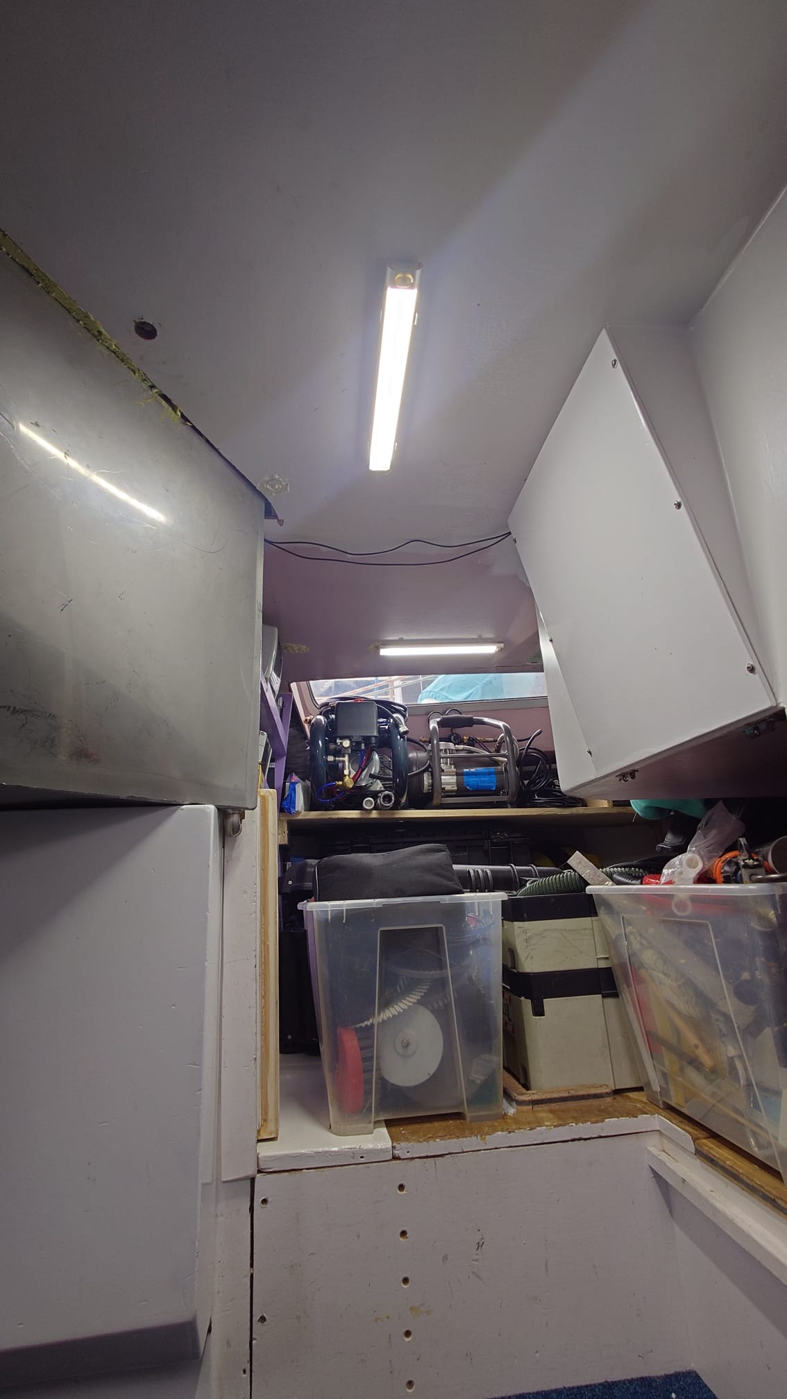 An hour later, Wim is thinking about what a good idea that was, to flush the toilet in this weather… it cleans the hose a little more… the hose?? The hose??? Oh no!!! Suddenly he realizes that the hose is not connected! He had trouble with the hose clamps on the through-hull valve and he has ordered a new, heavy duty one on Amazon! Oops! 😮 We discharged the toilet under the floor!! 😱 We open the hatches in the floor and there’s a lot of water… We’ll have to clean this now, tomorrow it will smell awful… So, we get the wet vac and vacuum all compartments. We have to take out all the bags with cables, everything is wet. We clean everything with detergent and dry everything. The humidity was already high but now the windows are steamy 💦💦 We can’t open a hatch because of the pouring rain so we turn on the heating, the blower, the fan in bathroom and the galley dorade and go to bed. Hopefully everything will be dry in the morning…