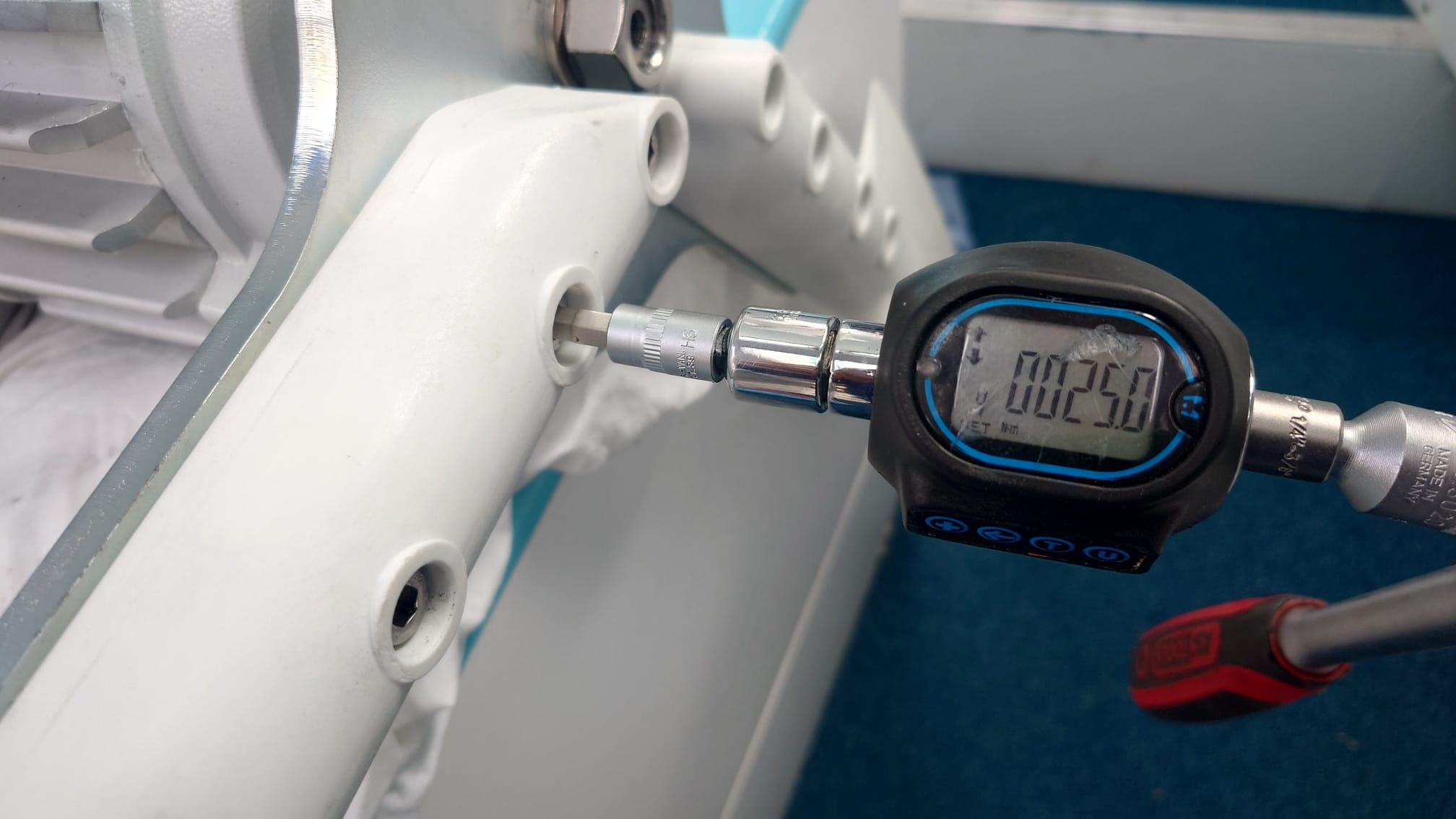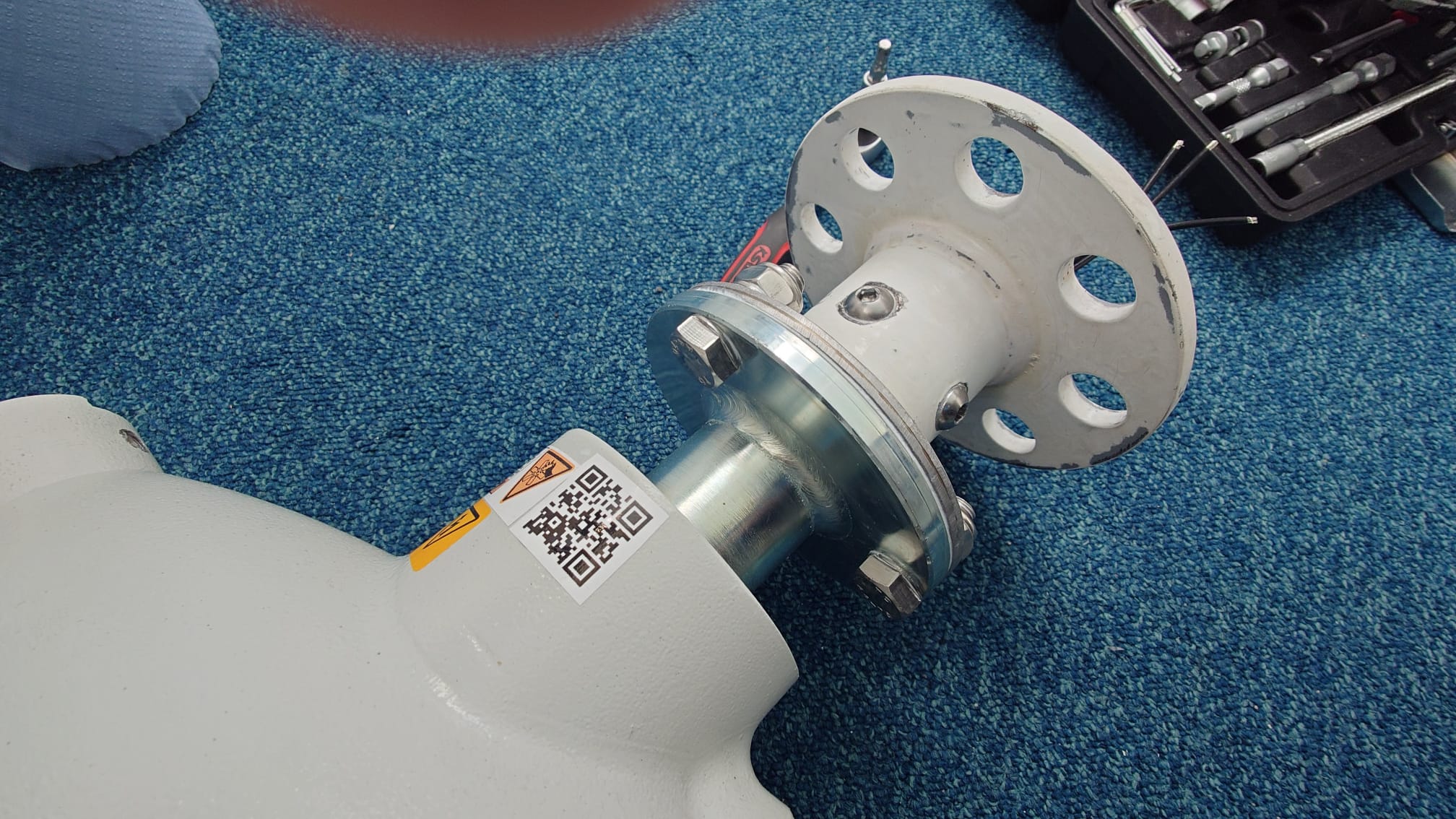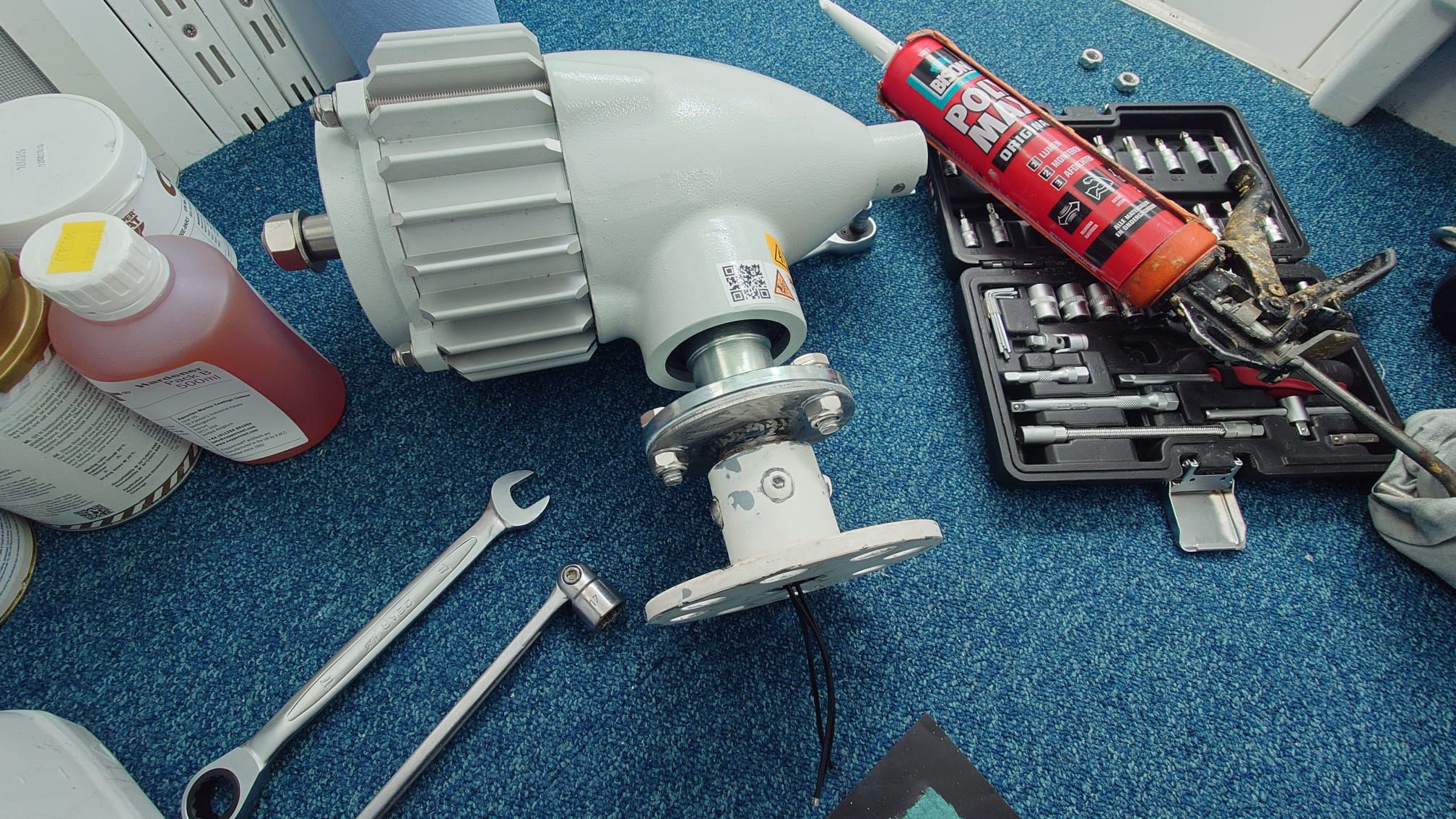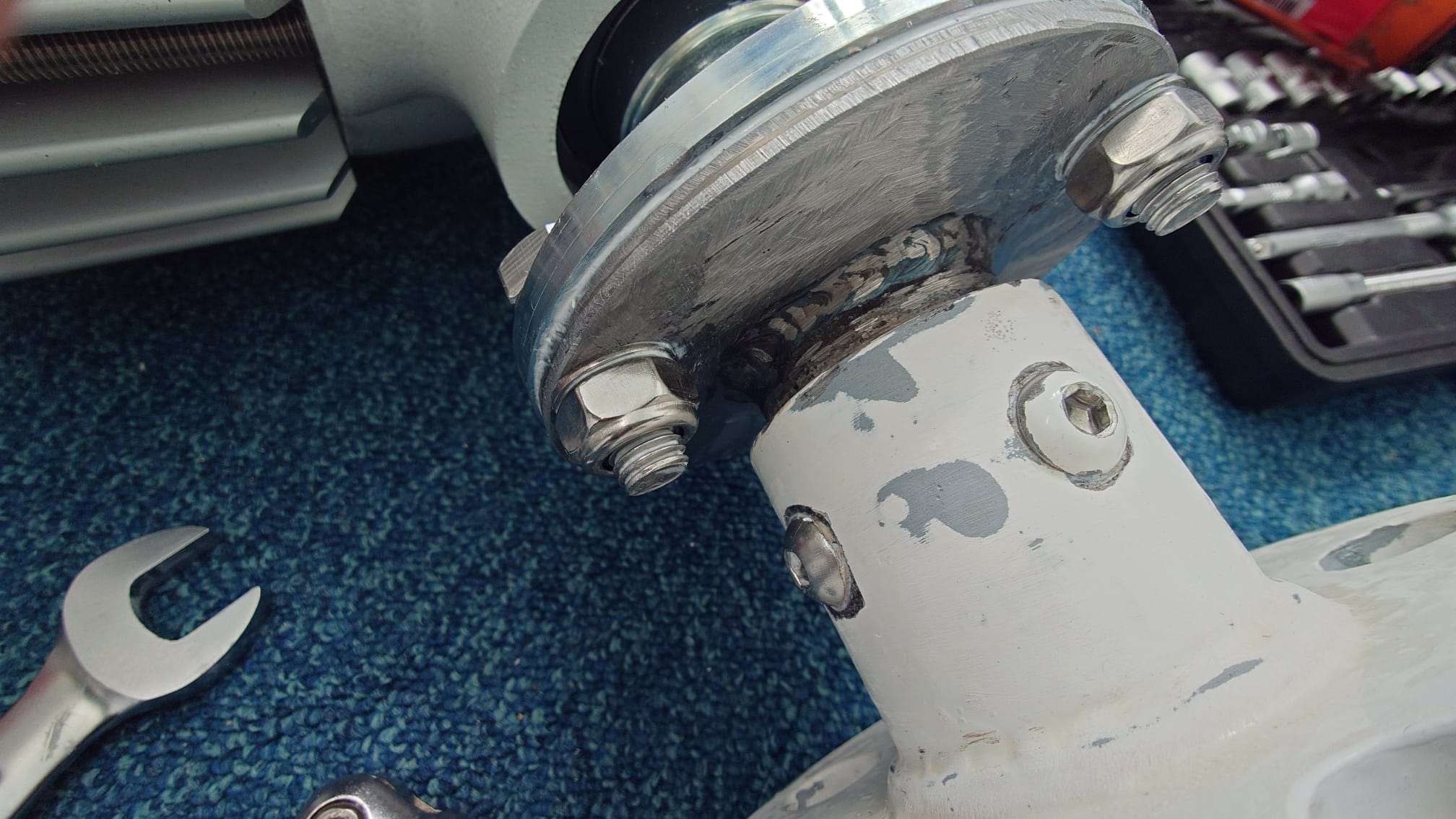 The M8 bolts have to be tension-ed to full force according the manual. 25nM. Wim has to use the large socket wrench to do that.