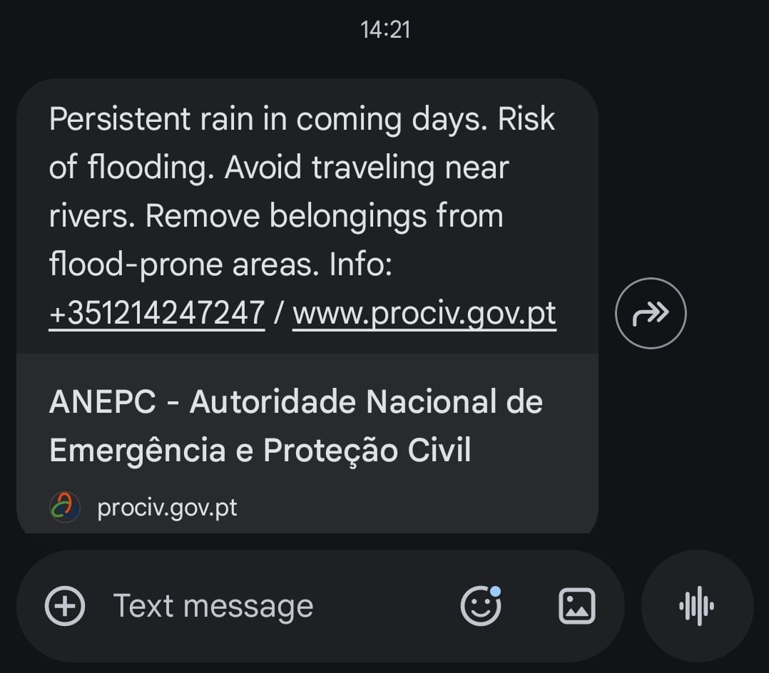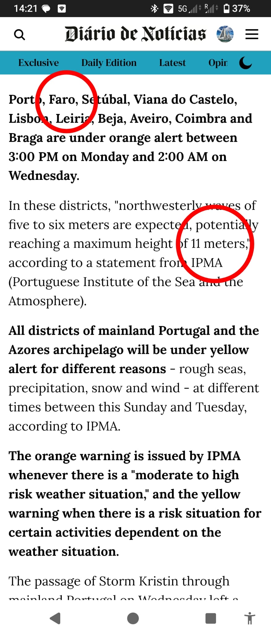 Warnings from the Portuguese weather institute. Because of the constant strong westerly winds, the ocean builds up a huge swell. Up to 11 meters!