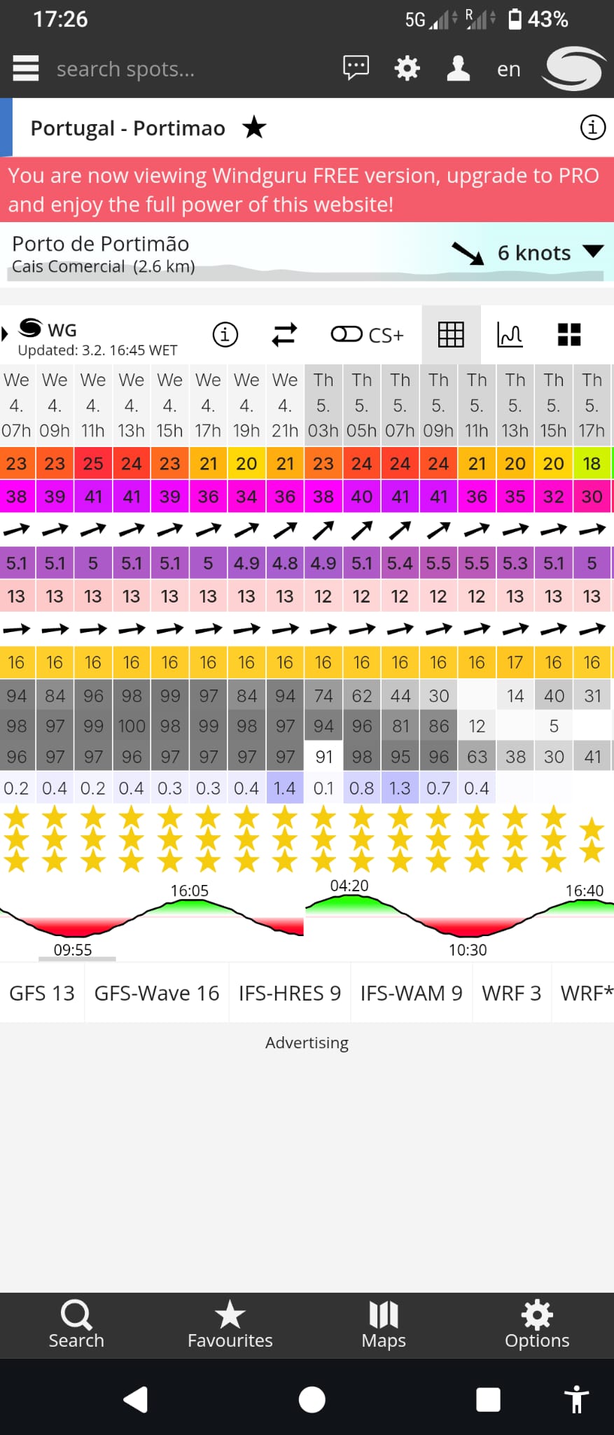 A new storm passes. Strong wind and lots of rain. The wind is southwest/west and we have some shelter from the city of Portimão. The wind is very gusty, in gusts 30-40 knots.