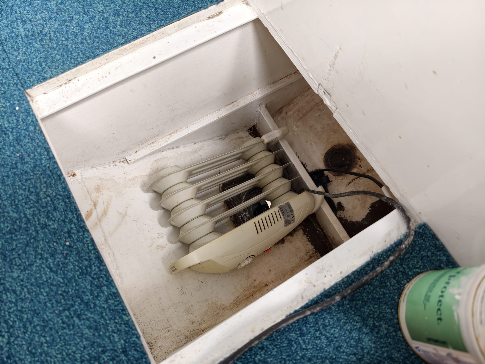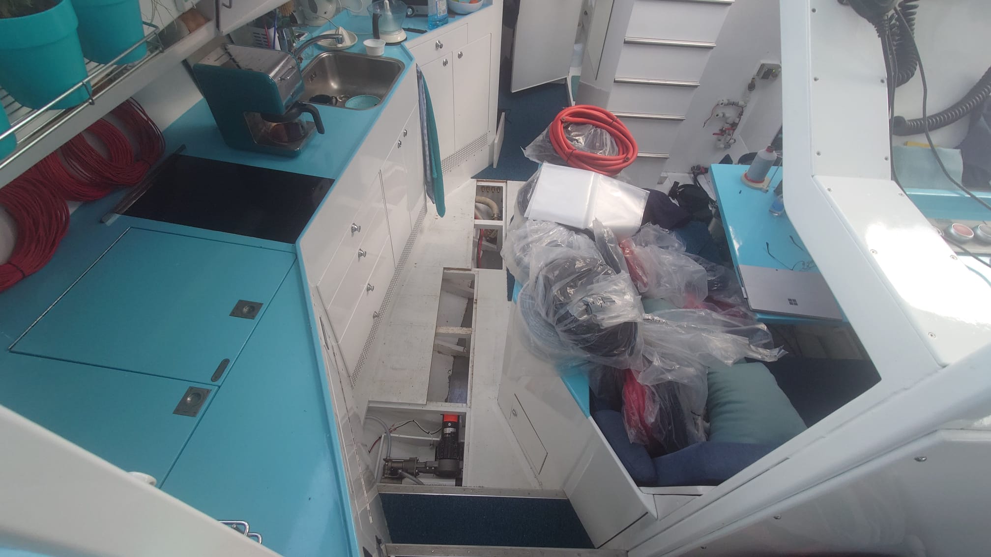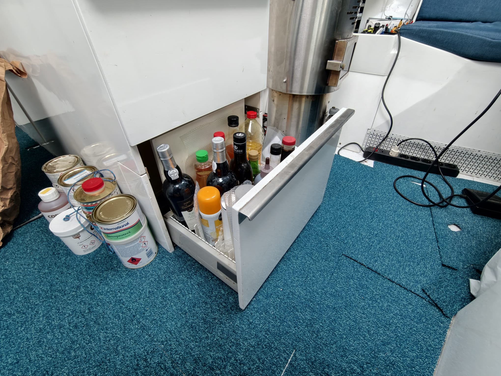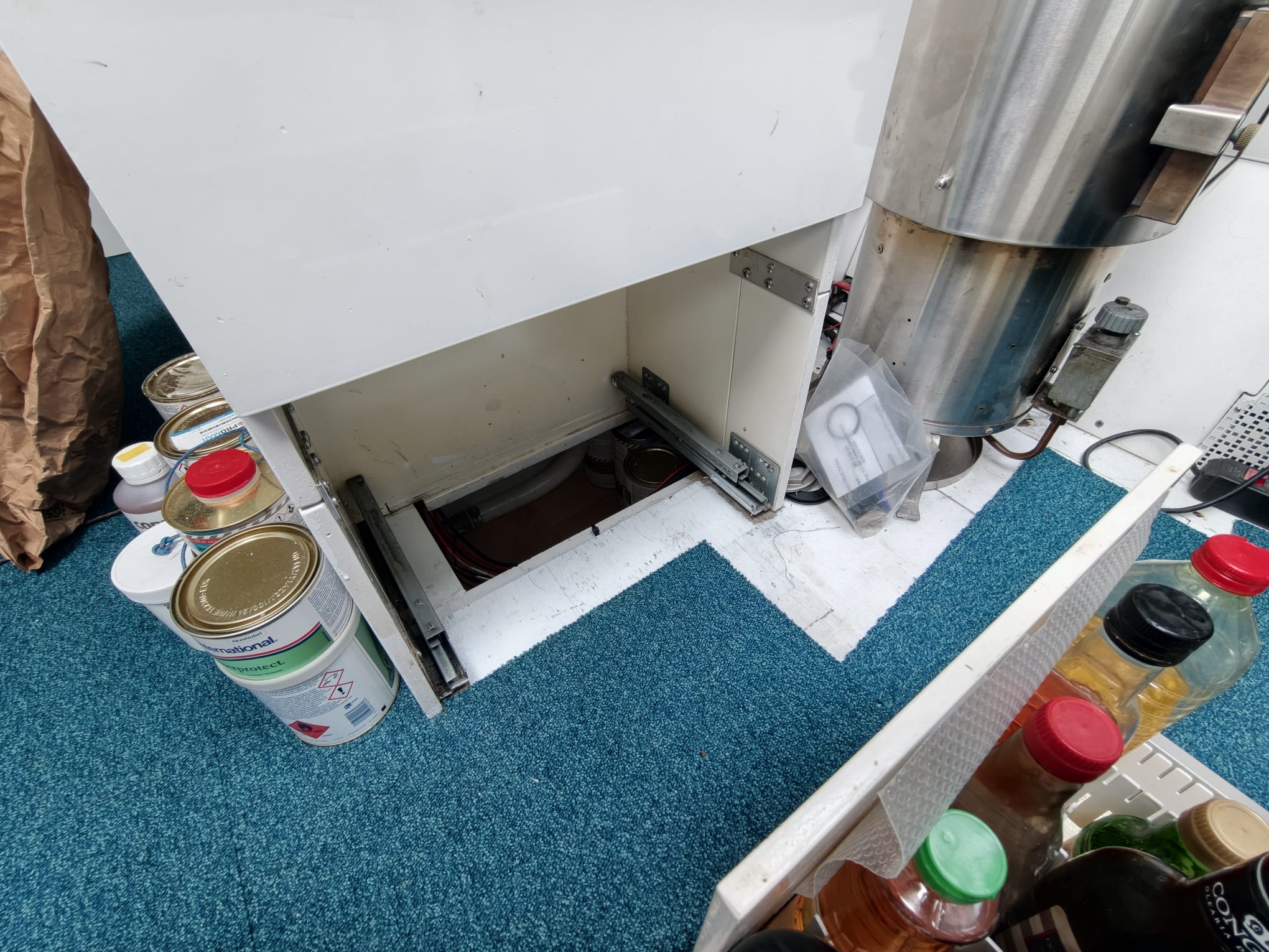 Well, the sun is shining and we open the companionway. In no time, the humidity goes down to 50% and after breakfast, the area under floor is dry.