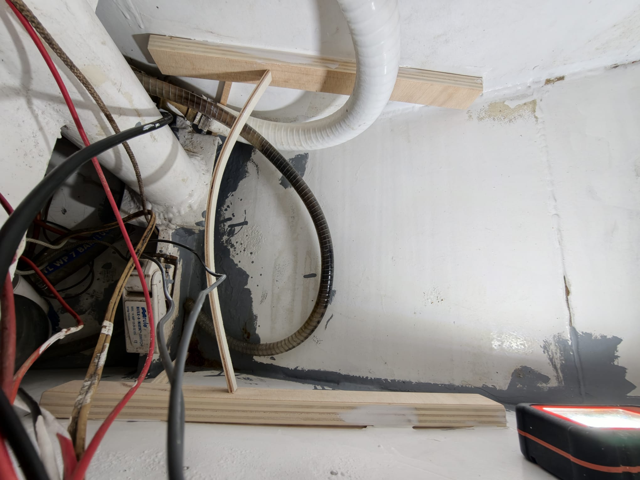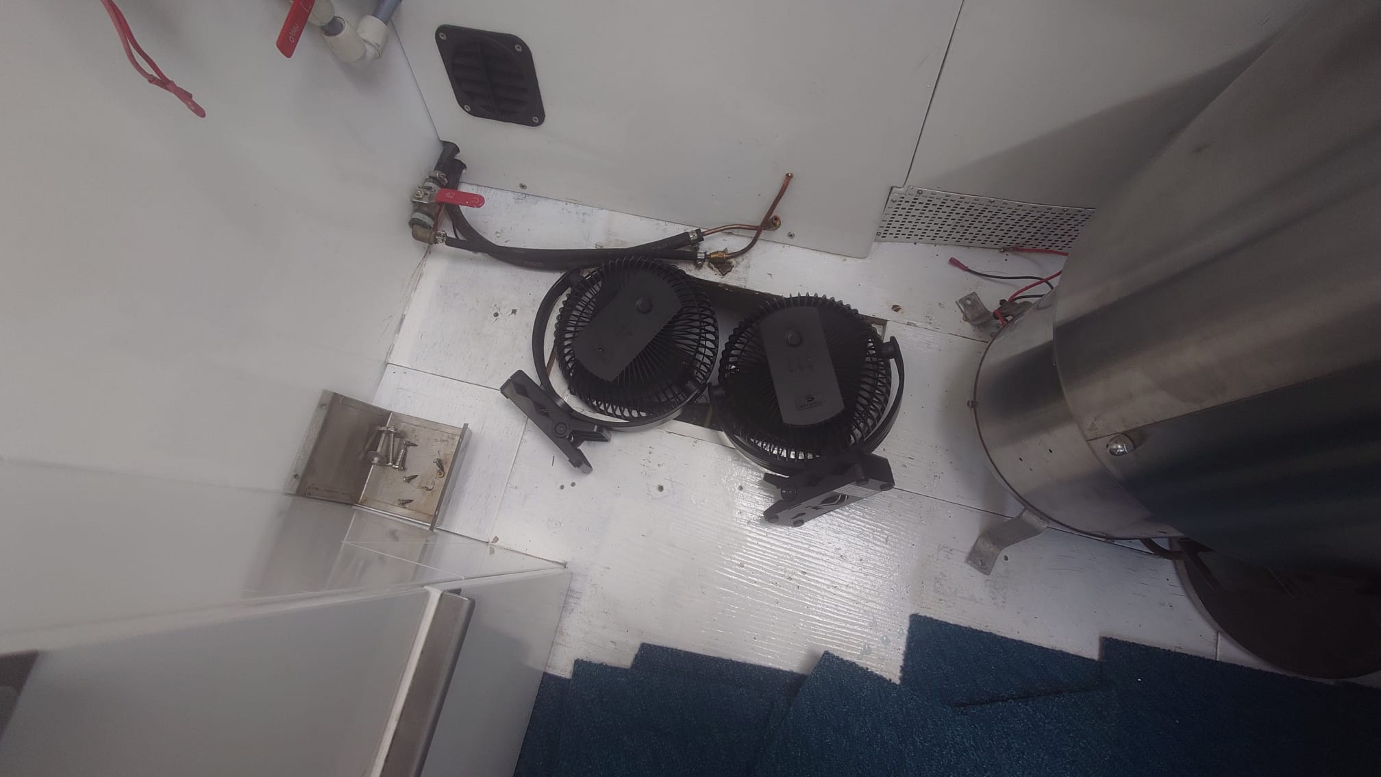 When we check under the floor, it’s not really dry yet. So, we put 2 fans to blow some air under the floor.