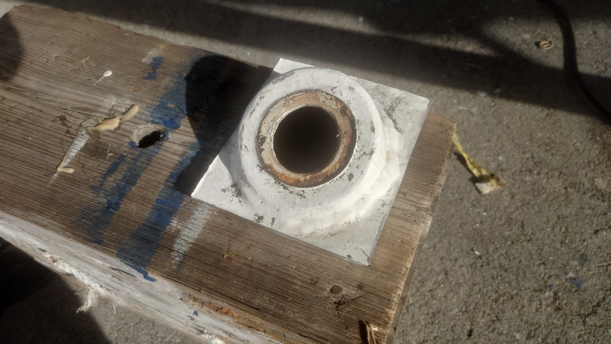 The rotor is ready now. We will paint the steel galvanized base with a special paint for galvanized steel (Spanish stuff, bought on Amazon). The galvanizing isn’t done really well so it will get rusty in no time. That’s why we’re going to protect it with white paint.