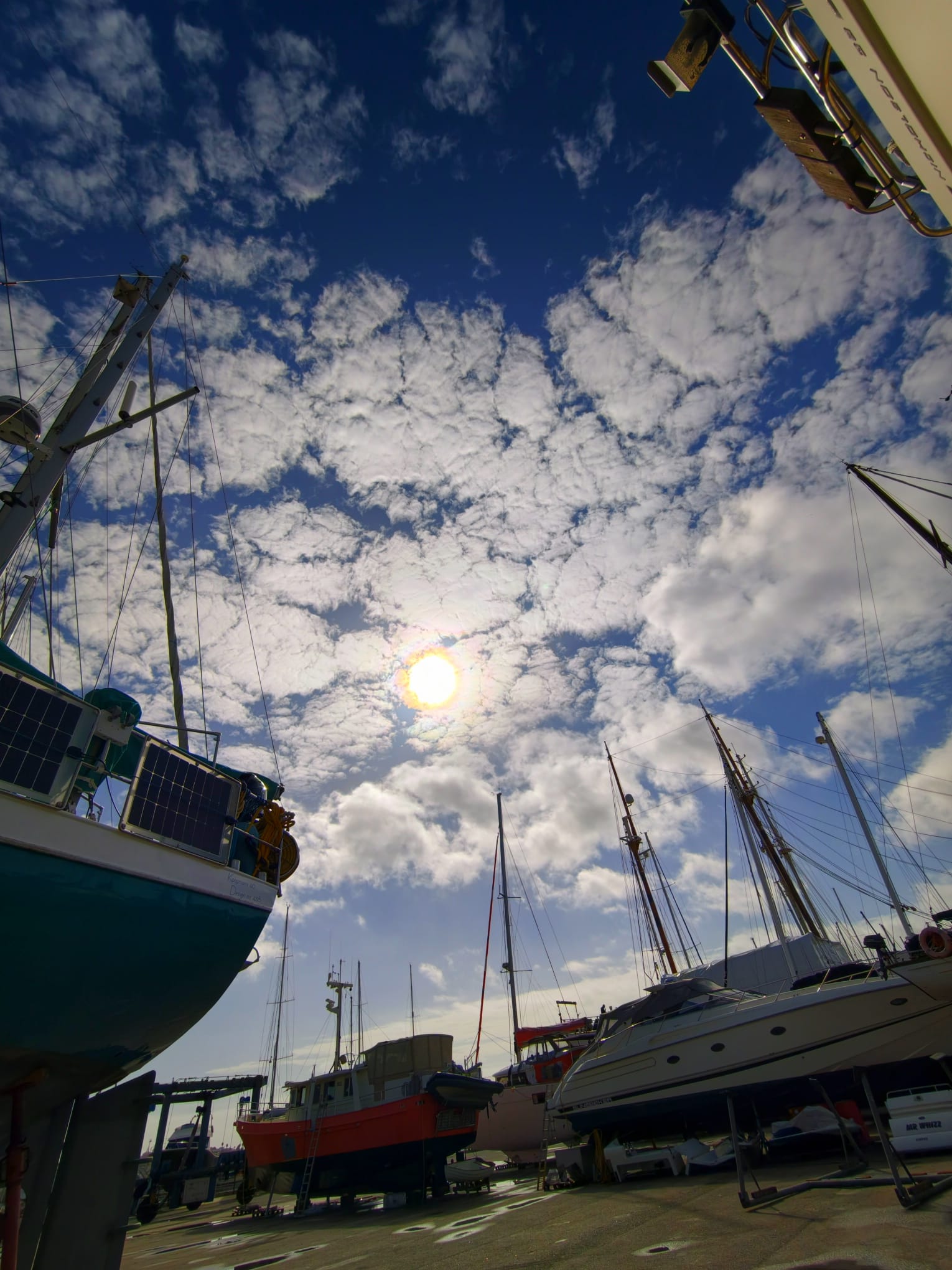 We have some shelter from the city, for these south-westerly’s. We see max 30 knots. But Dione IV is shaking in her jack stands…