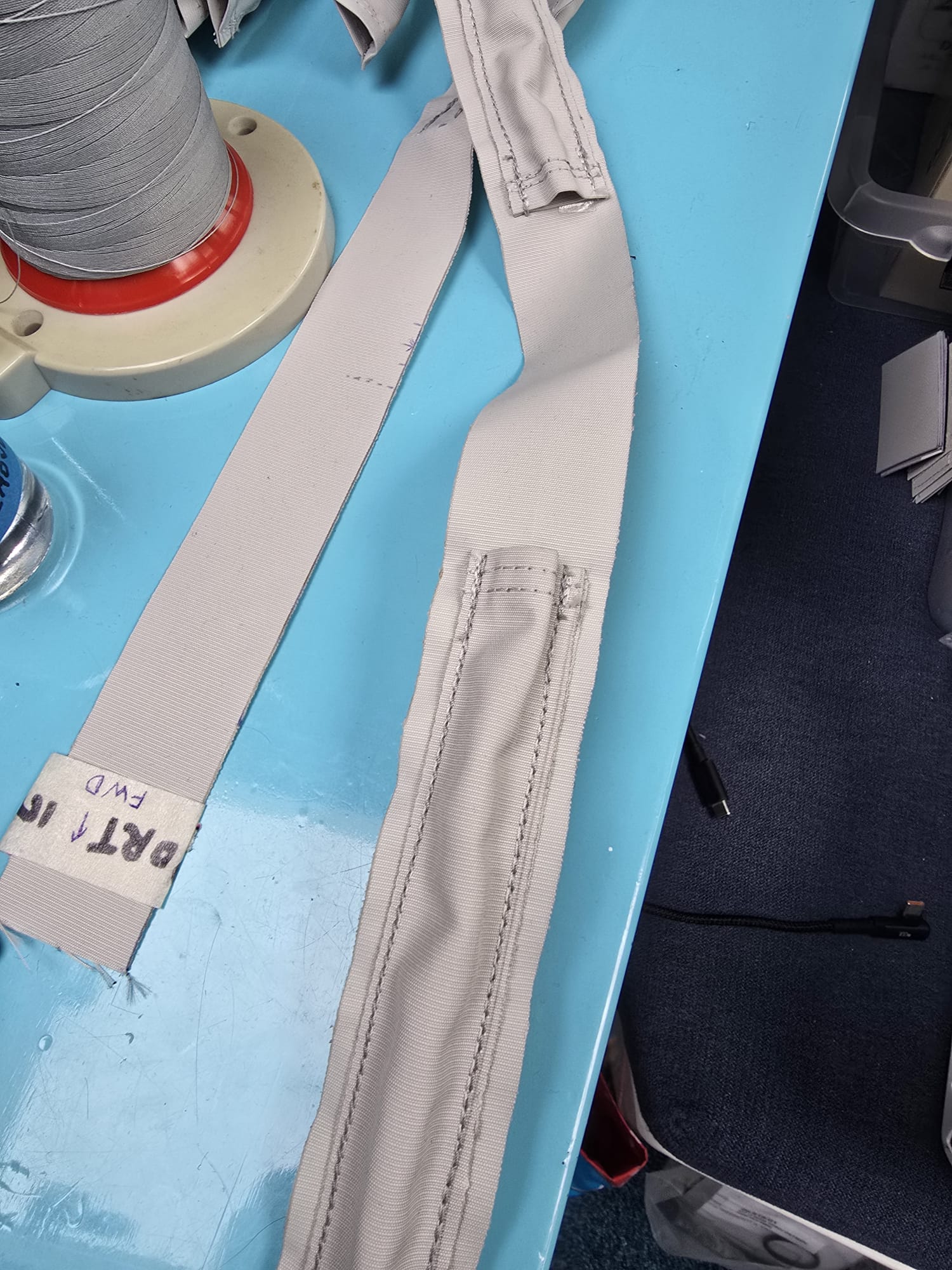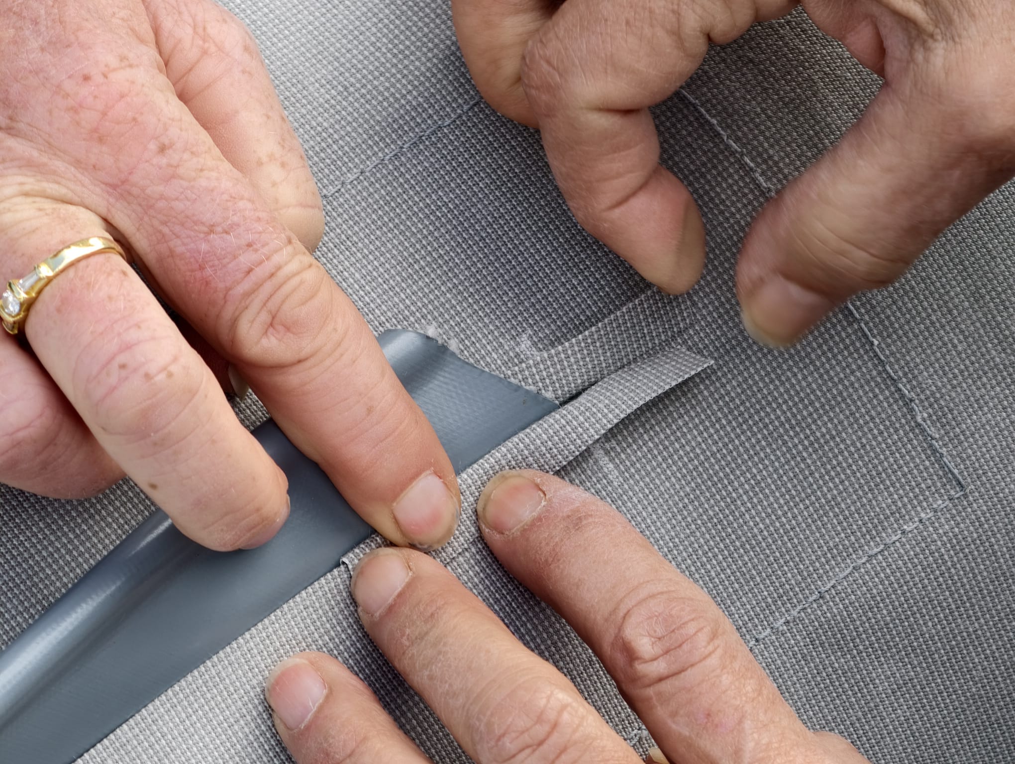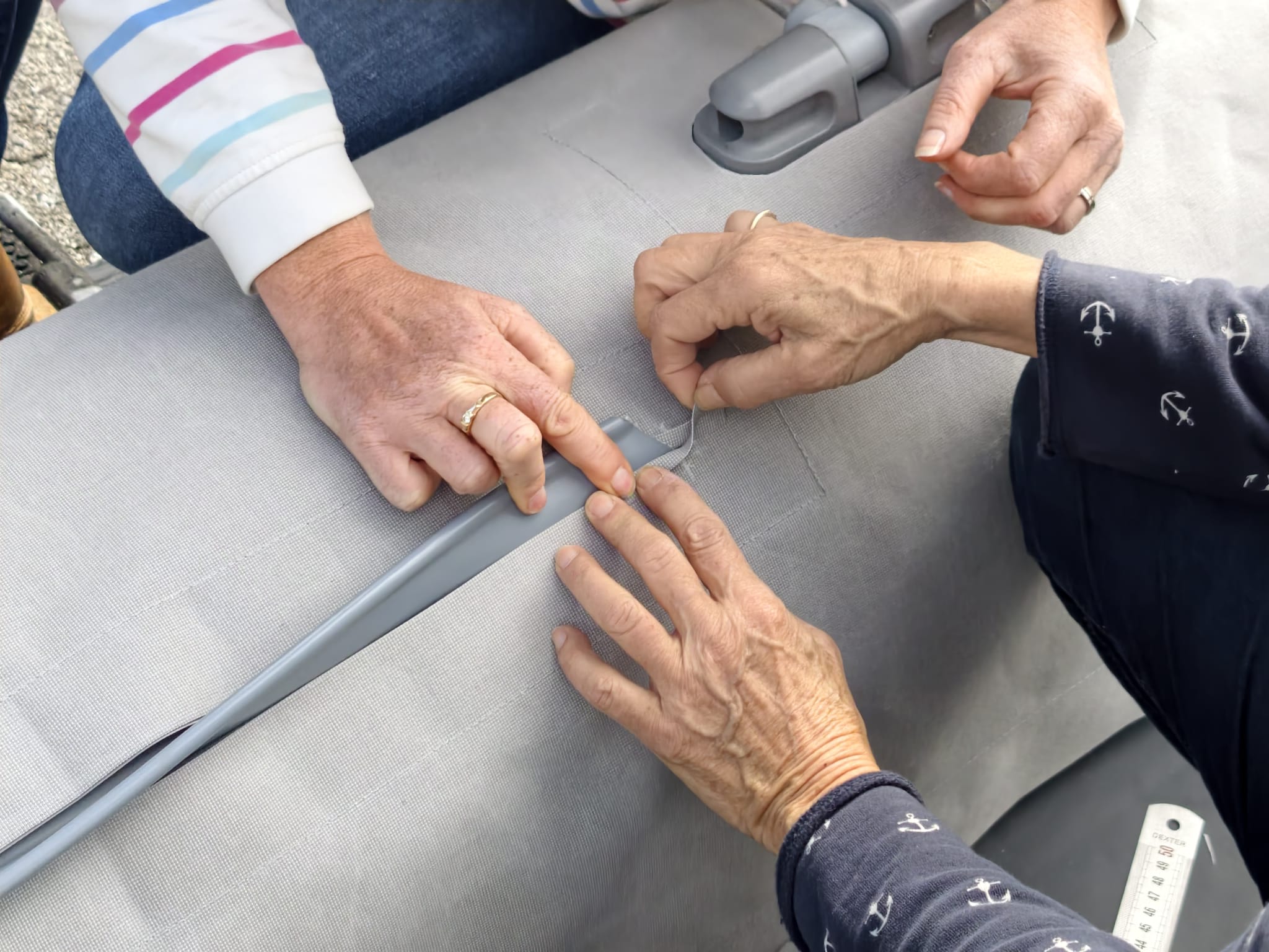 Sher continues to make pockets for the battens on the cockpit sun shade.