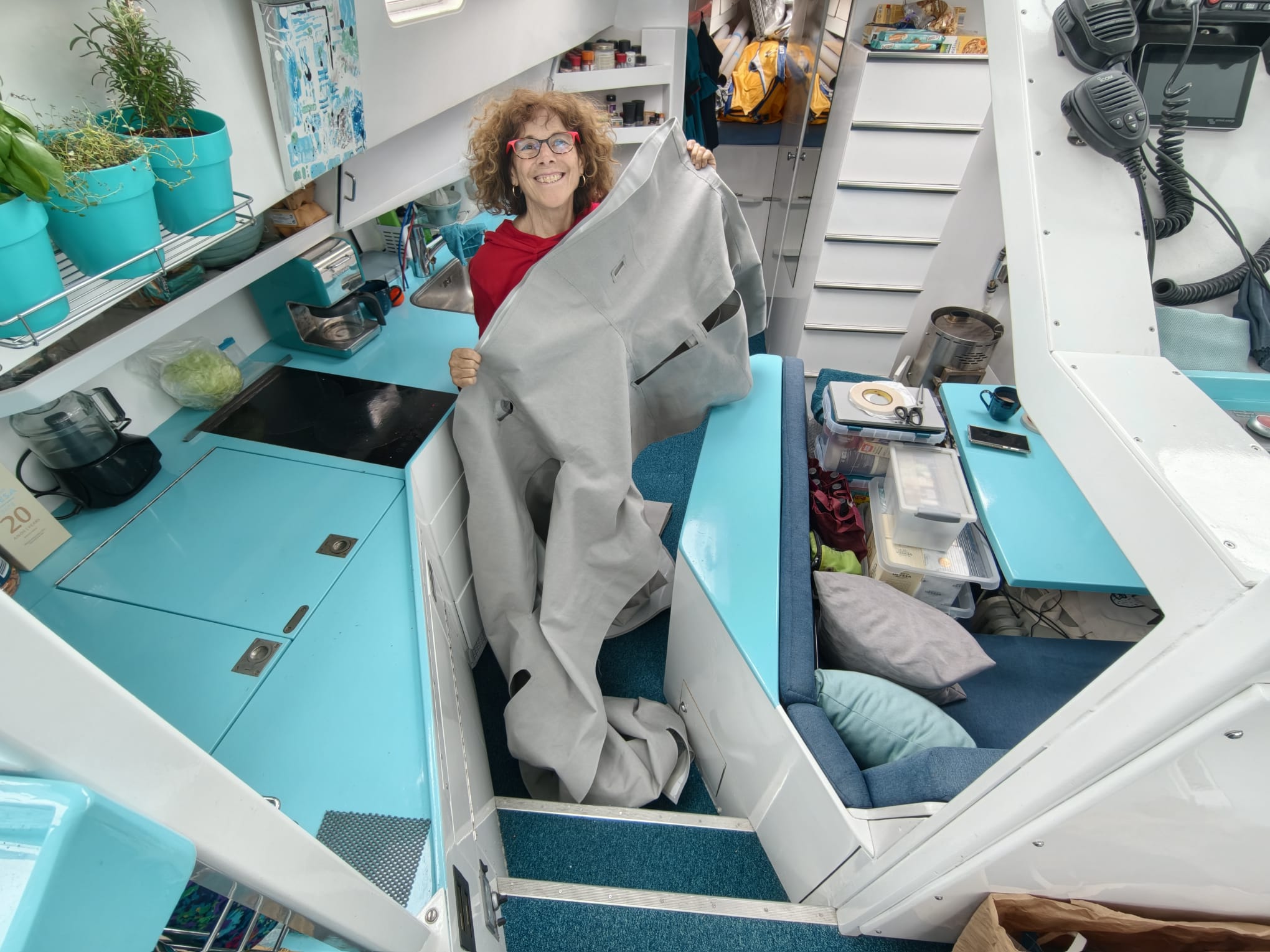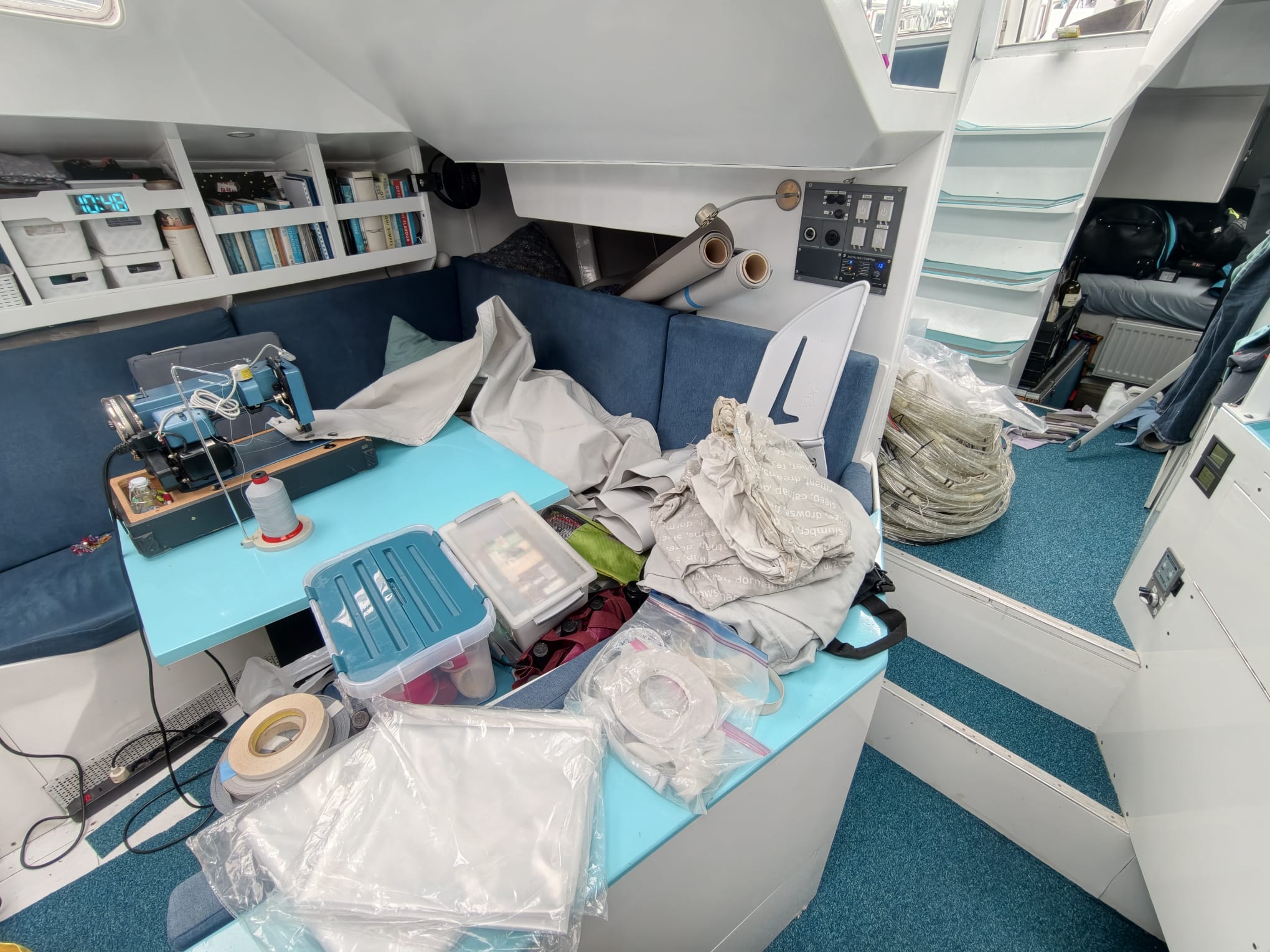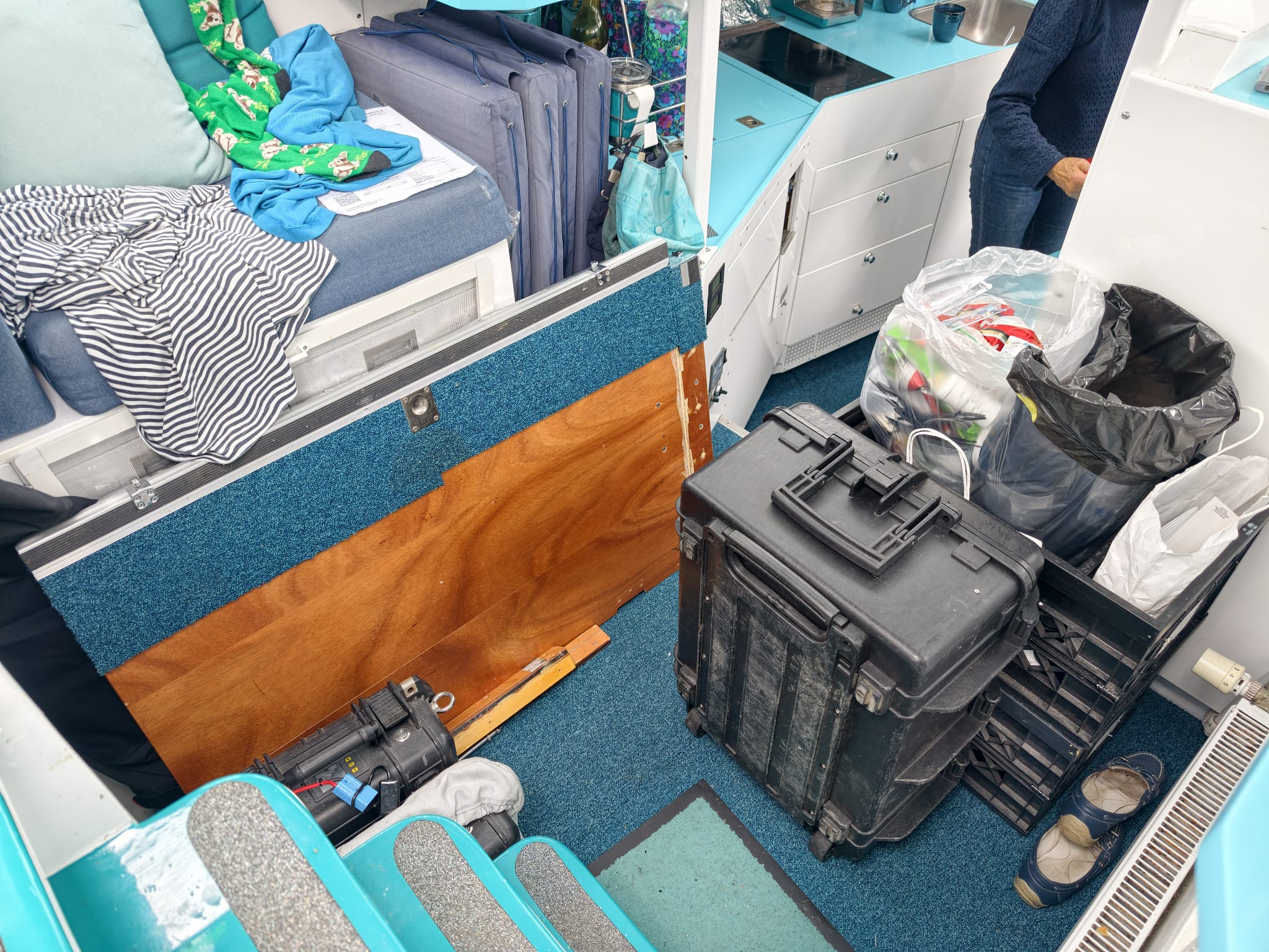 To reach it, everything has to come out of the forward cabin… resulting in a huge mess in the boat 🫡