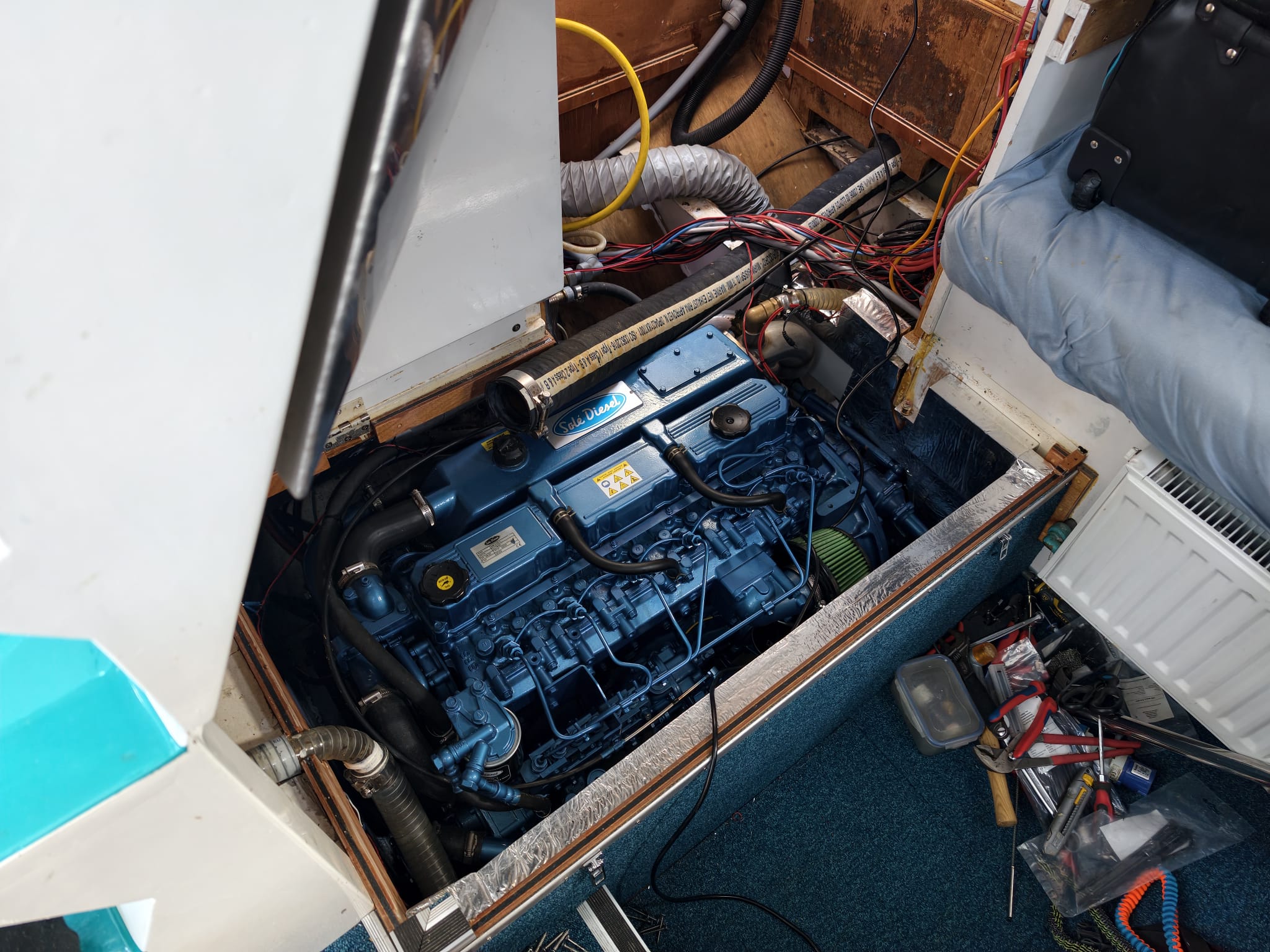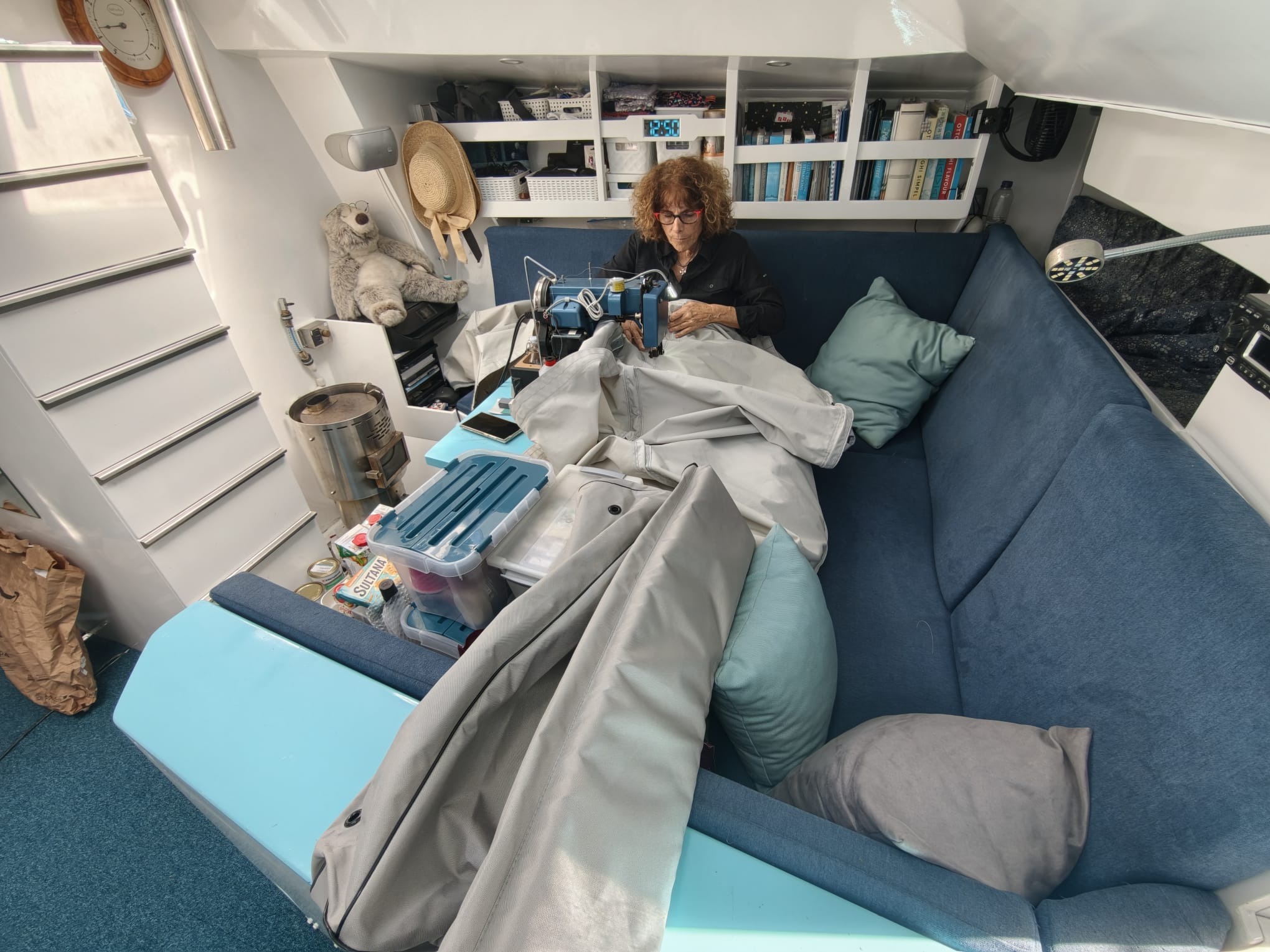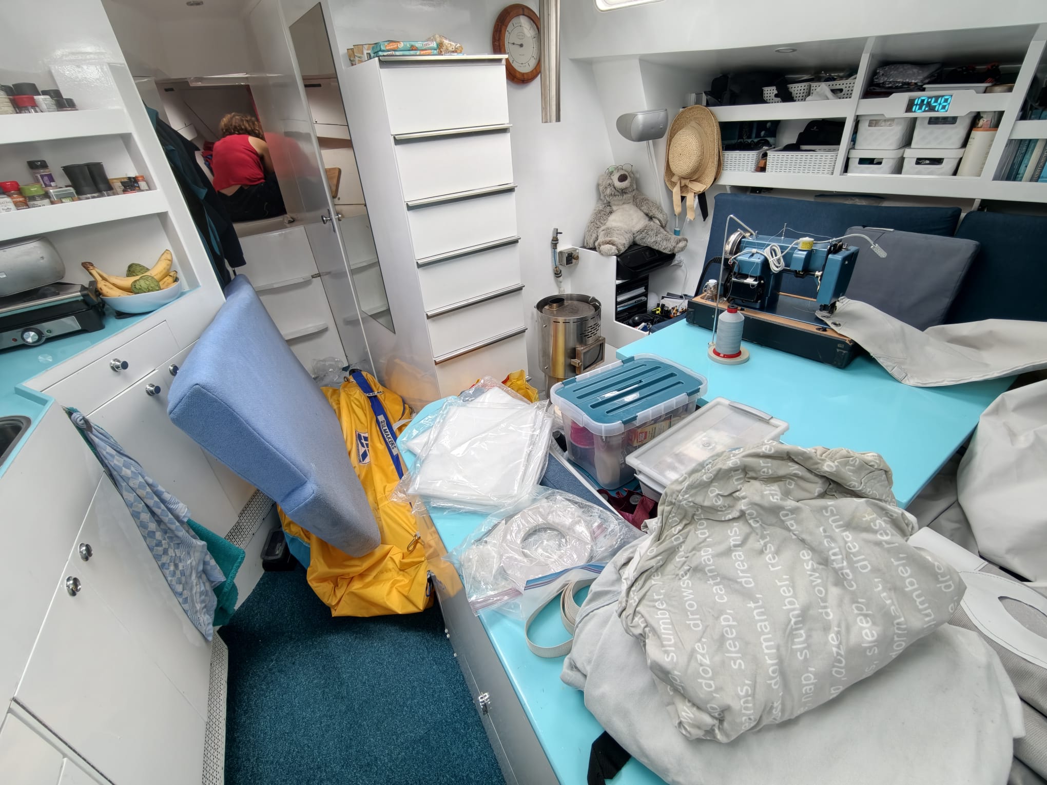 To reach it, everything has to come out of the forward cabin… resulting in a huge mess in the boat 🫡