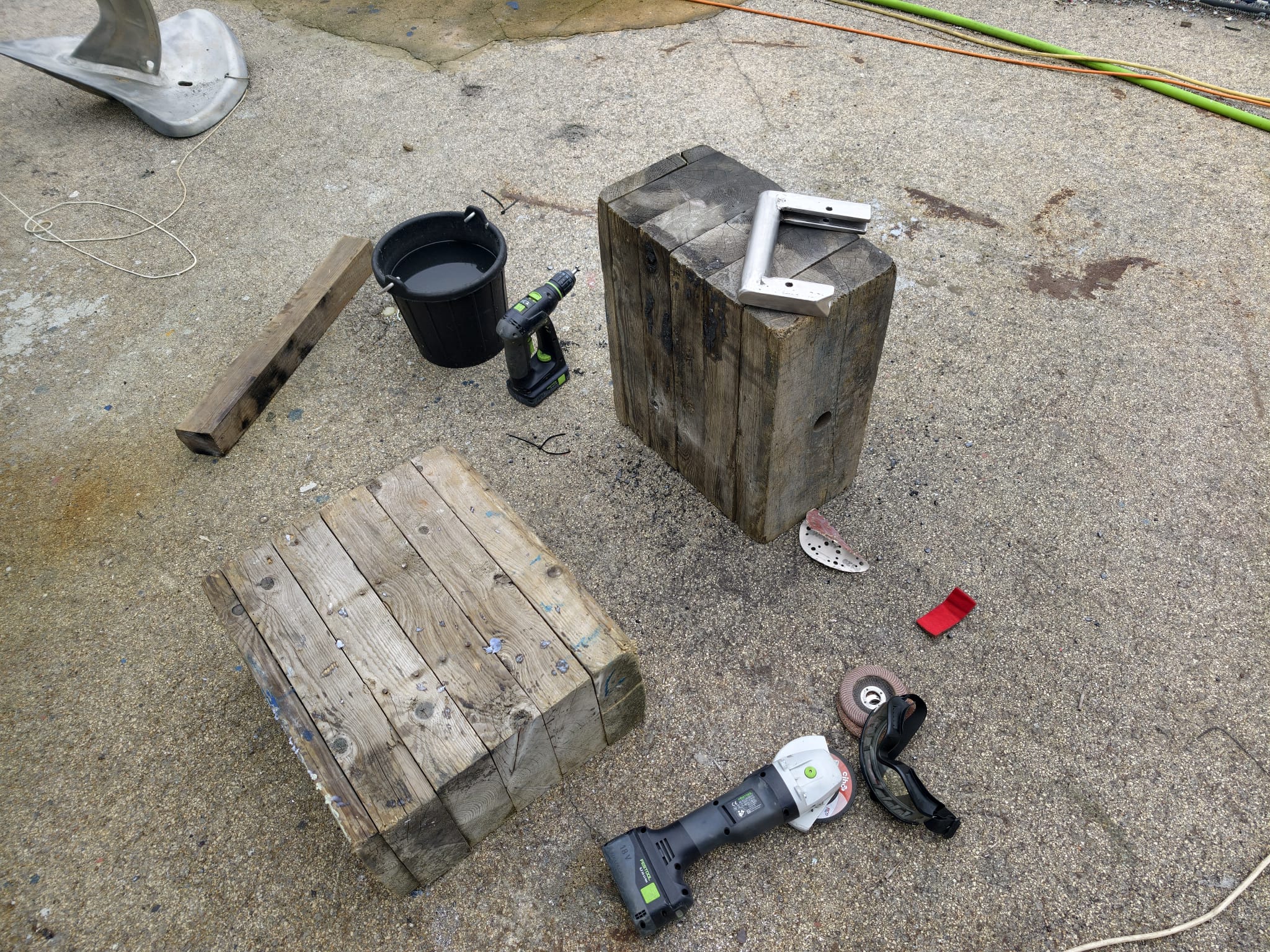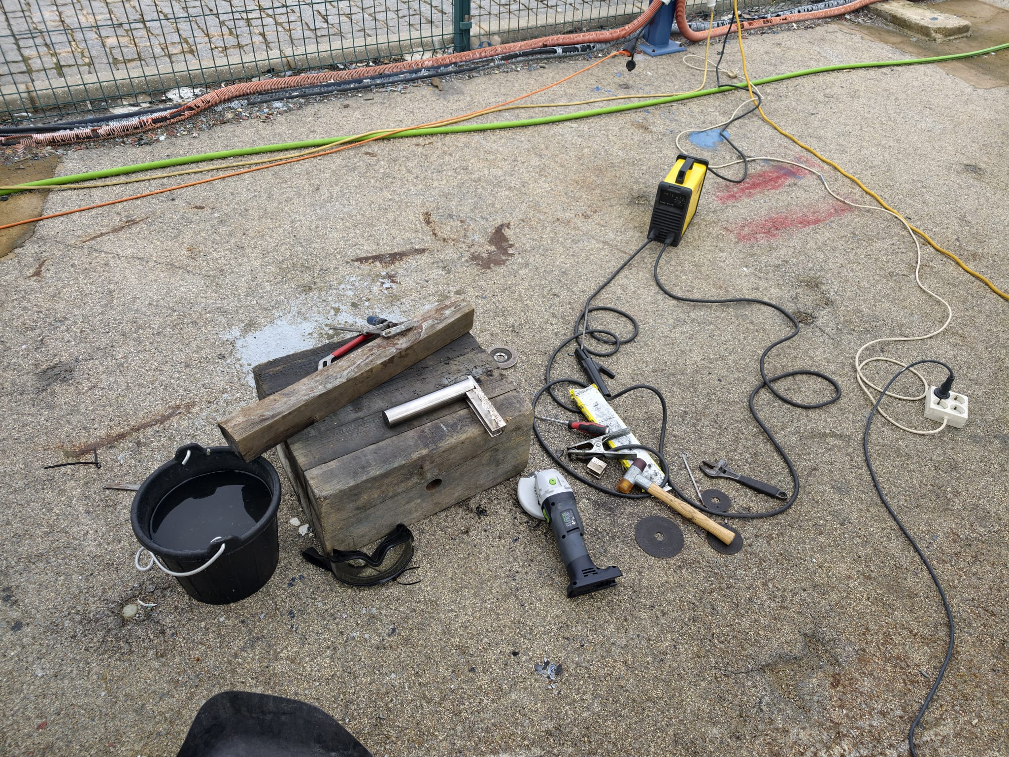 But there it is. A little welding workshop outside, with a wood block as workbench.