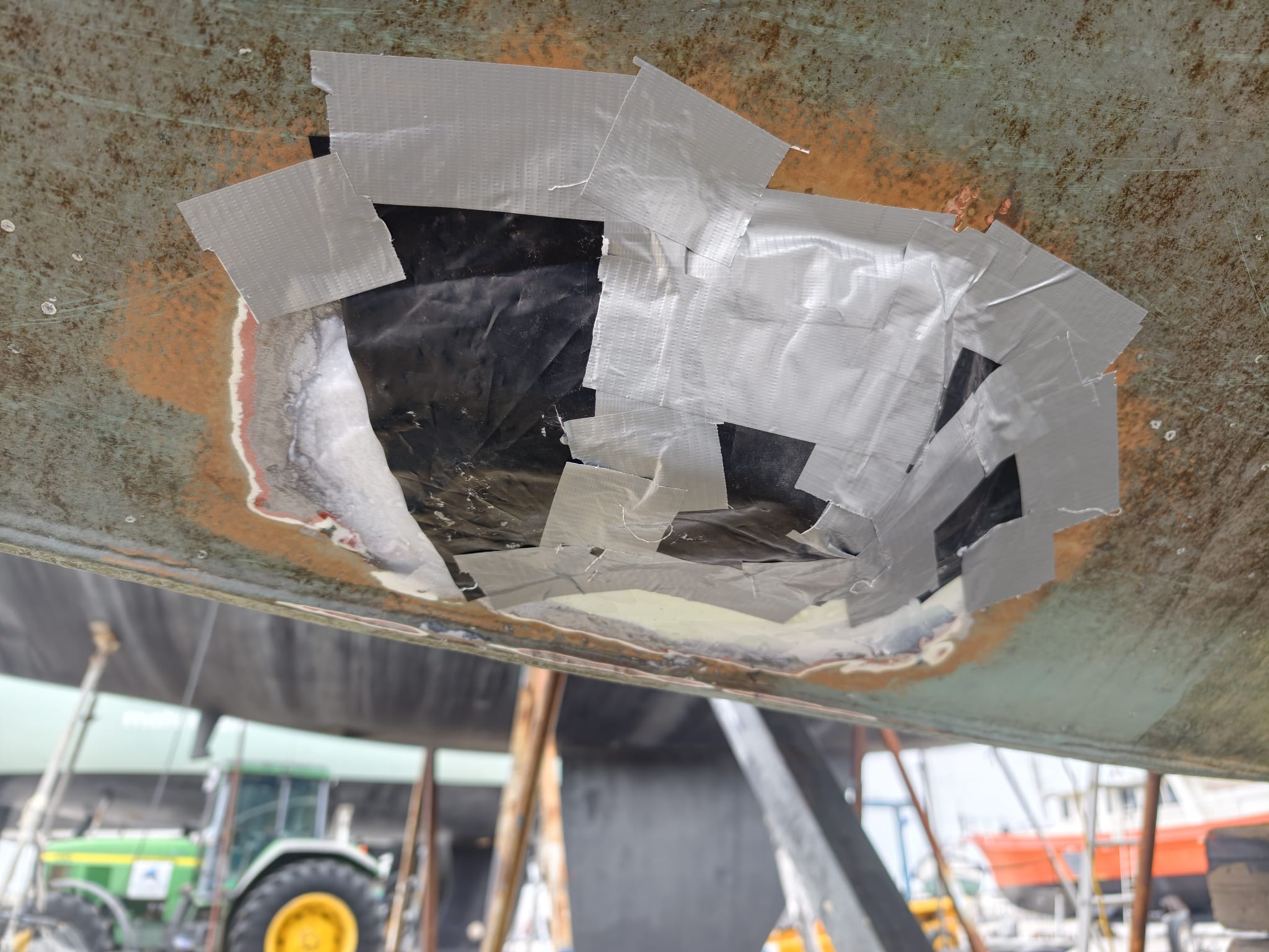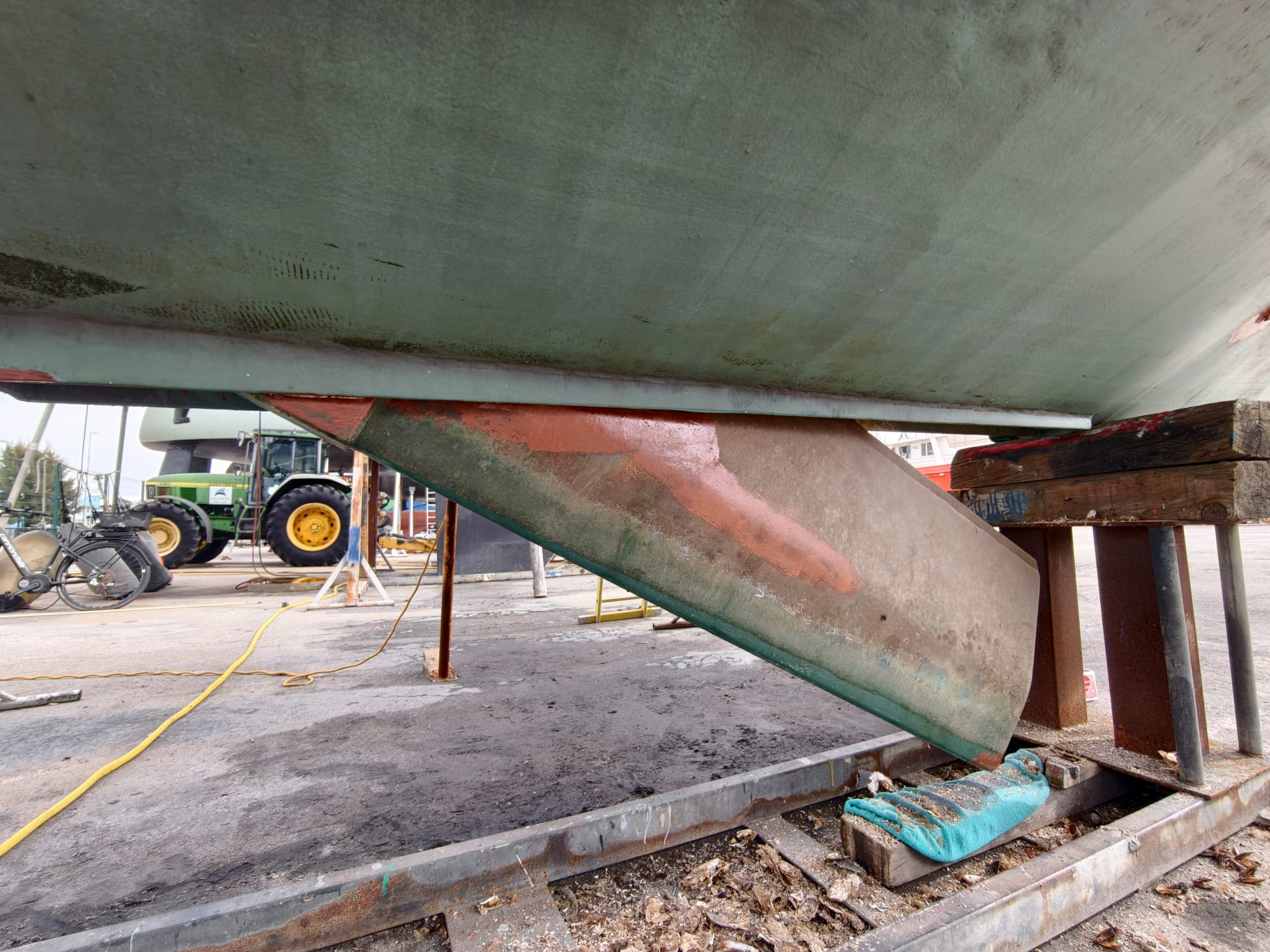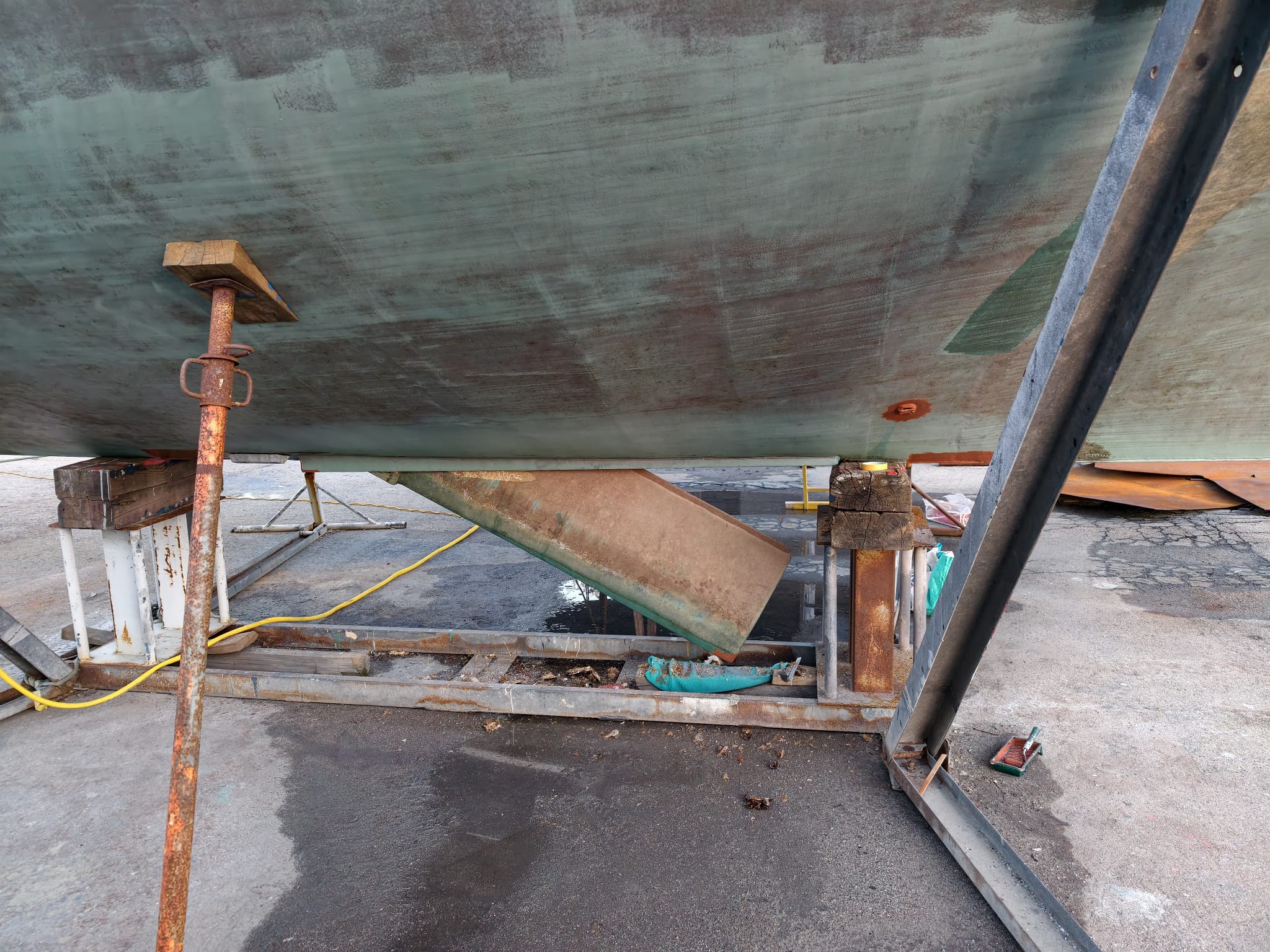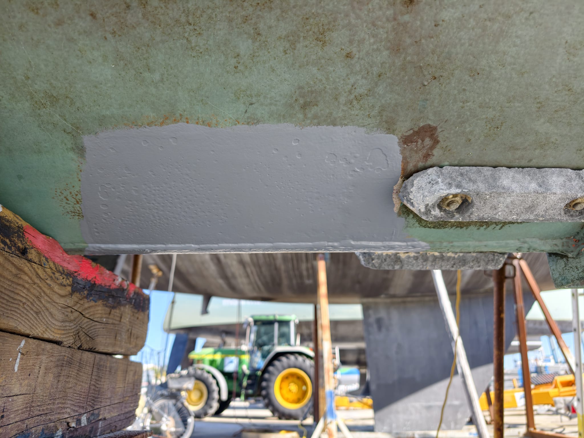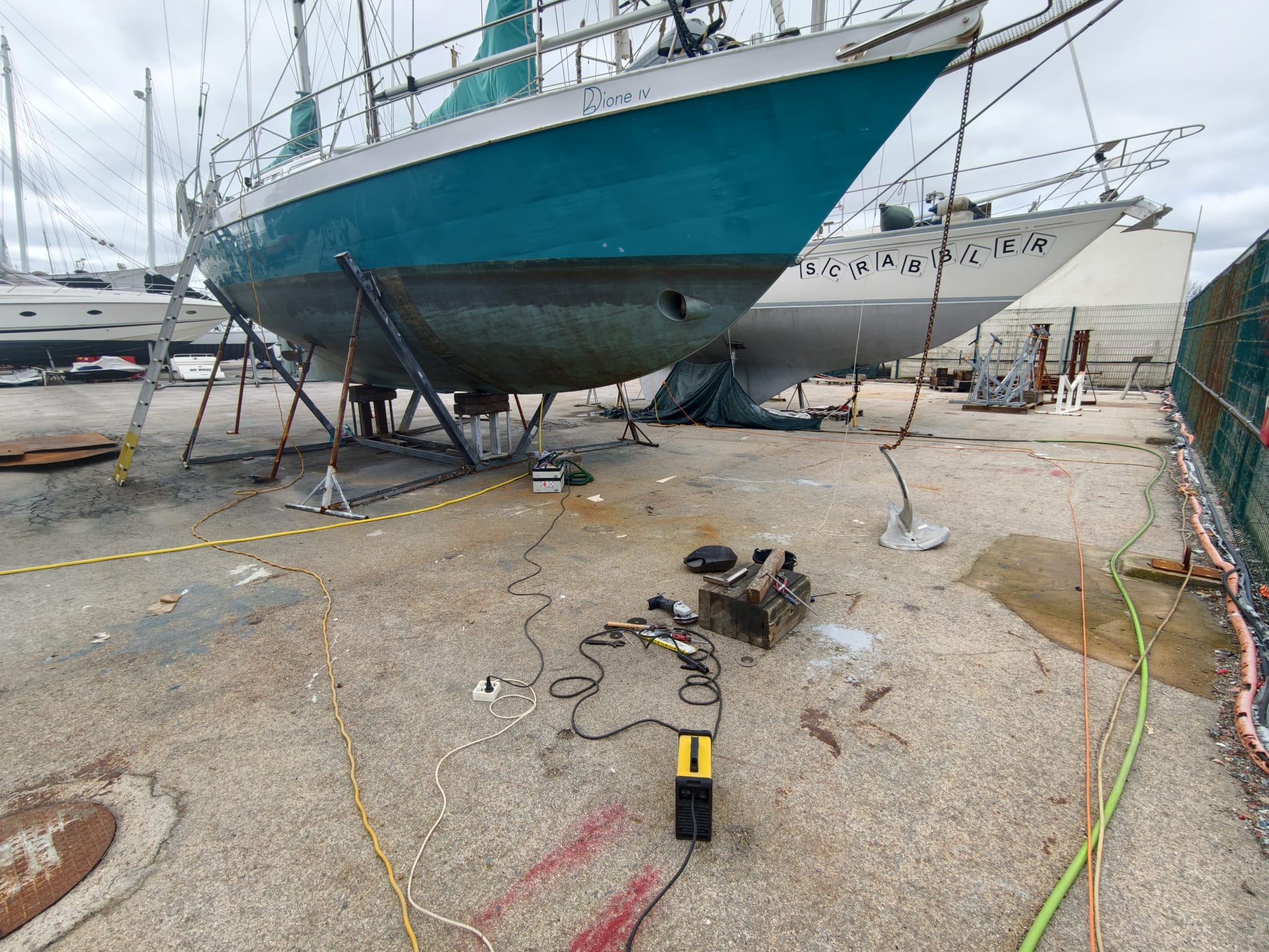 We’ve done so much under the water line, a lot has to be checked. While Wim inspects everything for leaks a little stressed, they turn off the travel lift’s engine. Wow, Wim thinks, I really have time to check and re-check everything! 🫡 Relaxed. Great!
