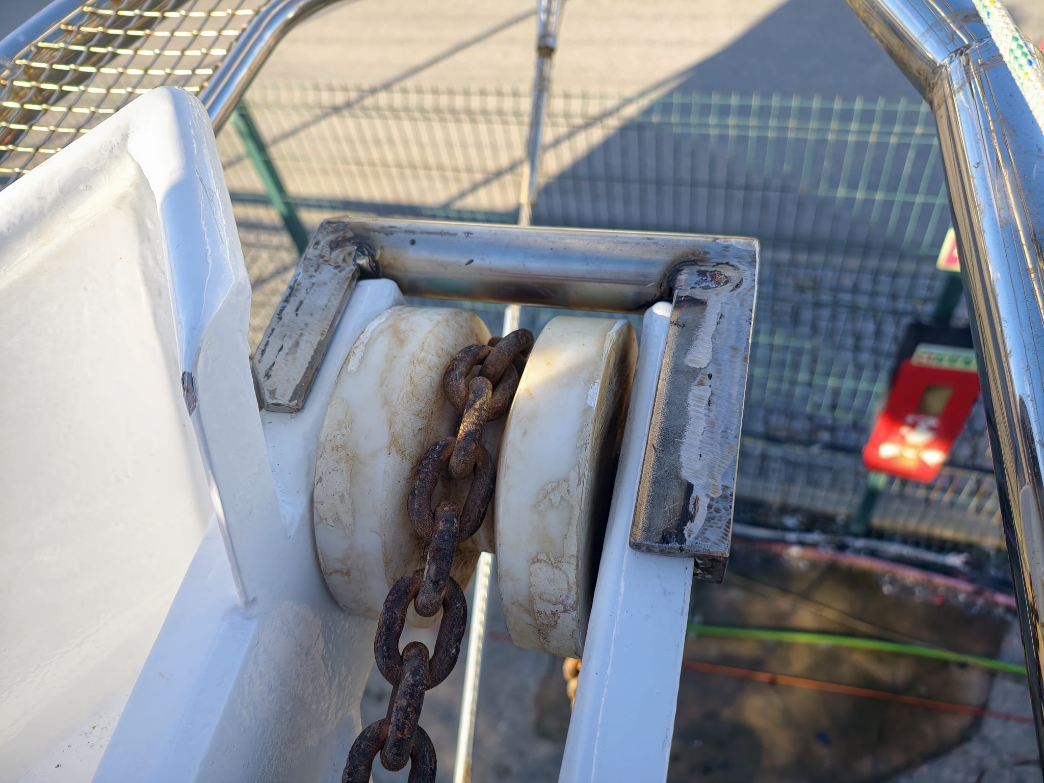 Another thing is: extra safety. If the chain hook or the anchor bridle breaks we want to be absolutely sure that the chain stays on the strong roller construction. We could even keep the chain hook + anchor bridle on deck, if necessary.
