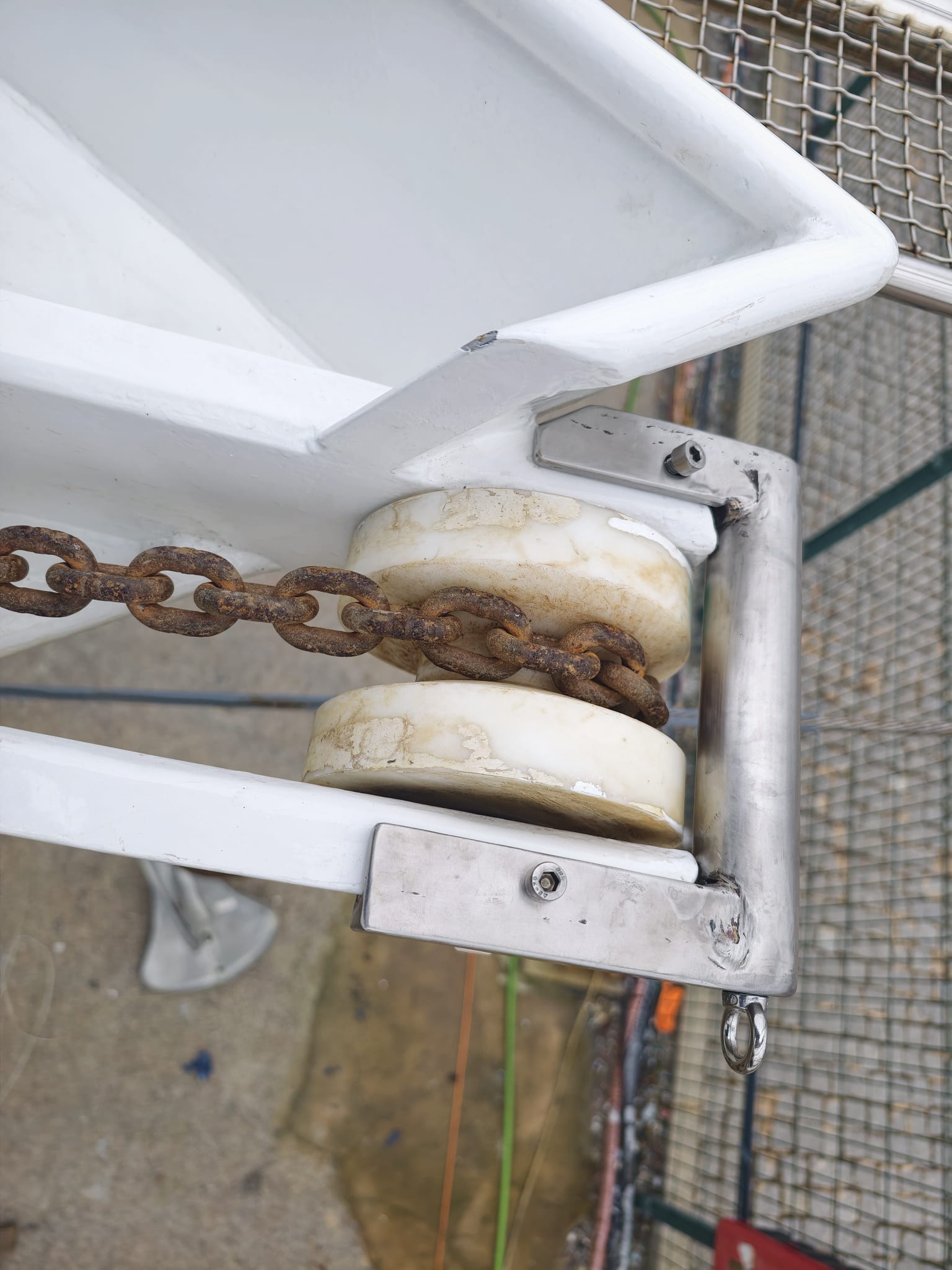 Of course we have to remove this bracket when the anchor is up and pulled onto the roller.