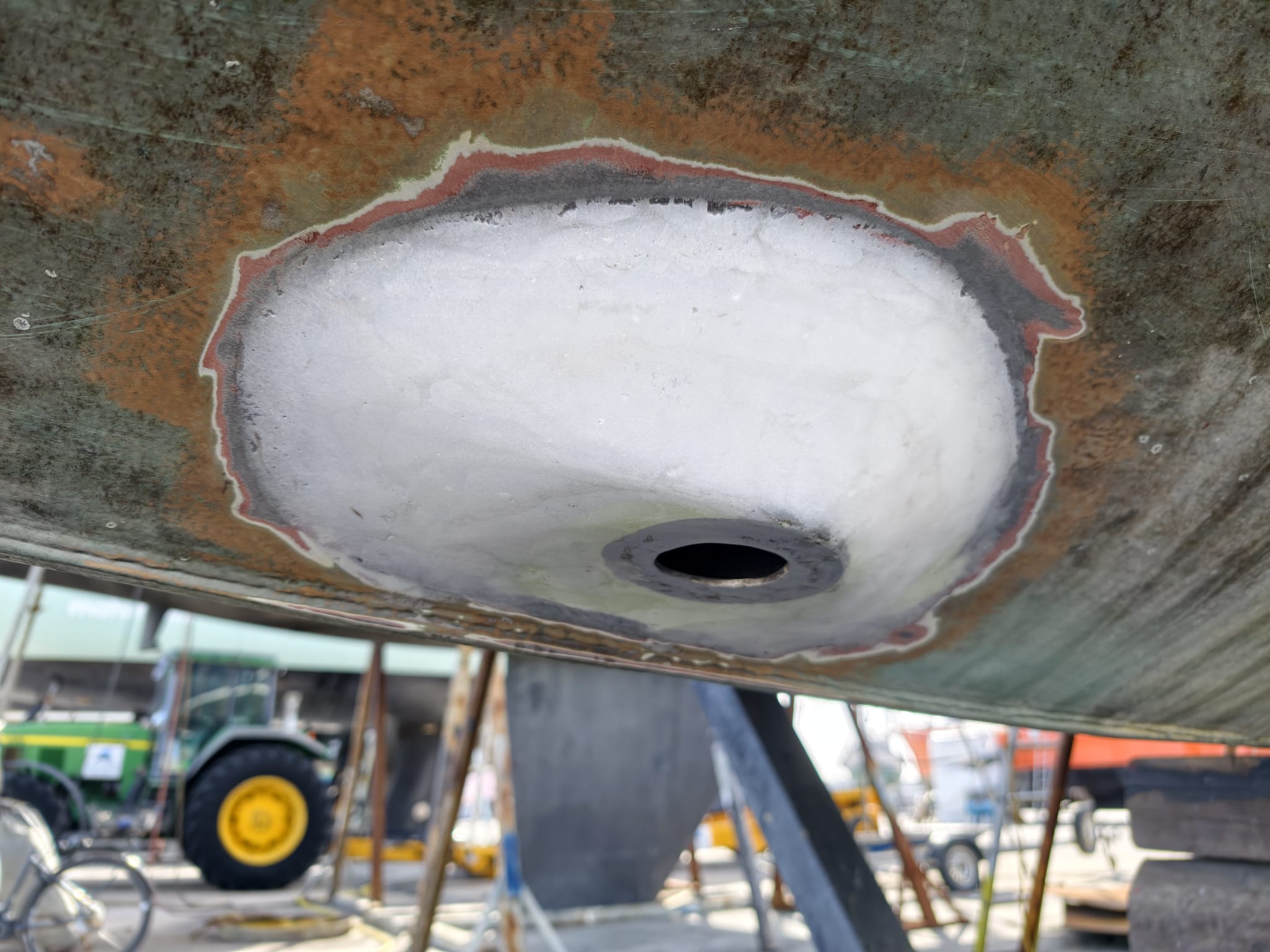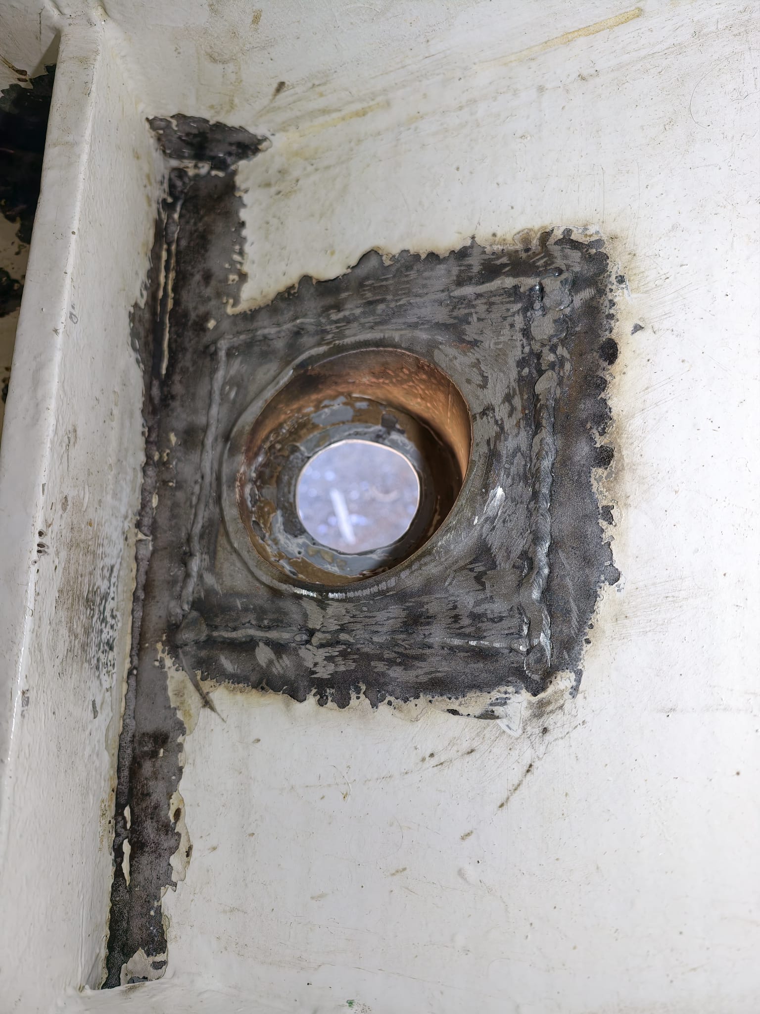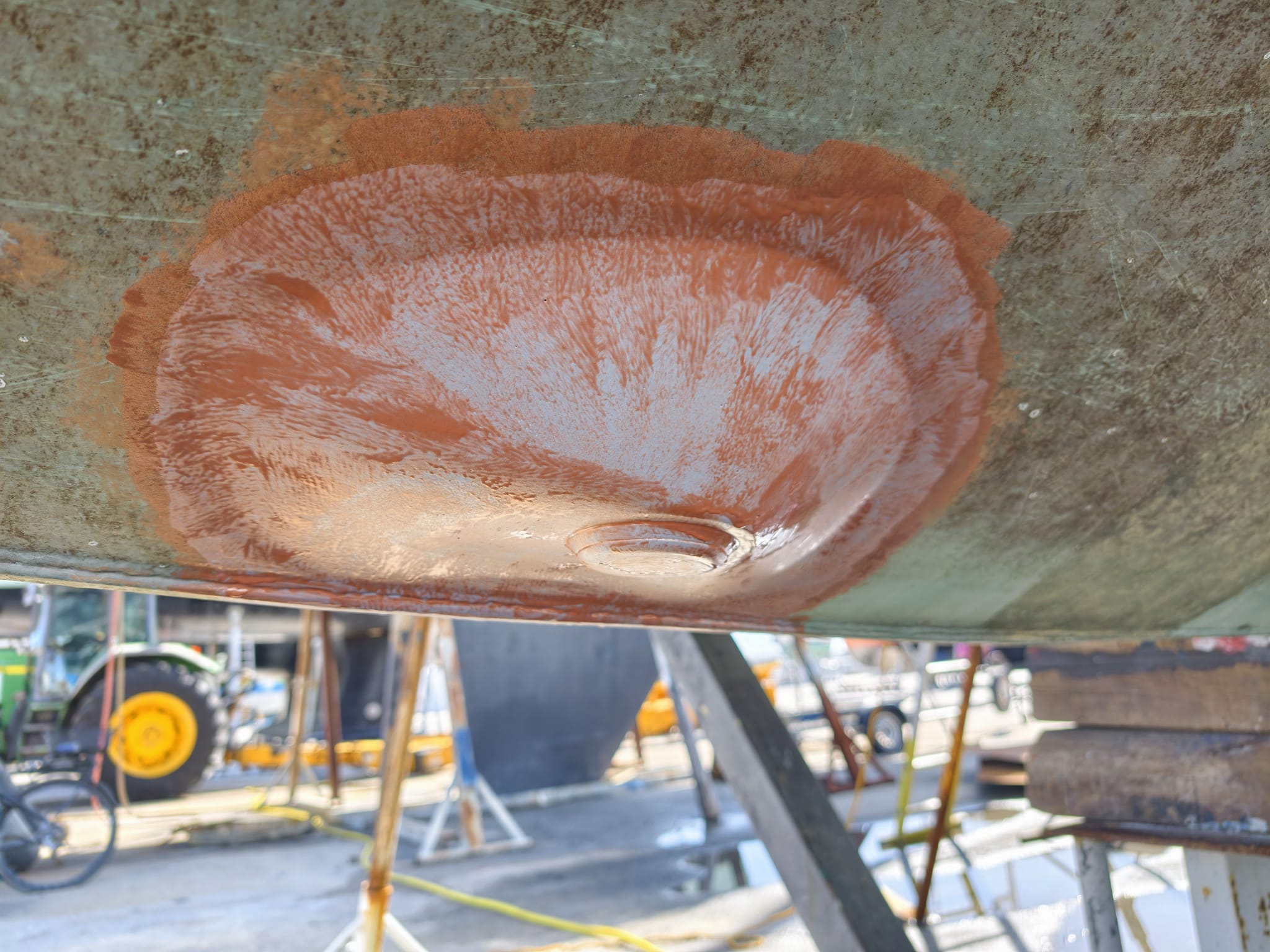 The area in the bilge where the welding was done get sand-blasted and has a great, very rough and clean surface after that.