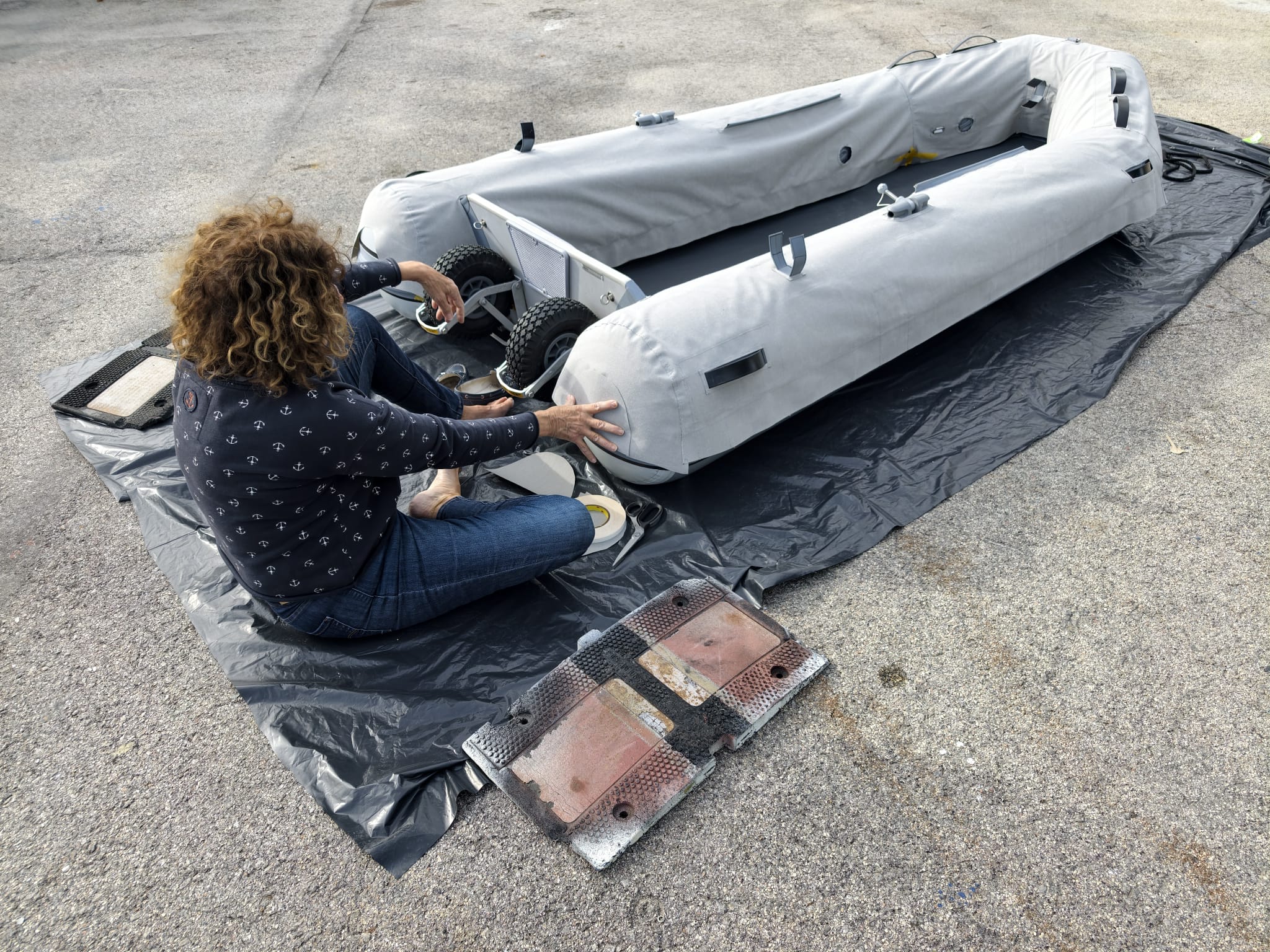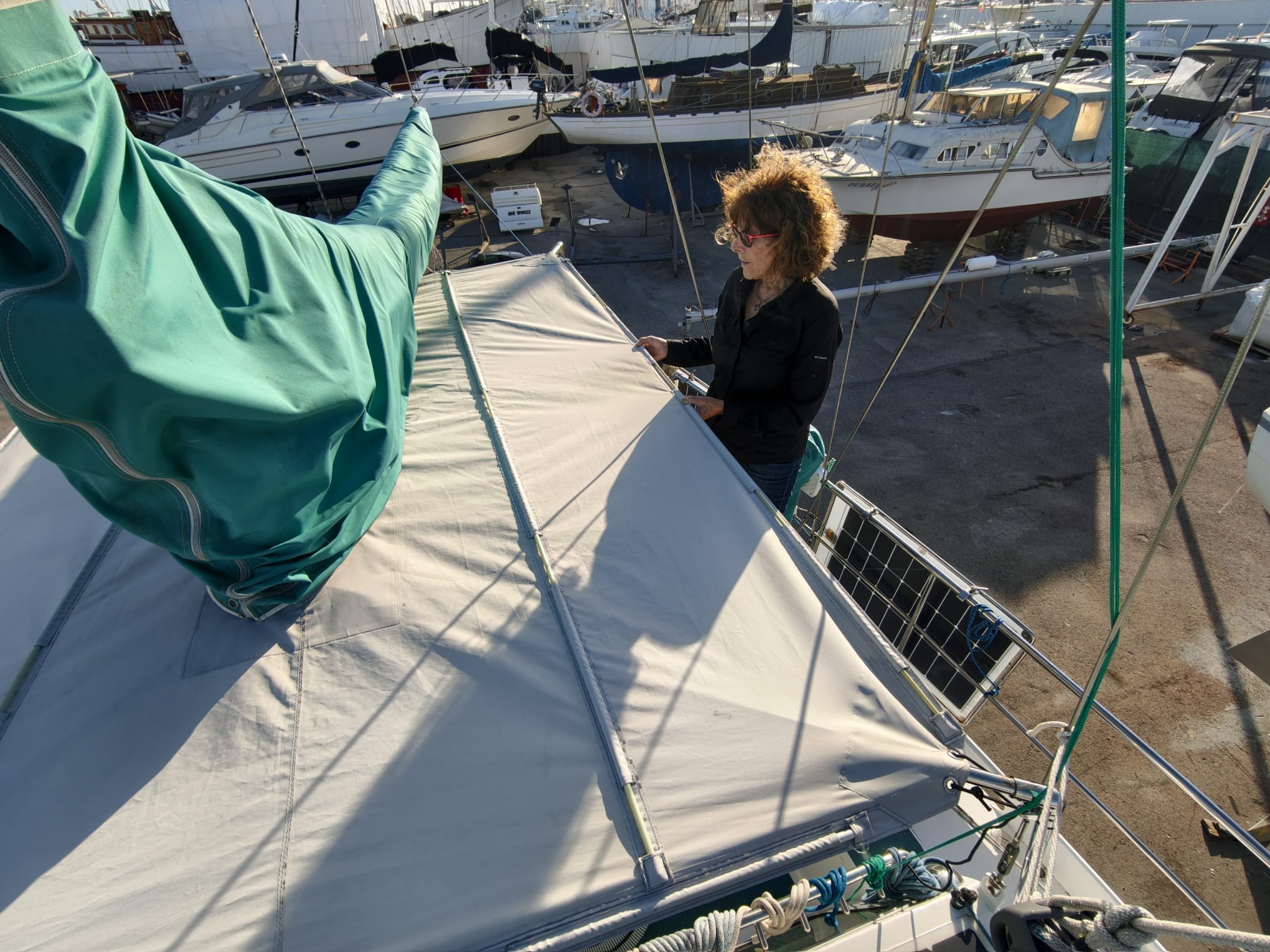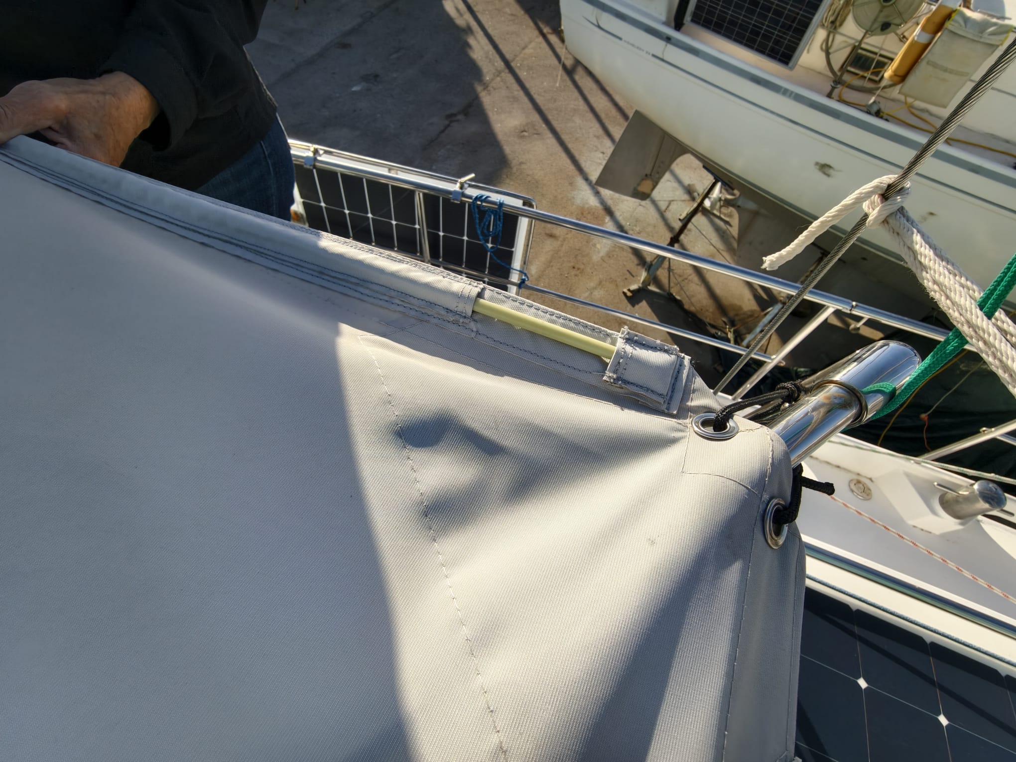 Sher continues on the dinghy cover.