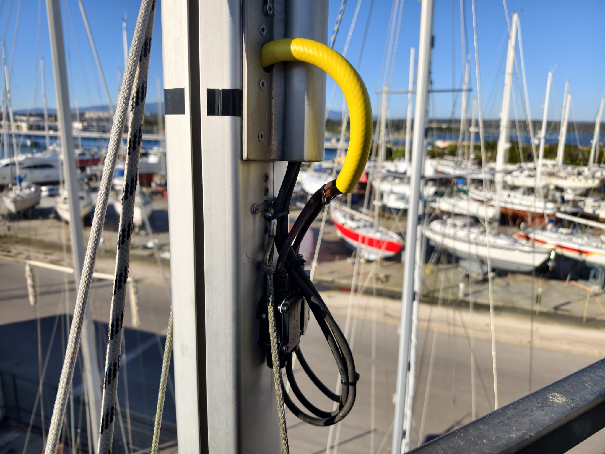The cables down the mizzen mast nicely protected with a piece of hose.
