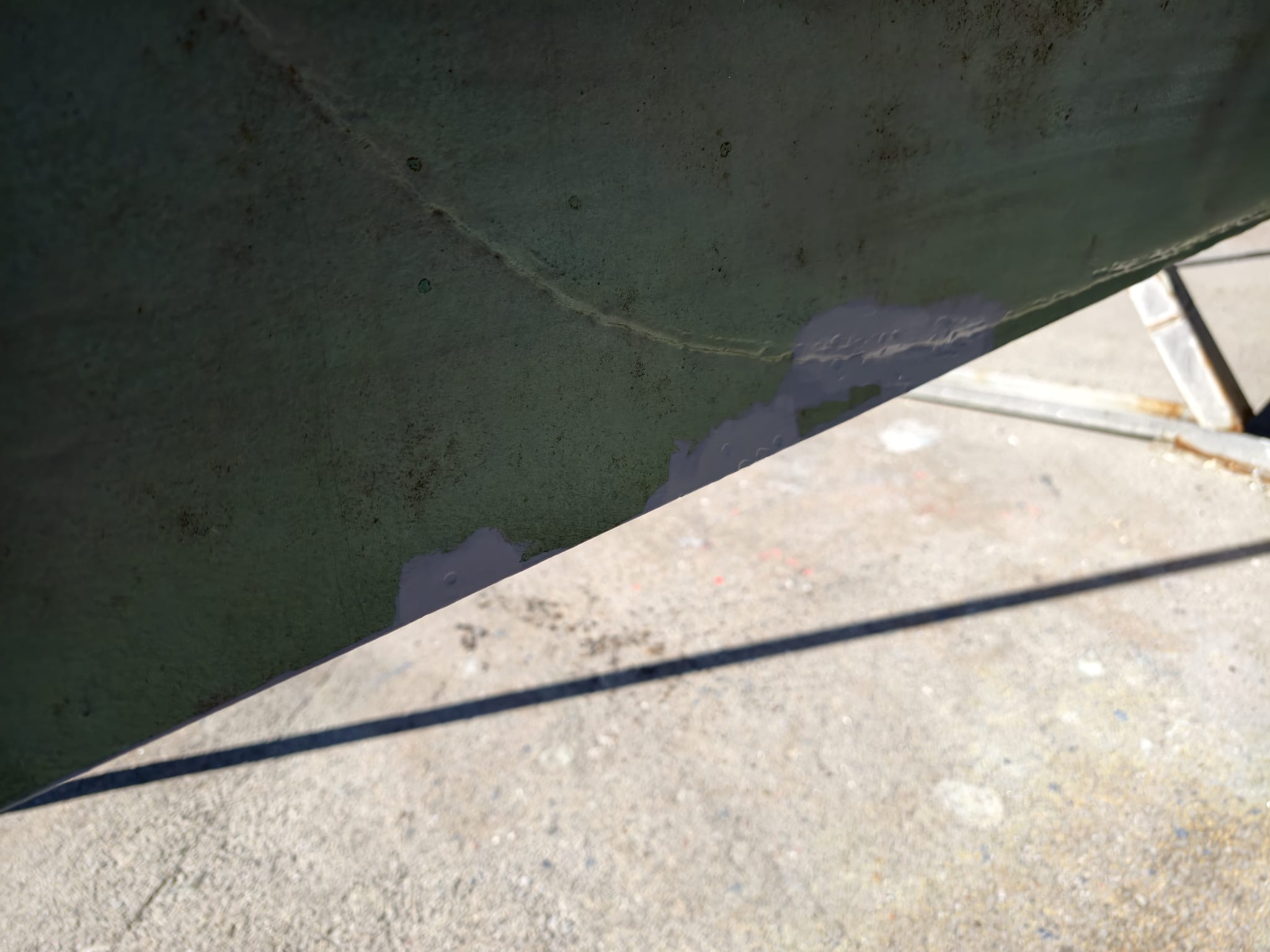 The second layer dries even slower: after 3 hours it’s still too soft to paint another layer. A cool sea breeze came up. The temperature dropped to 15ºC and the humidity got very high. Since CopperCoat is water-based it needs warmth and dry air to dry. We decide to to postpone the next layers till tomorrow.