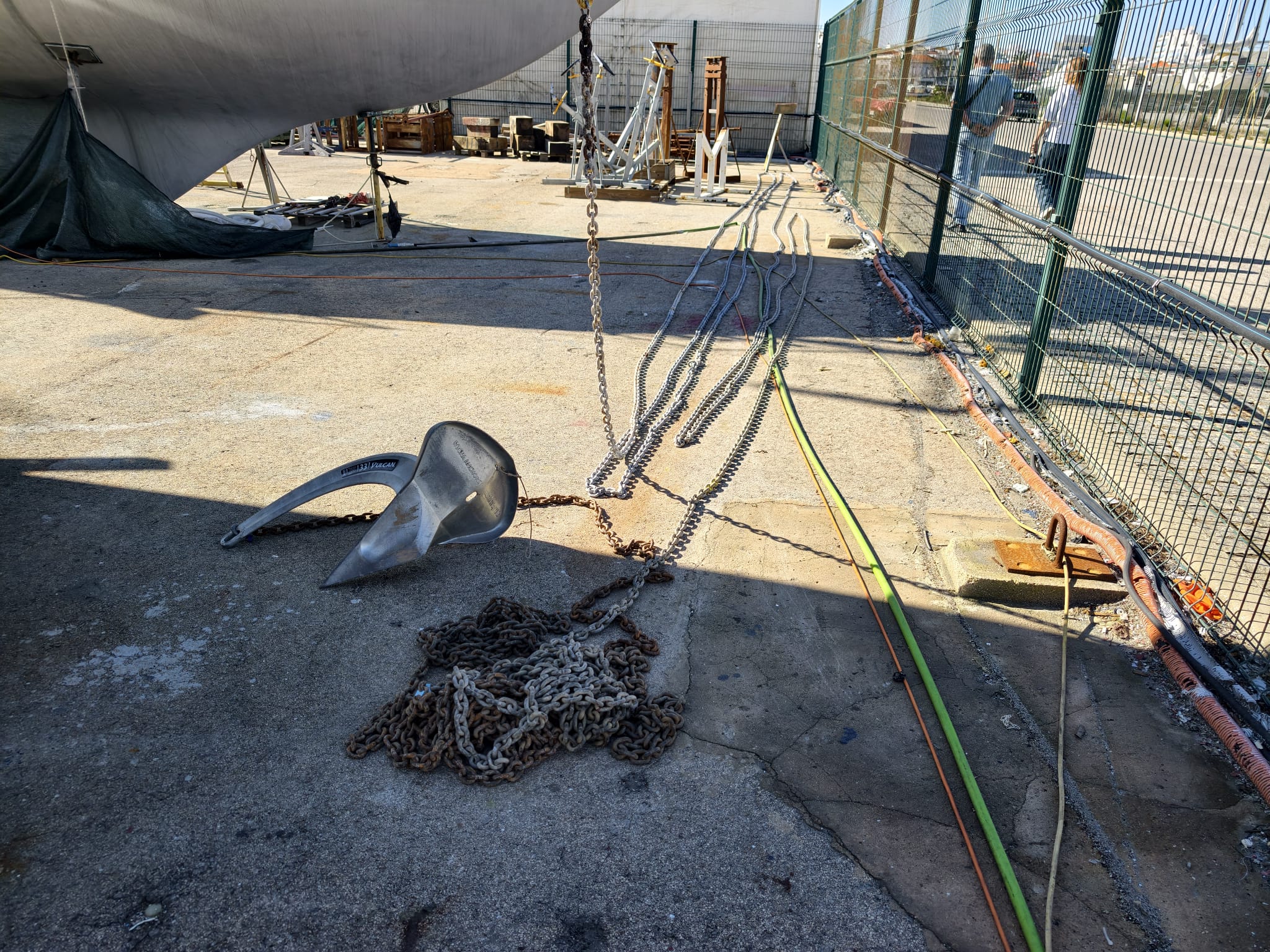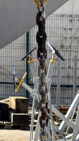 While the primer dries, Wim rolls out the entire anchor chain for inspection and marking.
