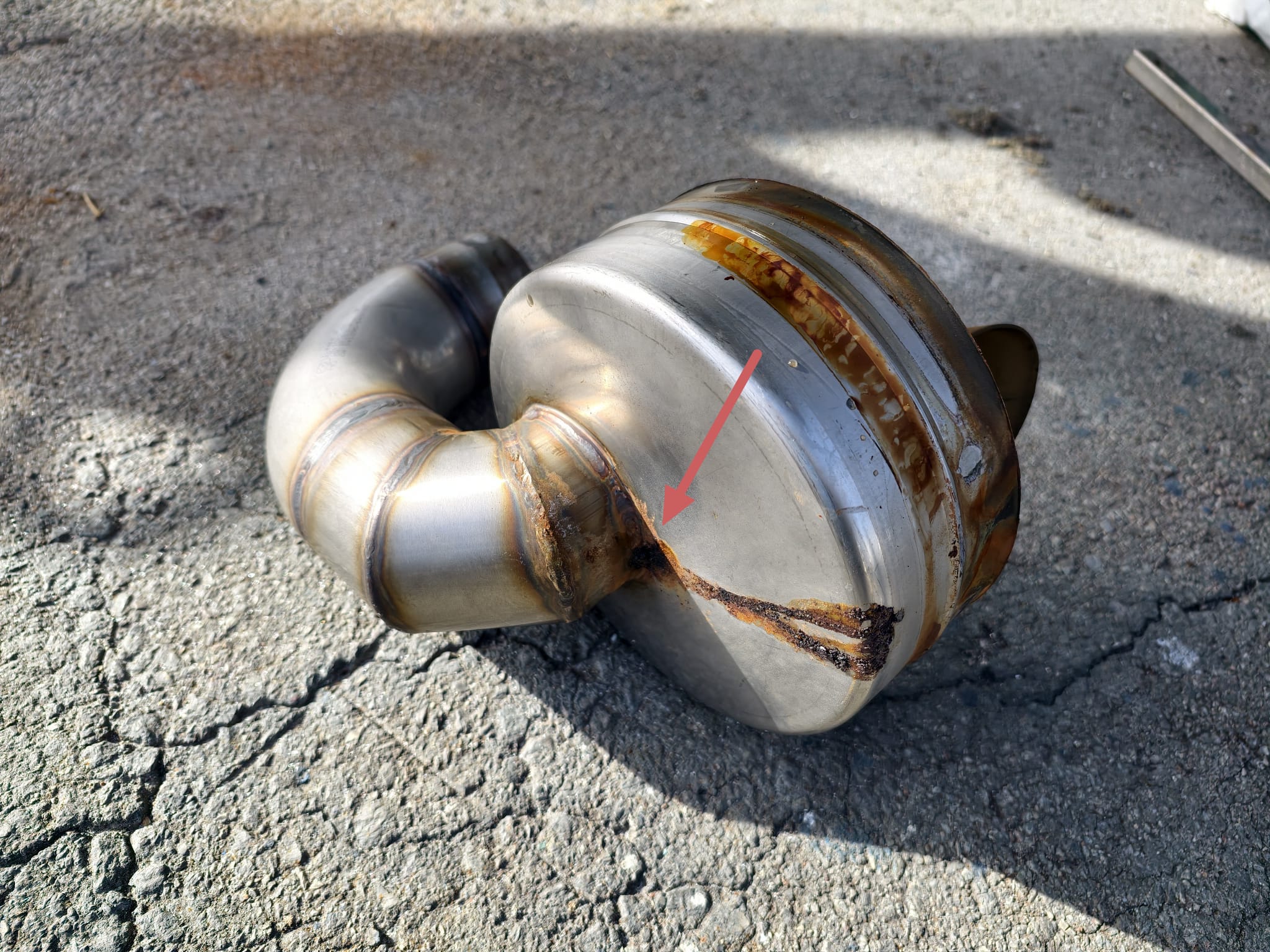 There it is. A bad weld. Some corrosion from salt water.