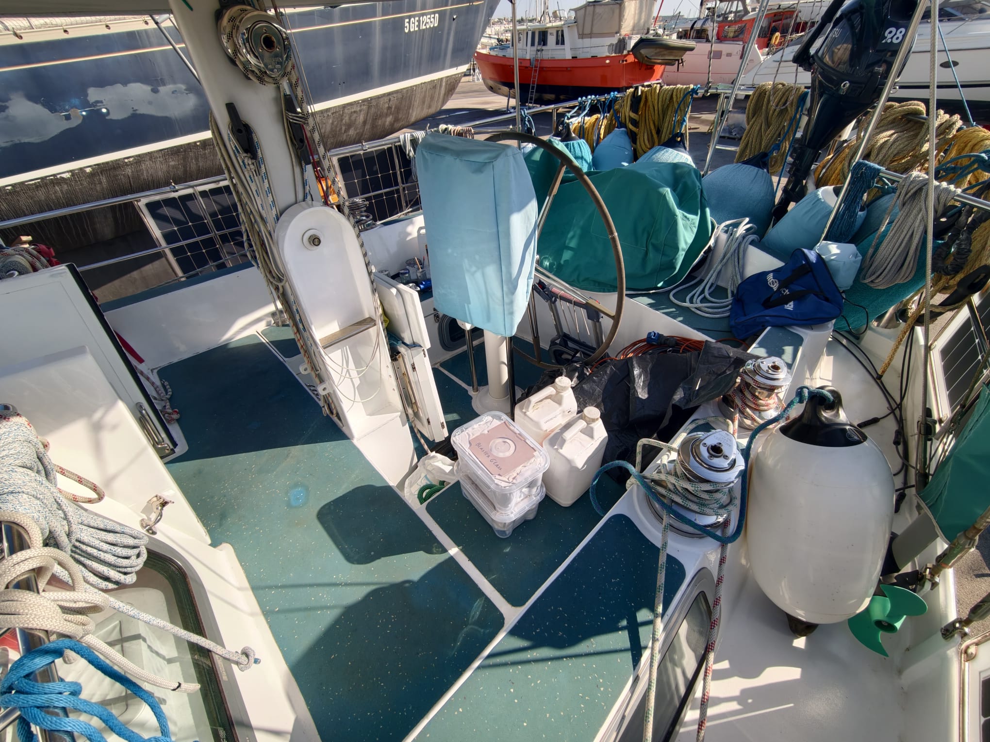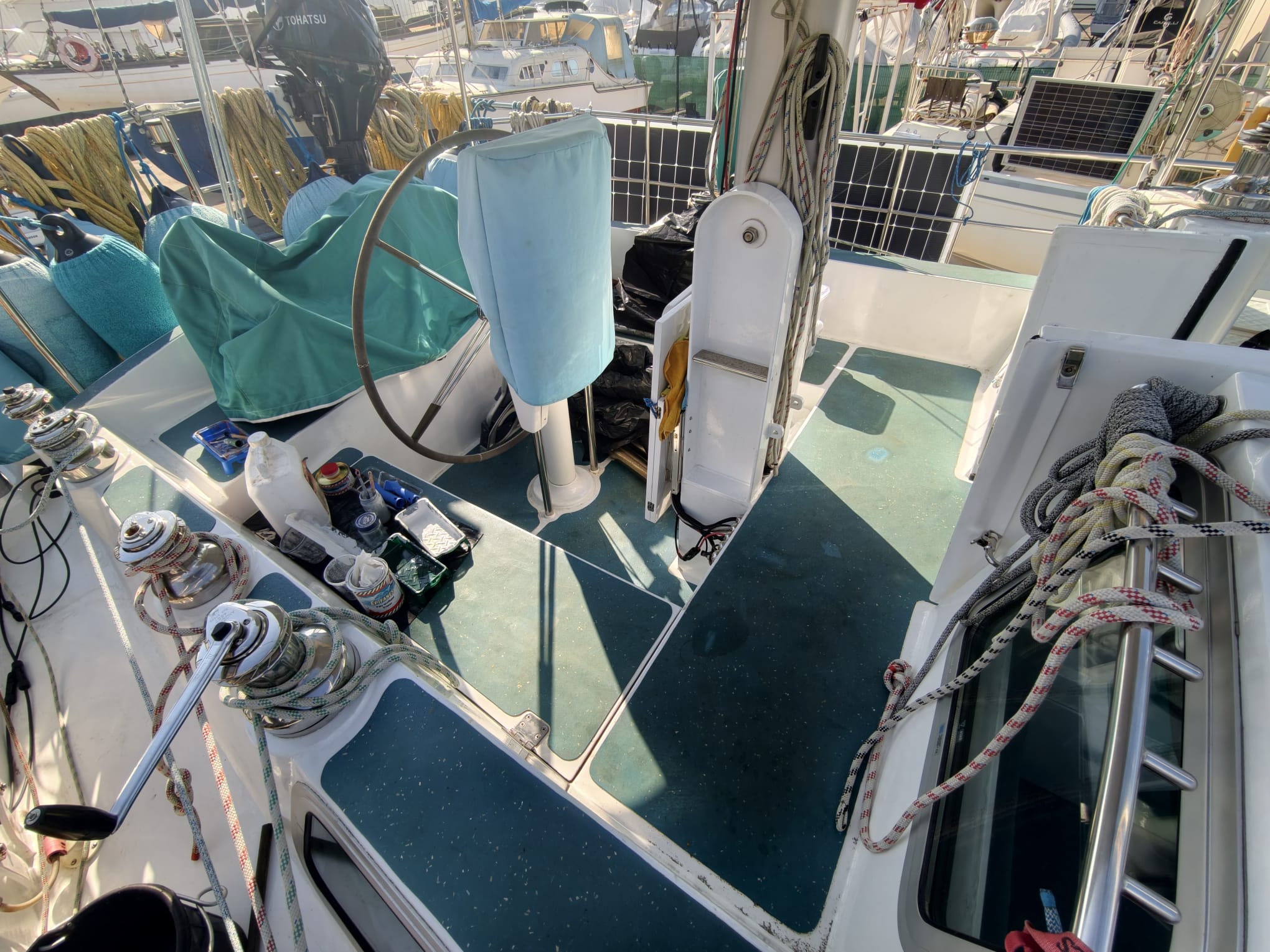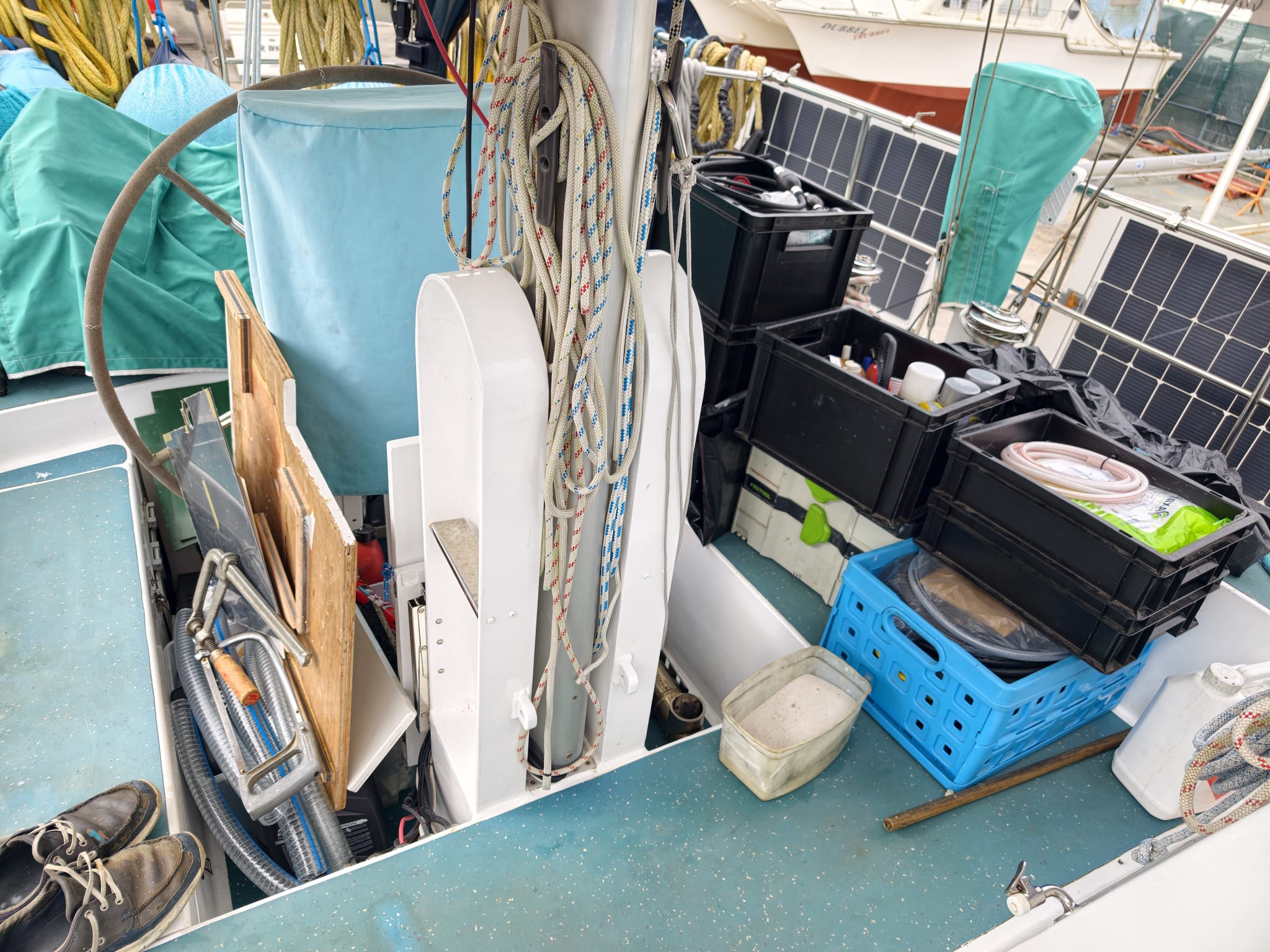 In the afternoon, we empty the entire lazarette. The cockpit full of stuff 😅