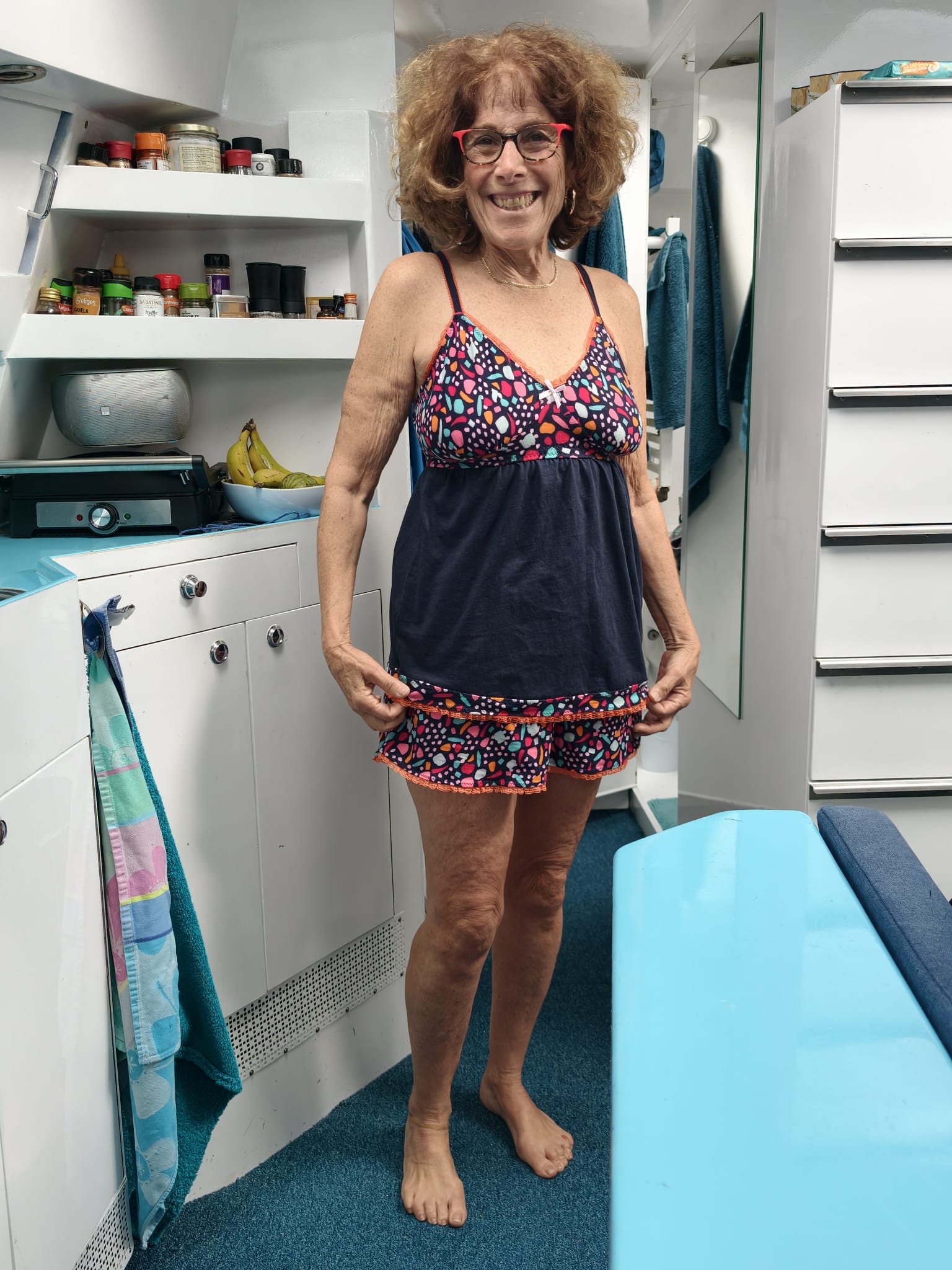 Sher was at the boatyard office, bringing the keys back, but in the meantime she has jumped aboard.