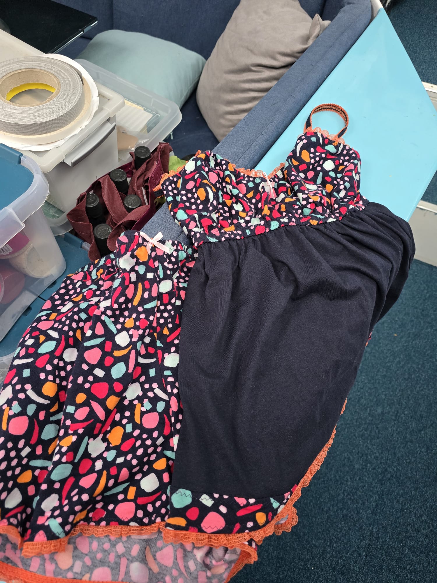 Sher makes pajamas for boat fender covers, for the dinghy, for the dinghy floor, for the electric outboard motor, for the instrument pod, for the outdoor VHF speaker, for the dinghy battery pack, pajamas for everything!