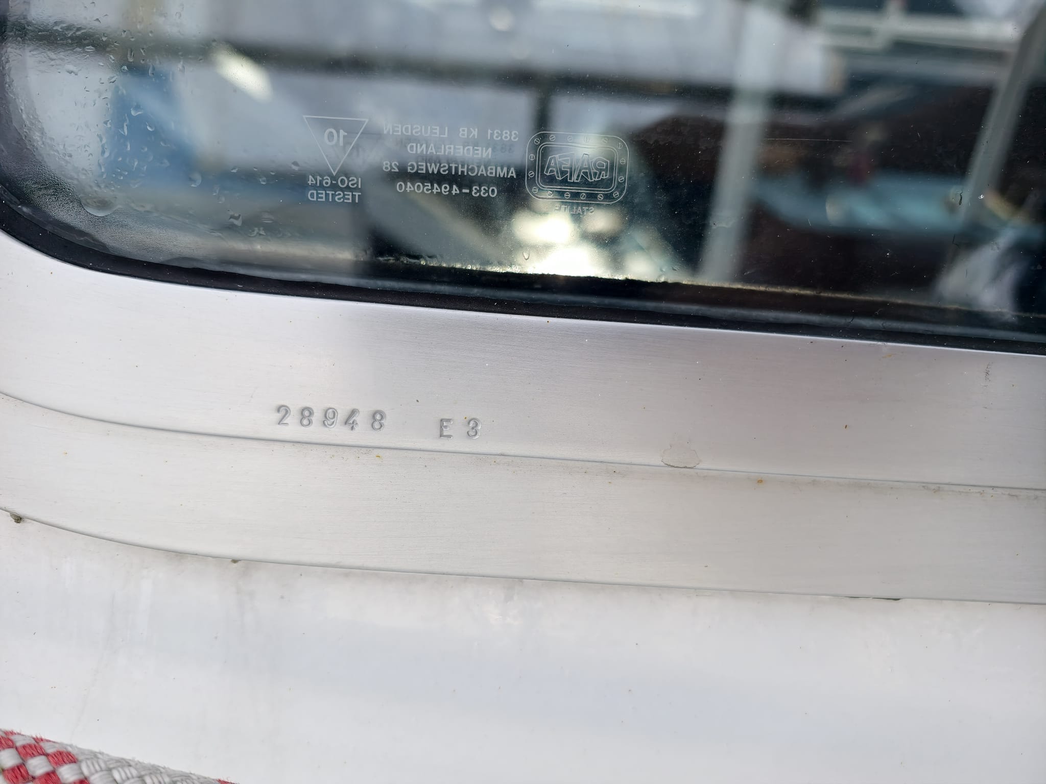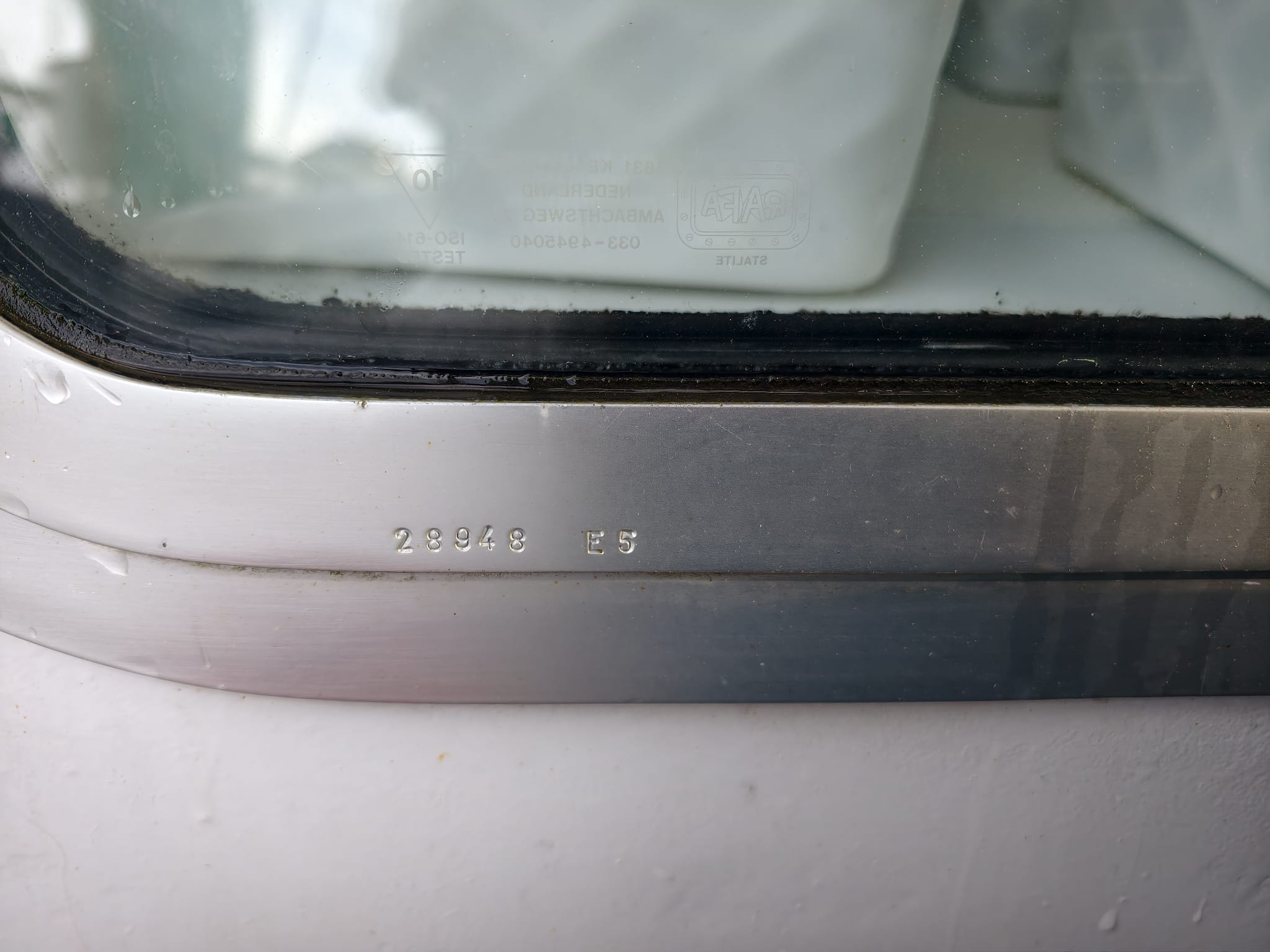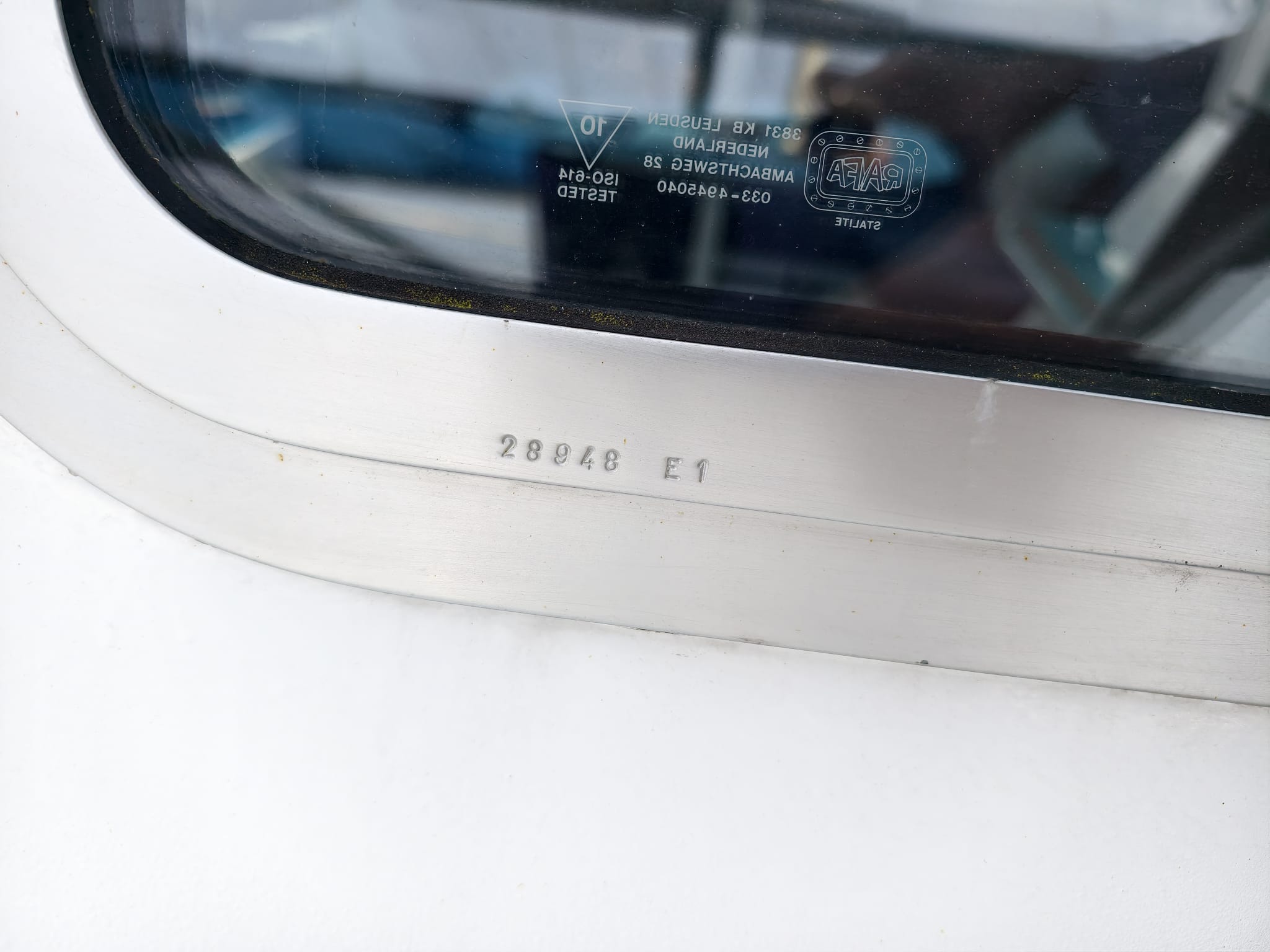 In the morning, when the temperature rises quickly after a cool night, we notice some condensation between the panes of the double glass window of the Port side front window. Bummer! We know what this means: this glass pane will have to be replaced… 2 years ago, in Harlingen, we had 4 windows replaced. The other windows looked fine at that time but now it appears they have their turn, too… It looks like the problem appears at the windows which a little bend: they follow the slight curve of Dione IV’s hull. The theory is that the slight bend of the double glass causes some strain that makes the seal between the glass pane go leaky and moist and air can penetrate. So, we’ll have to repair another 4 windows… Big job… We send pictures and serial numbers to the manufacturer (Hora ship windows) in the Netherlands to see what solution they can offer.