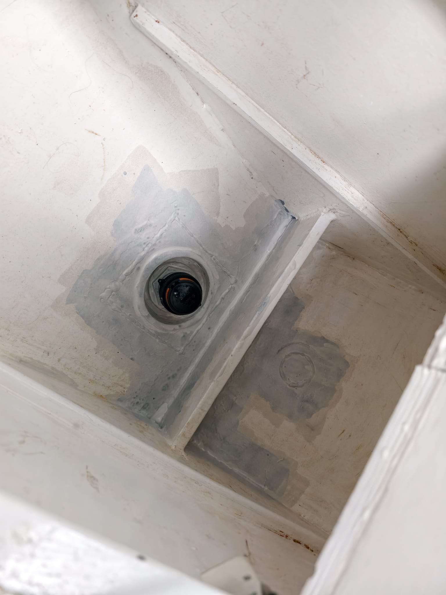Bilges painted with 2 layers of Interprotect White and 2 layers of Epifanes 2k white primer.