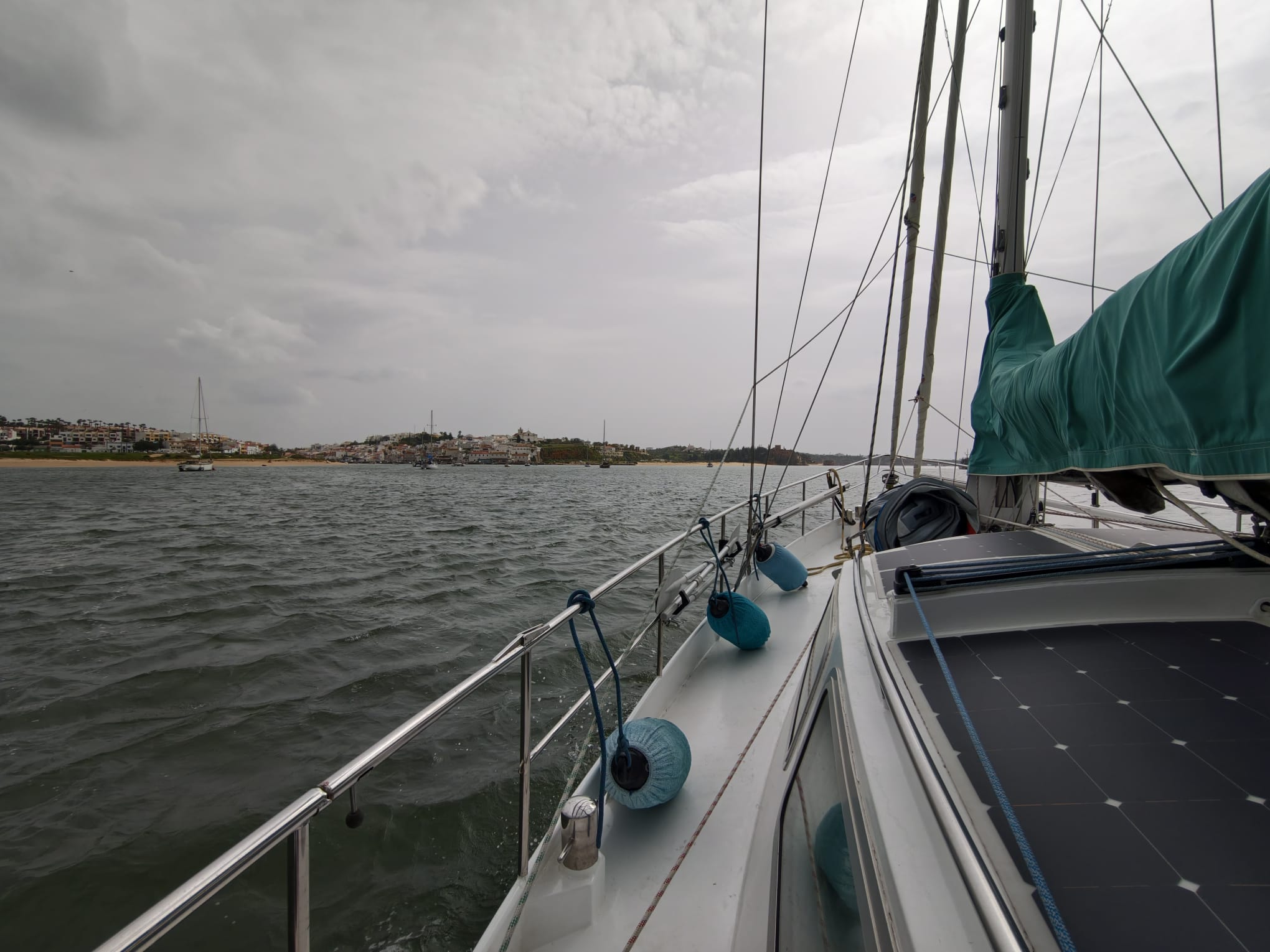 We go into the outer anchorage area of Portimão as it is not allowed to anchor at the inner anchorage because of dredging operations.