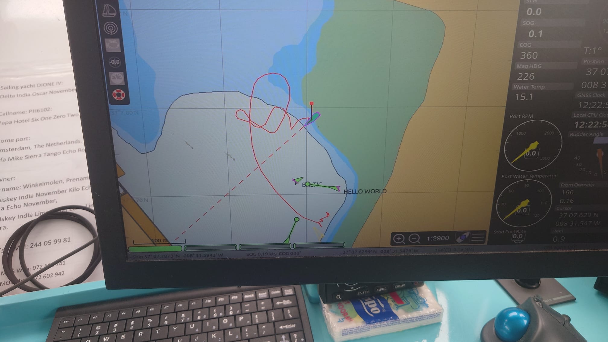 At 1330h, we call the boatyard to confirm. Yes, you can come now, they say. So, we hoist our anchor. It’s settled very firm! We have to sail over it with some real force to break it free.