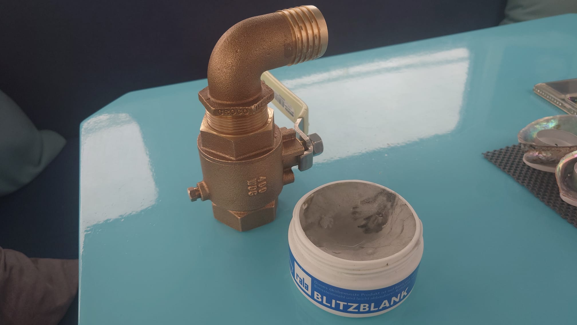 Today at 1400h our lift into the boatyard is planned. One of the things we are going to do is replace all our through-hull valves. We have ordered these Groco valves in the UK last summer… the best quality pure bronze valves. But the threads on one is damaged.