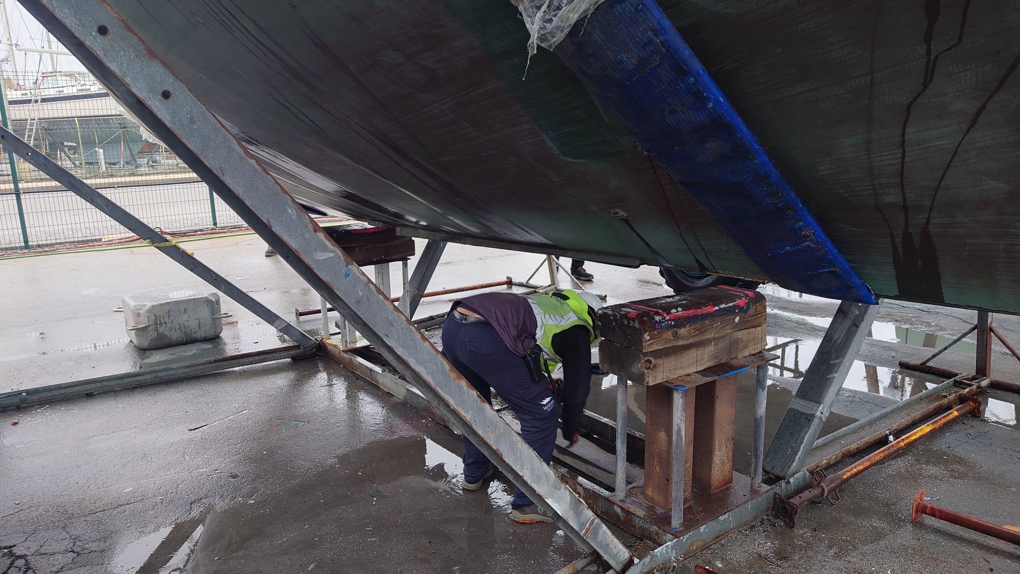 The only thing is that we’ll have to wait for the weather to improve. We’re not going to do welding in storm and rain. The circumstances must be perfect for a good weld: this is our underwater hull and there should be no shitty welds!