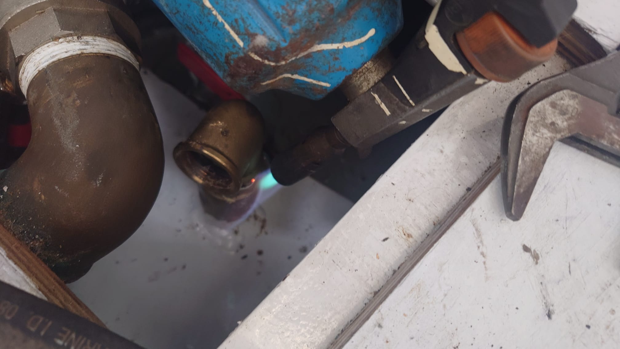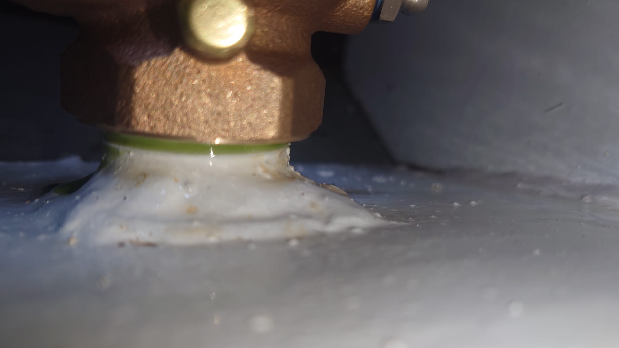The reason for using 2 different thread sealants is: if the elbow would have to be removed (for instance, if it gets clogged) while the boat is in the water, we can warm it a little bit and the Loxeal will easily release while the valve will stay in place because the Loctite 538 is extremely strong (if not heated, the housing of the valve will break before the Loctite breaks if one would put a huge spanner on it to try to turn it 💪🏻💪🏻).