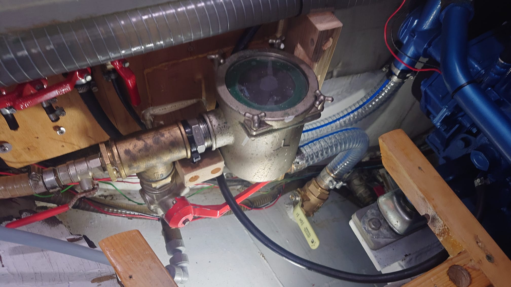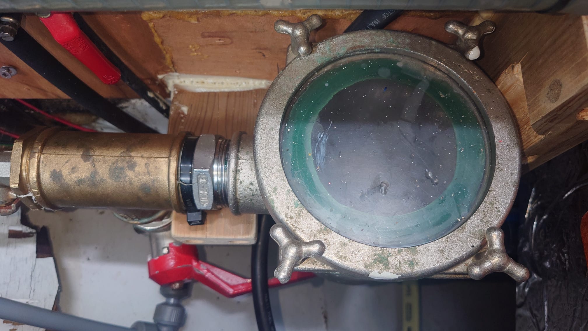 New strainer location…Yes, this is a big improvement! We can look into the strainer from the aft cabin floor.