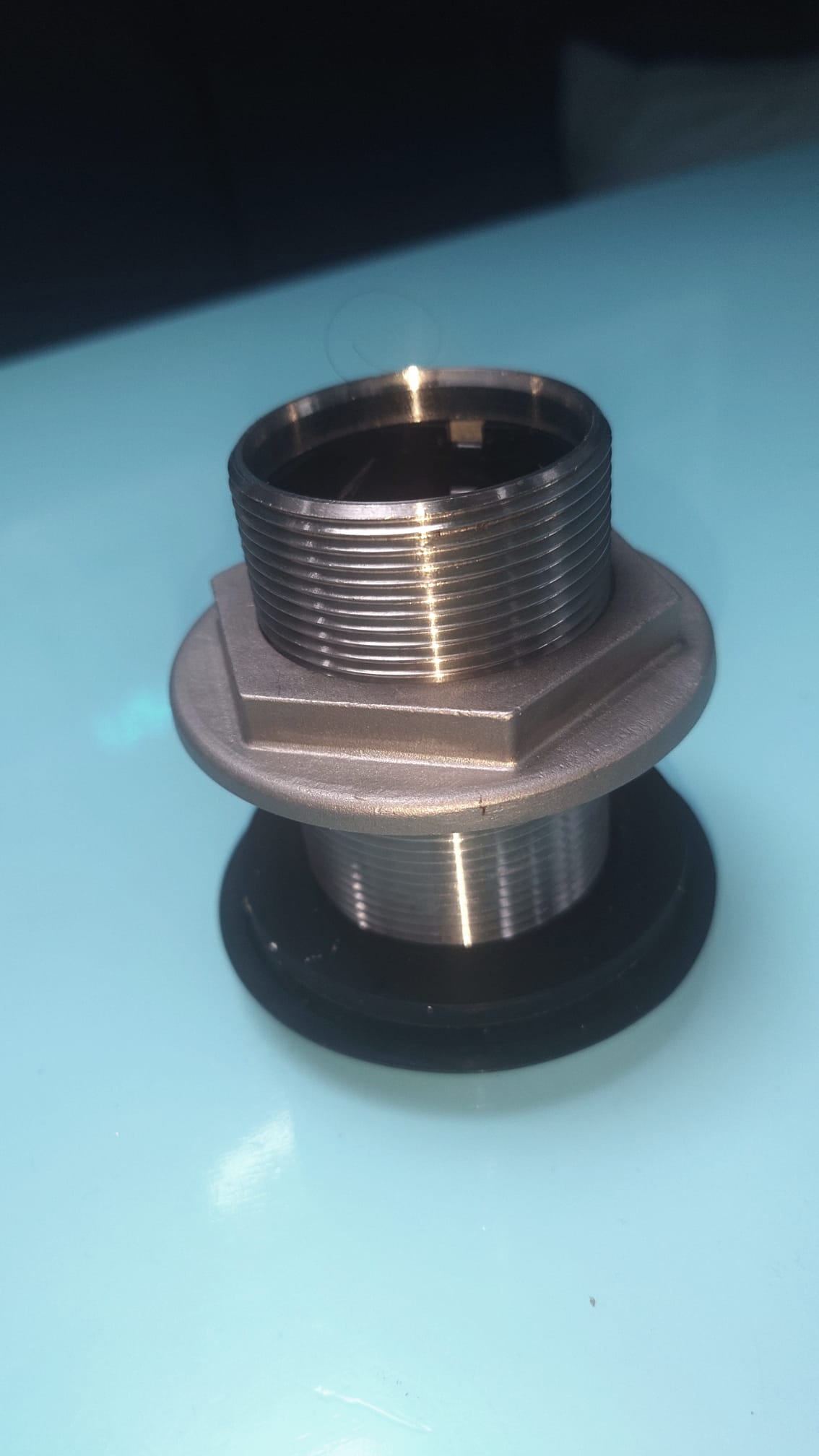 That’s why we bought this very sturdy stainless steel through hull fitting, last summer in the US.