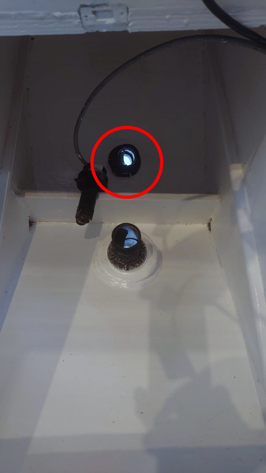 The pot has to be removed and a new hole has to be made for the DST850. So that it’s paddle wheel is fully in the water flow along the hull.