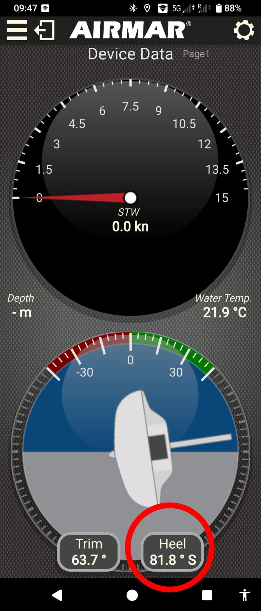 It’s a very nice piece of equipment. It has some intelligence built in, it has a motion sensor (so, it can measure angles of heel and trim), it has a Bluetooth interface that communicates with an app and it communicates via NMEA2000 with Dione IV’s board systems.