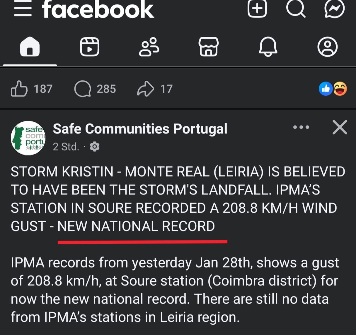 This is a real storm! At the Portuguese west coast, they had 70 knots of wind and in the mountains even almost 100 knots! Lots of damage everywhere.