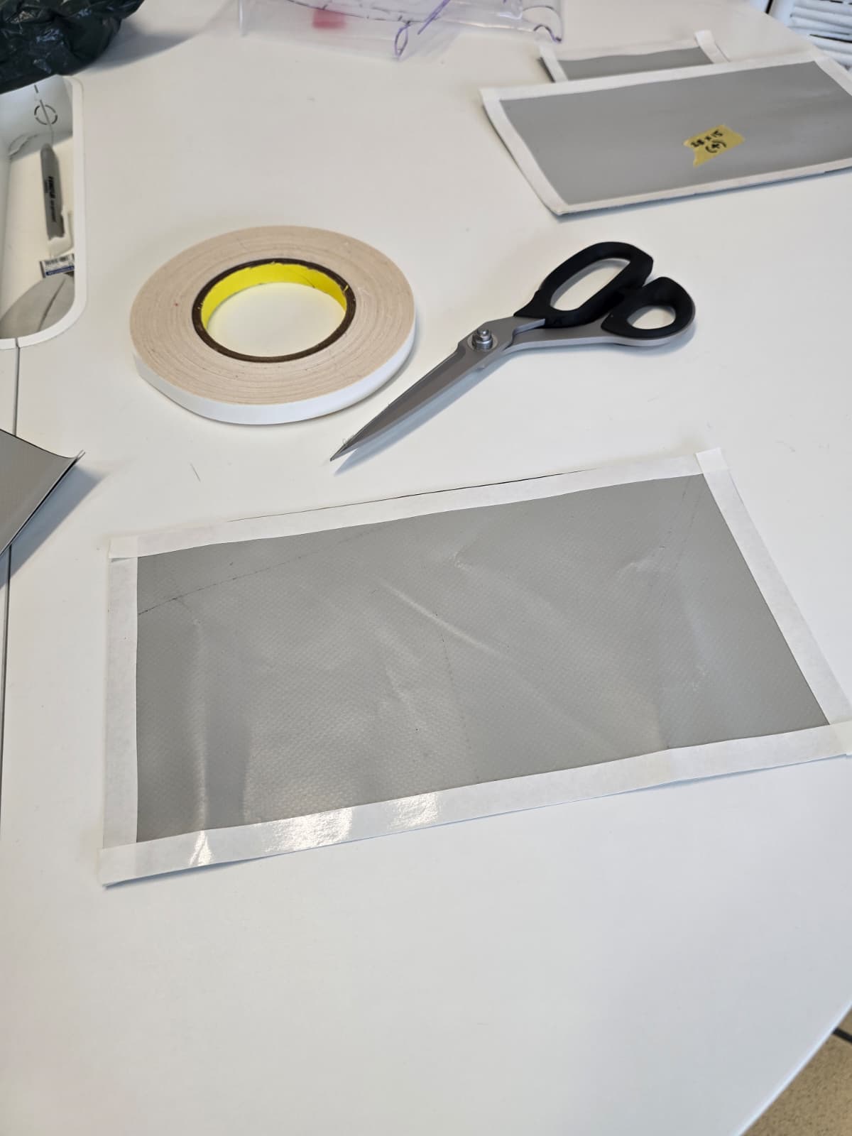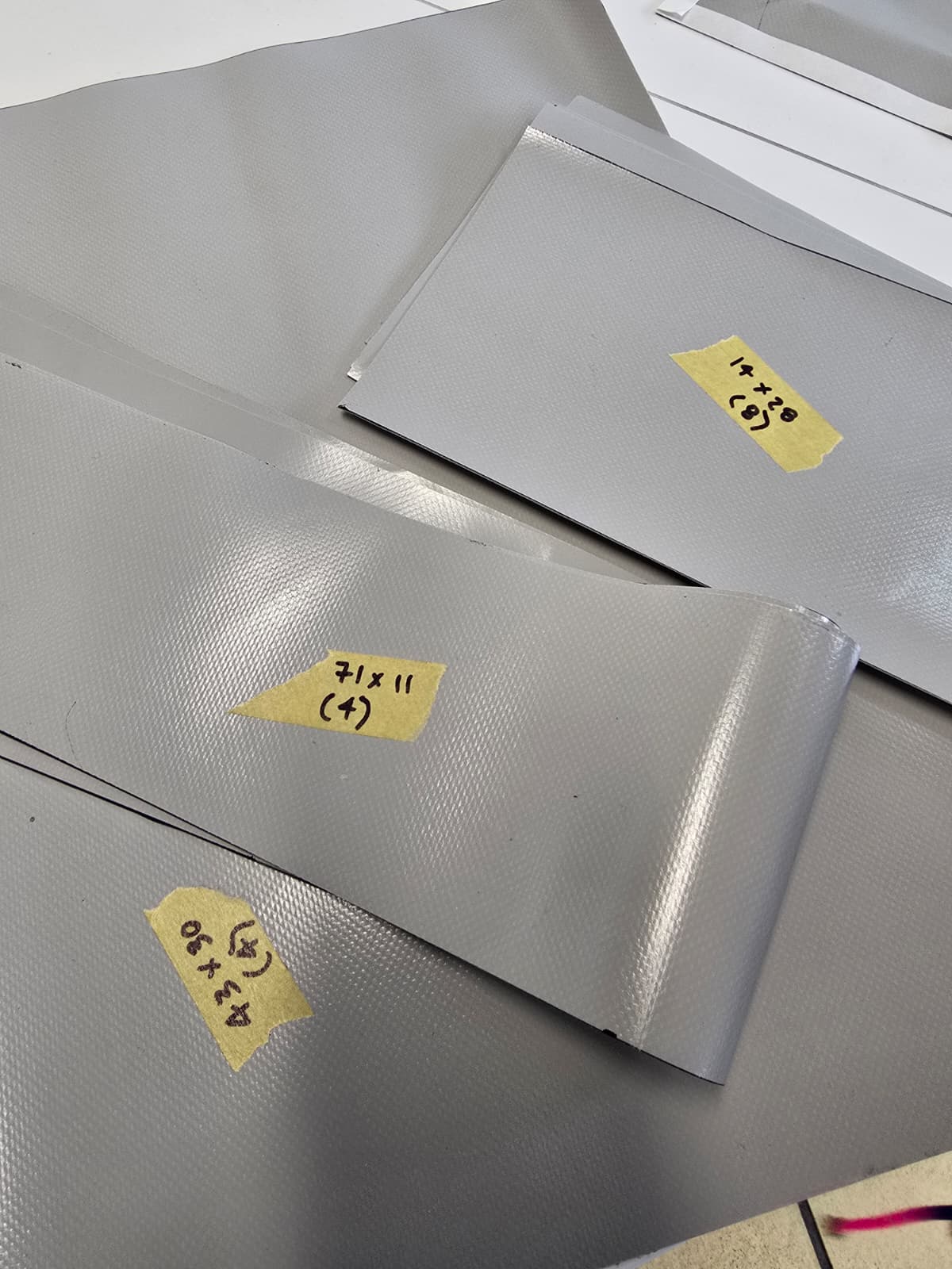 Meanwhile, Sher is going to the marina every day to work with Sacha and Marcia on the dinghy chaps. Sacha has arranged that they can work in a room in marina office building, which is great in this crappy weather!