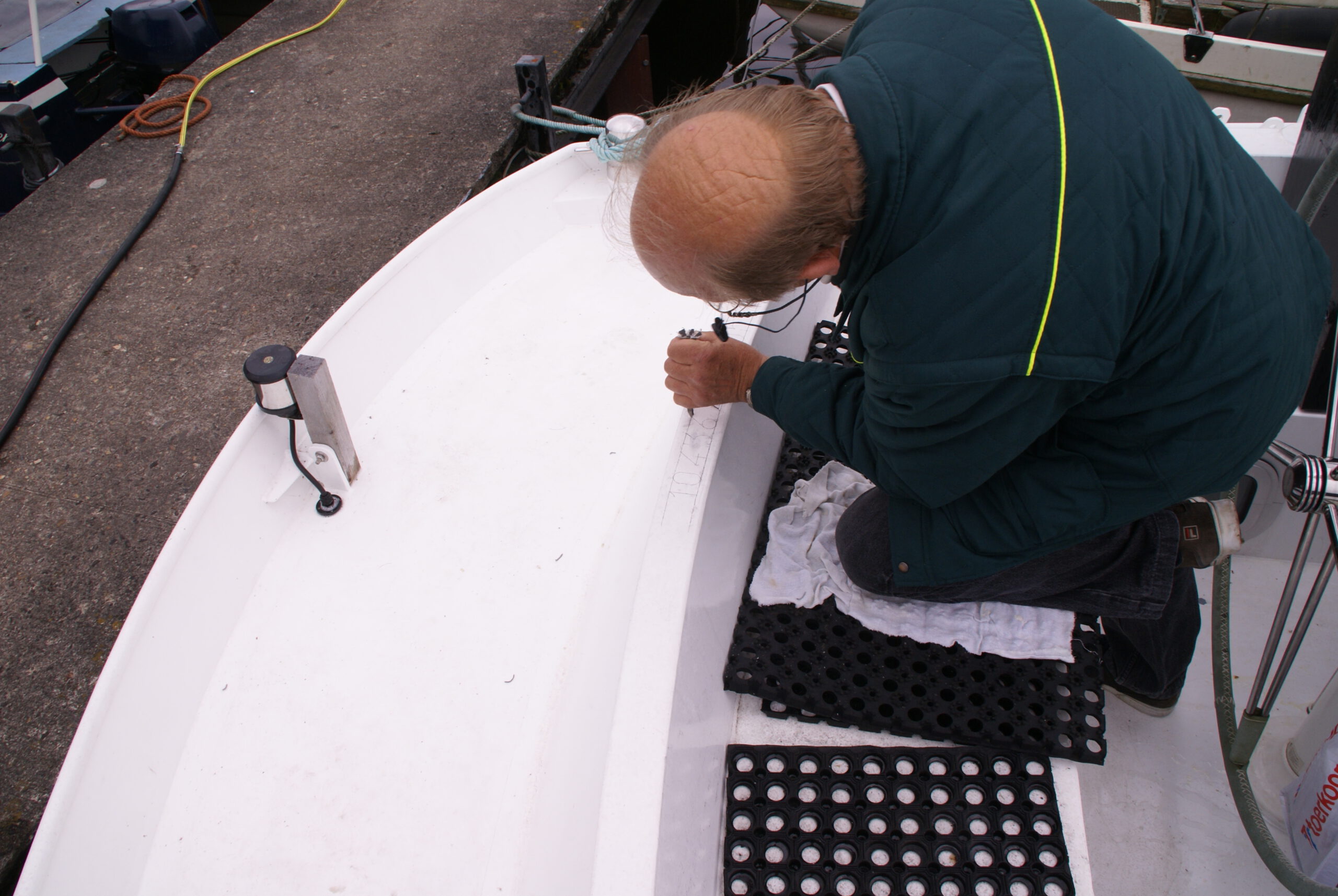 Still discussing with the ships registry. On the certificate, the length of the boat appears to be wrong, too: it says 13,25m, which is the length overall (including the bowsprit) but it should be the length of the hull. Which is 12,29m. The clerk at the registry emails: the ship has to be re-measured to change that. Please come to Rotterdam with the boat. No, we are not going to do that! So, Wim has to convince them it should be done in another way: They physically measured the boat in 2010 and by that time, the bowsprit wasn’t there yet (that came in 2013, with the rigging). So, for sure, the hull was measured: 12,29m. Wim has photo’s of that visit to prove it! Here’s the officer chiseling the registration mark in the cockpit edge on June 5, 2010 at 11 o’clock in Spaarndam, The Netherlands. They should have that in their archives! It is a mystery how the 13,25m got into the certificate.
