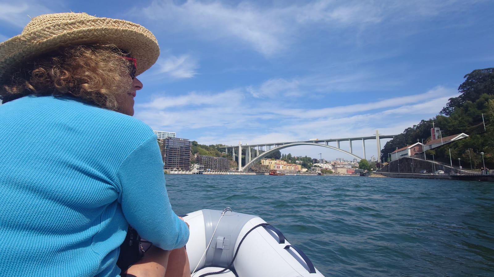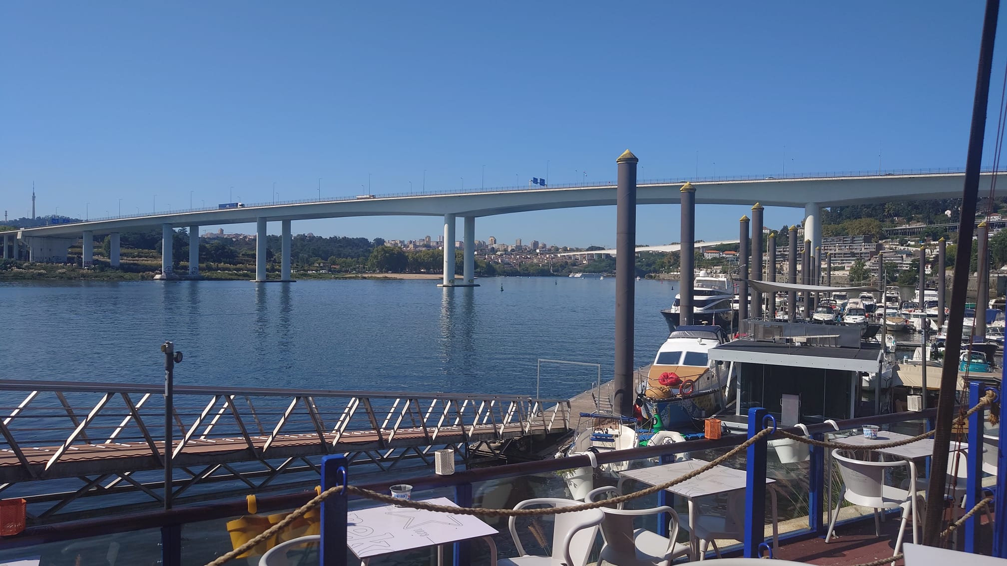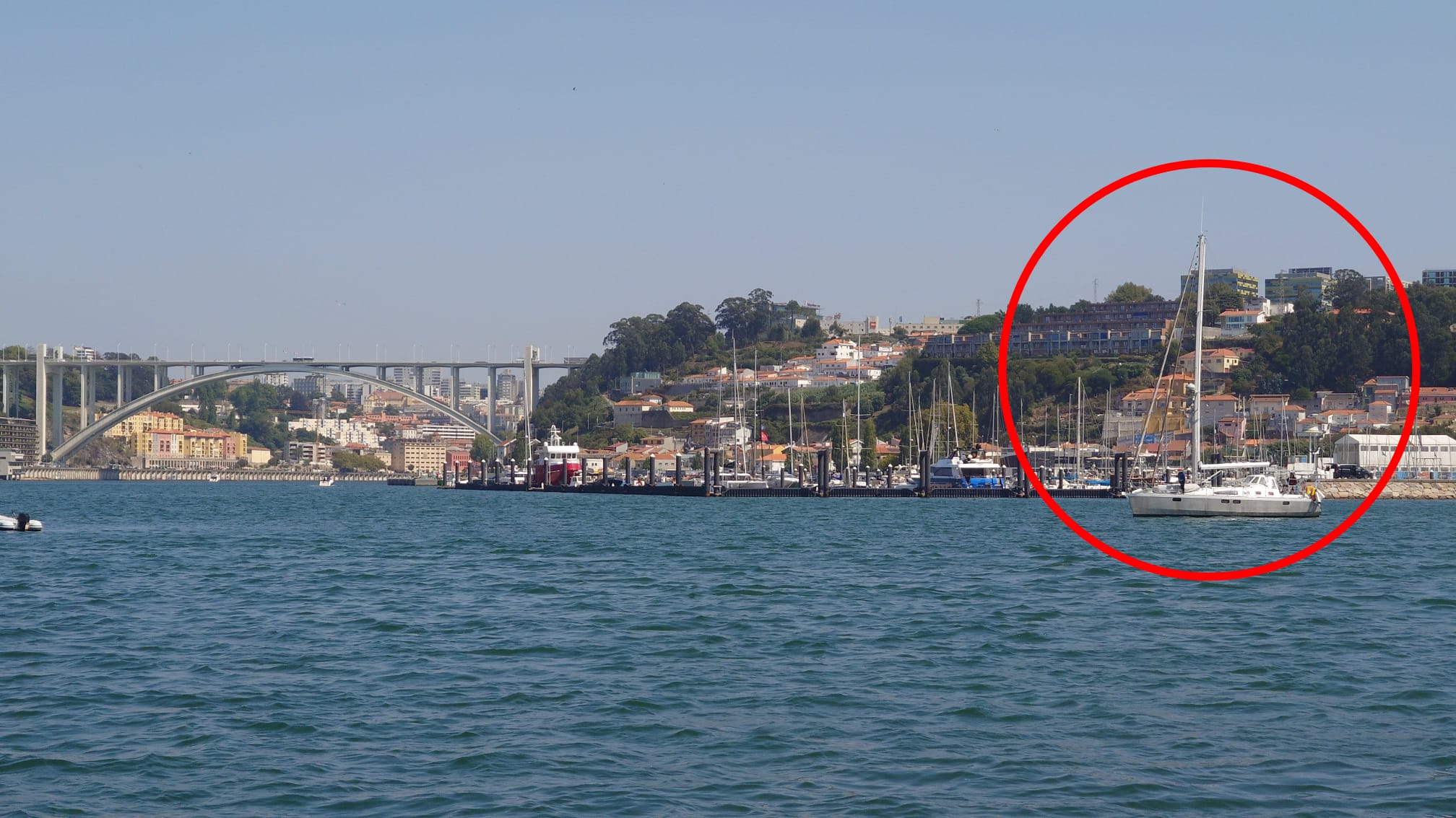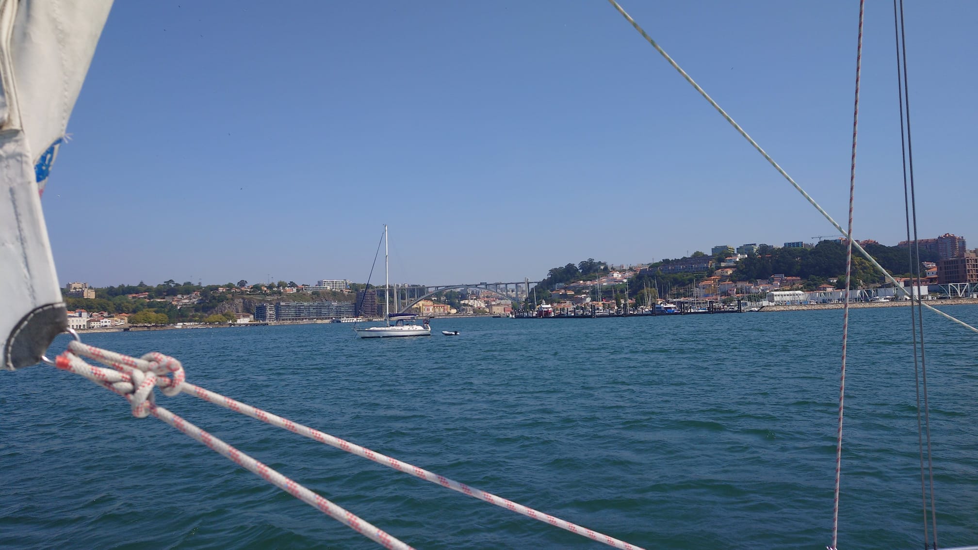 We anchor in a shallow bay by the marina and admire the first bridge over the Douro river. An hour later, the boat “Bird Song” arrives.