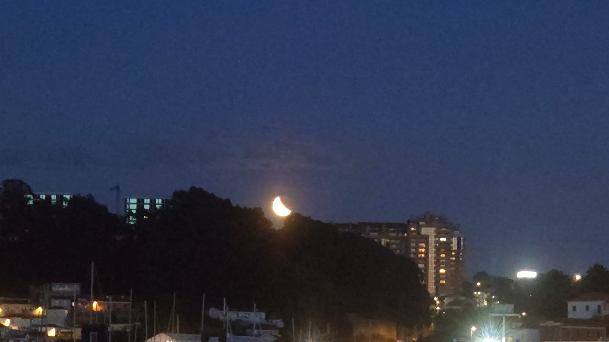 We have a moon eclipse tonight! Just after the moon rises over the hills at 2015h. Not a full moon eclipse in this area but still, beautiful.