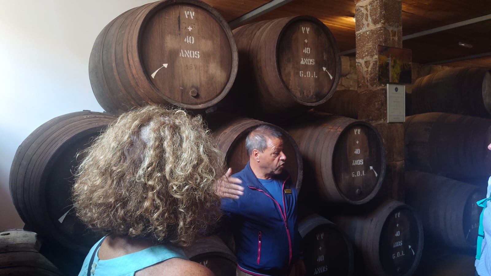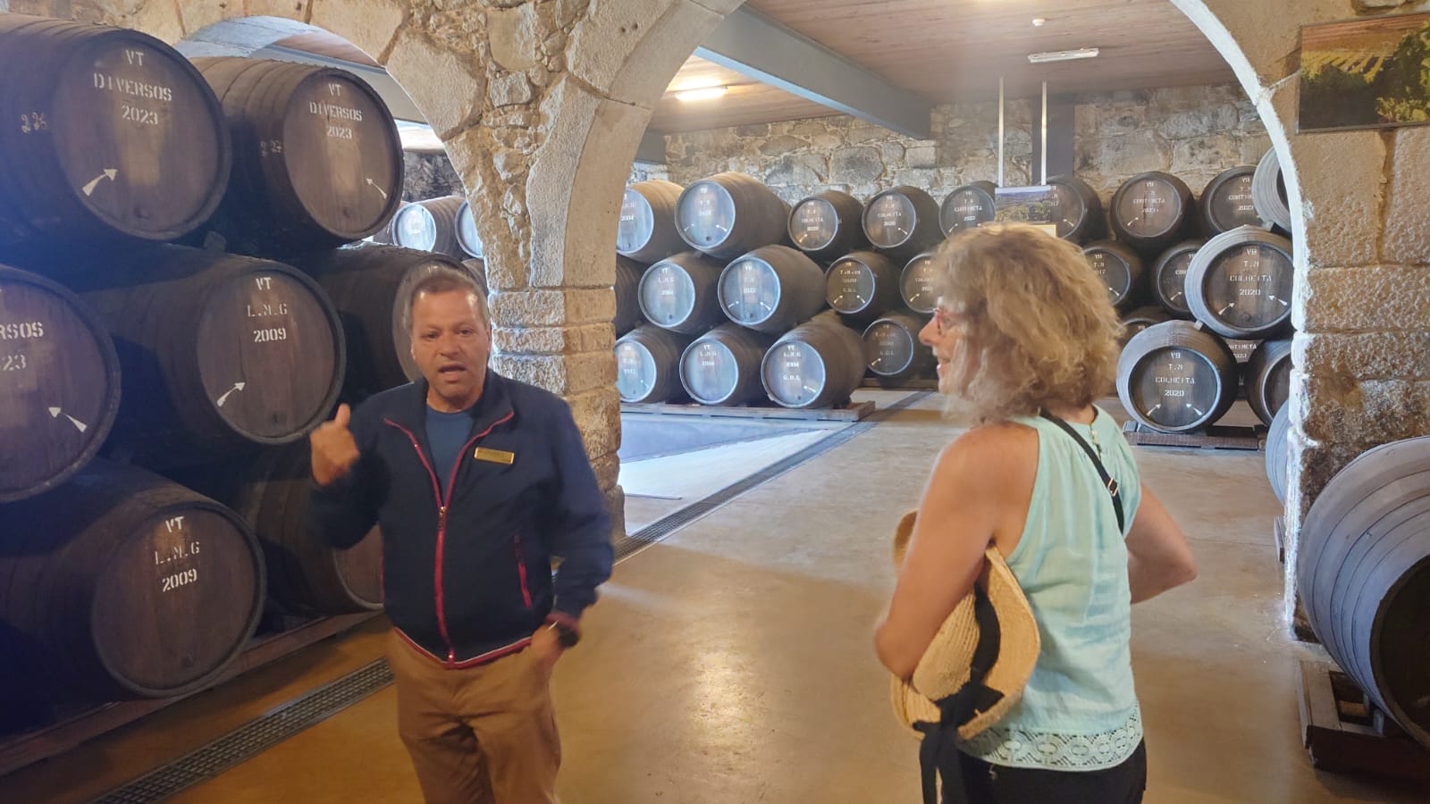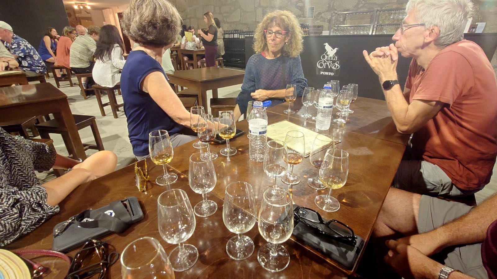 We enter his wine cellar and Jorge talks for an hour and shows all his port wines, telling us all about Port. Very interesting! We learn something new each time!