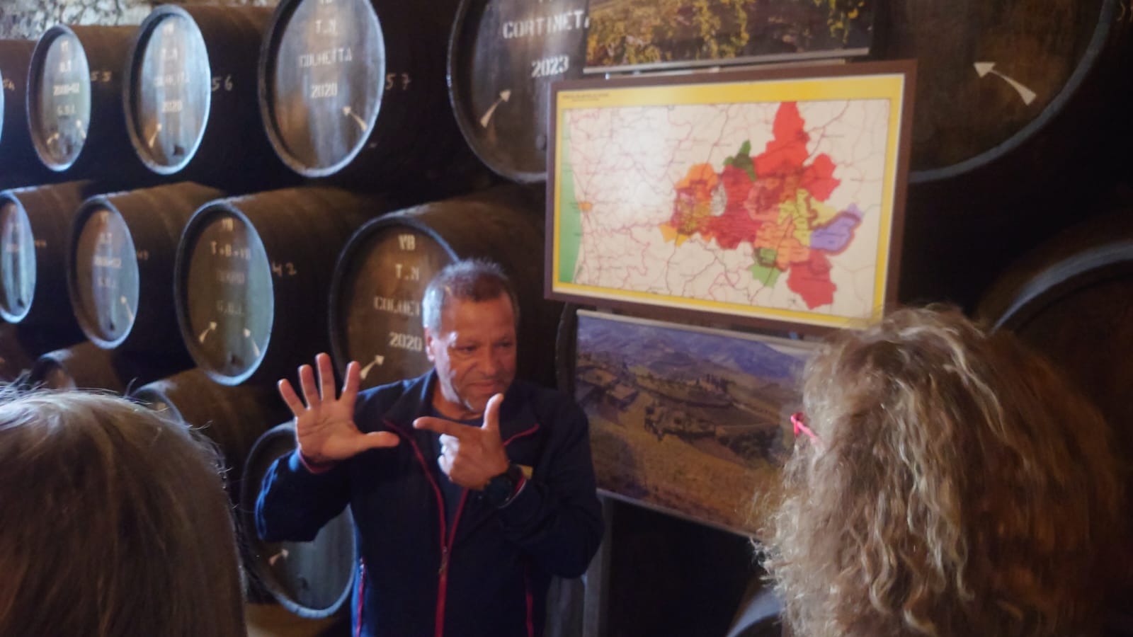 We enter his wine cellar and Jorge talks for an hour and shows all his Port wines and tells us all about Port. Very interesting!