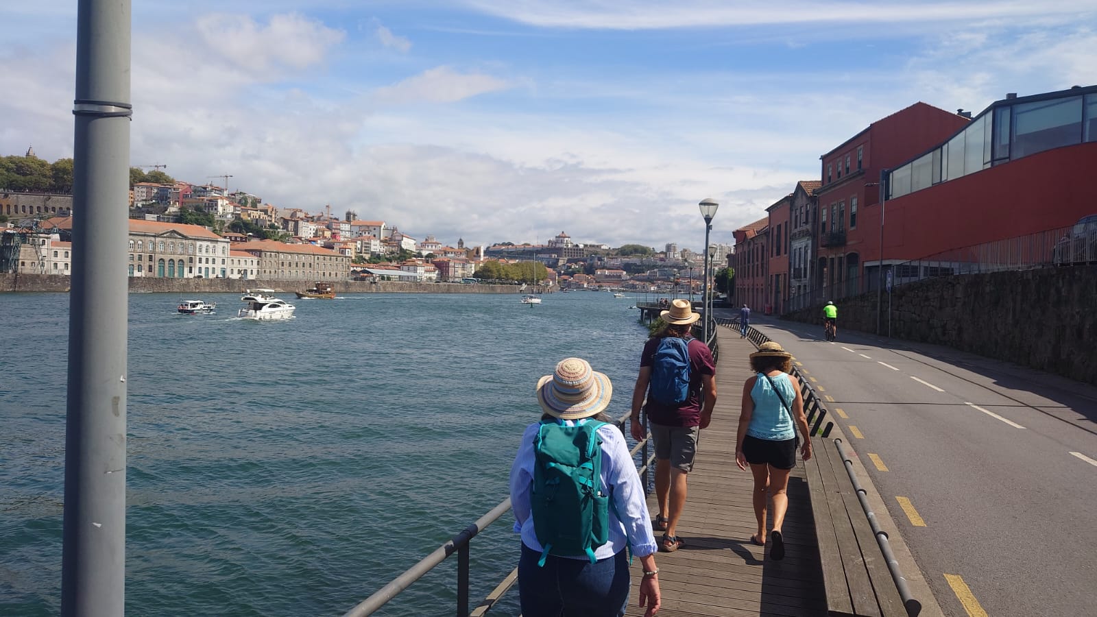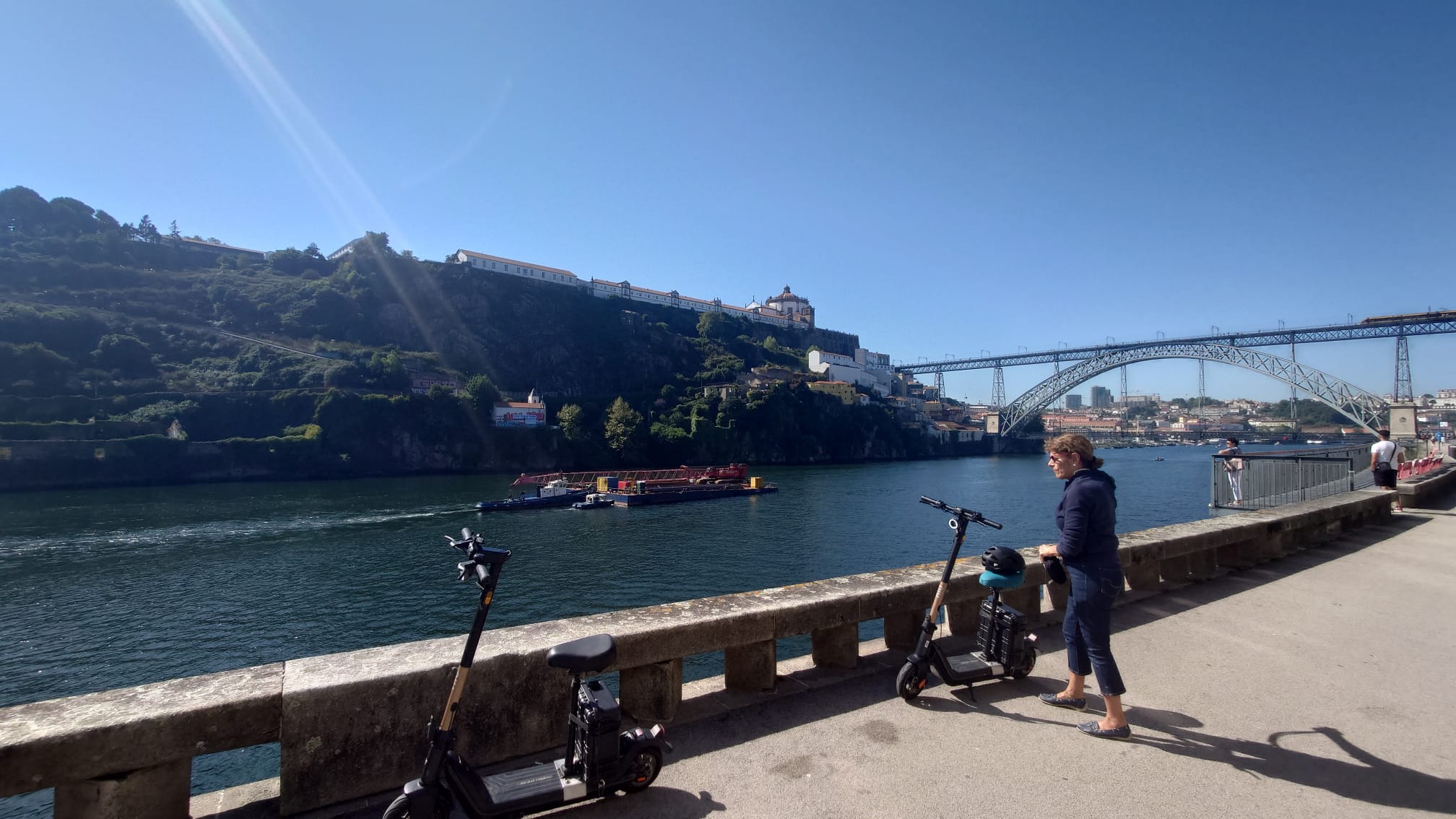 A scooter ride along the river Douro, inland, North side of the river. There should be a bicycle path all along the river. First, we drive to the old town and cross the Luis I bridge.
