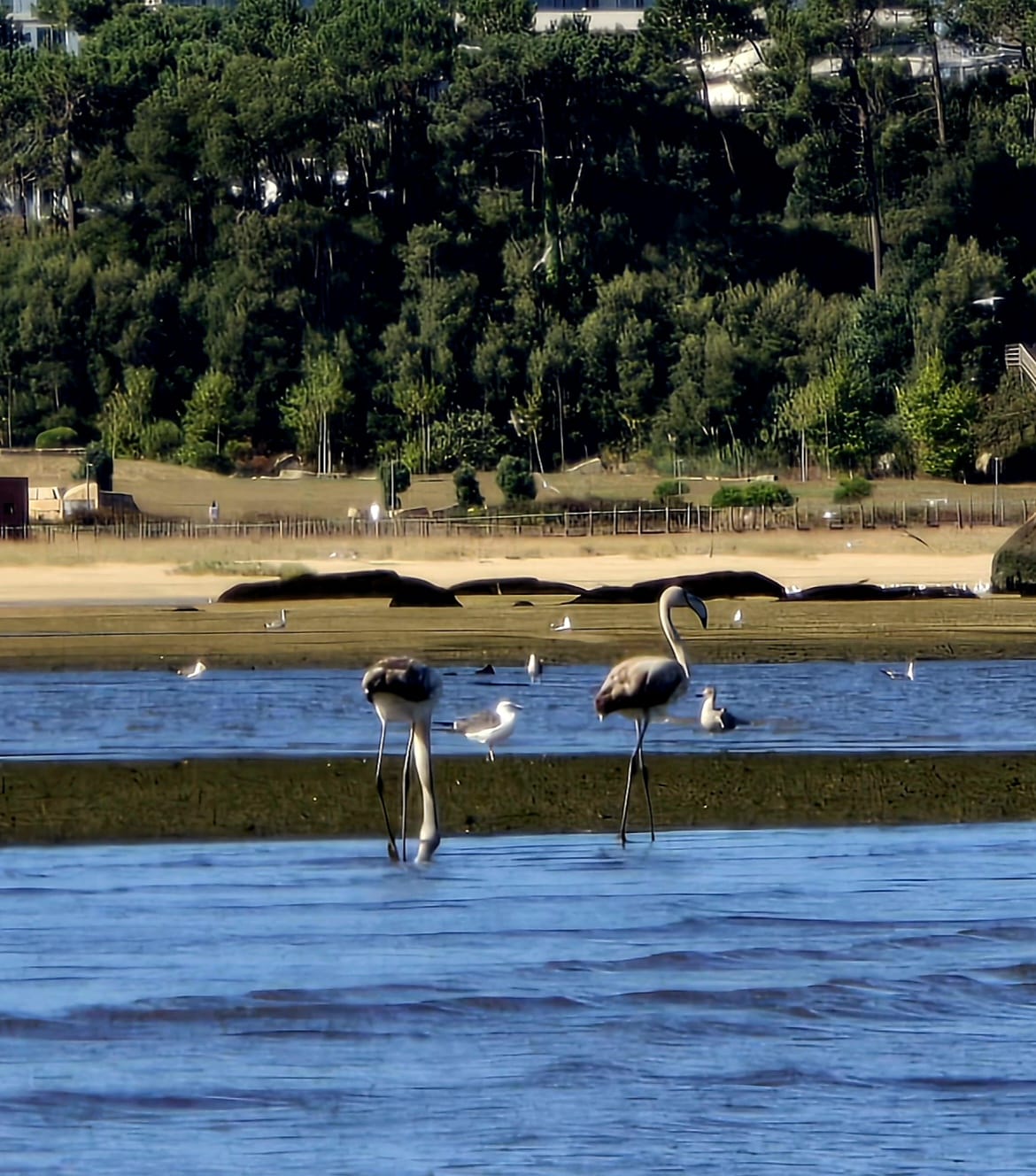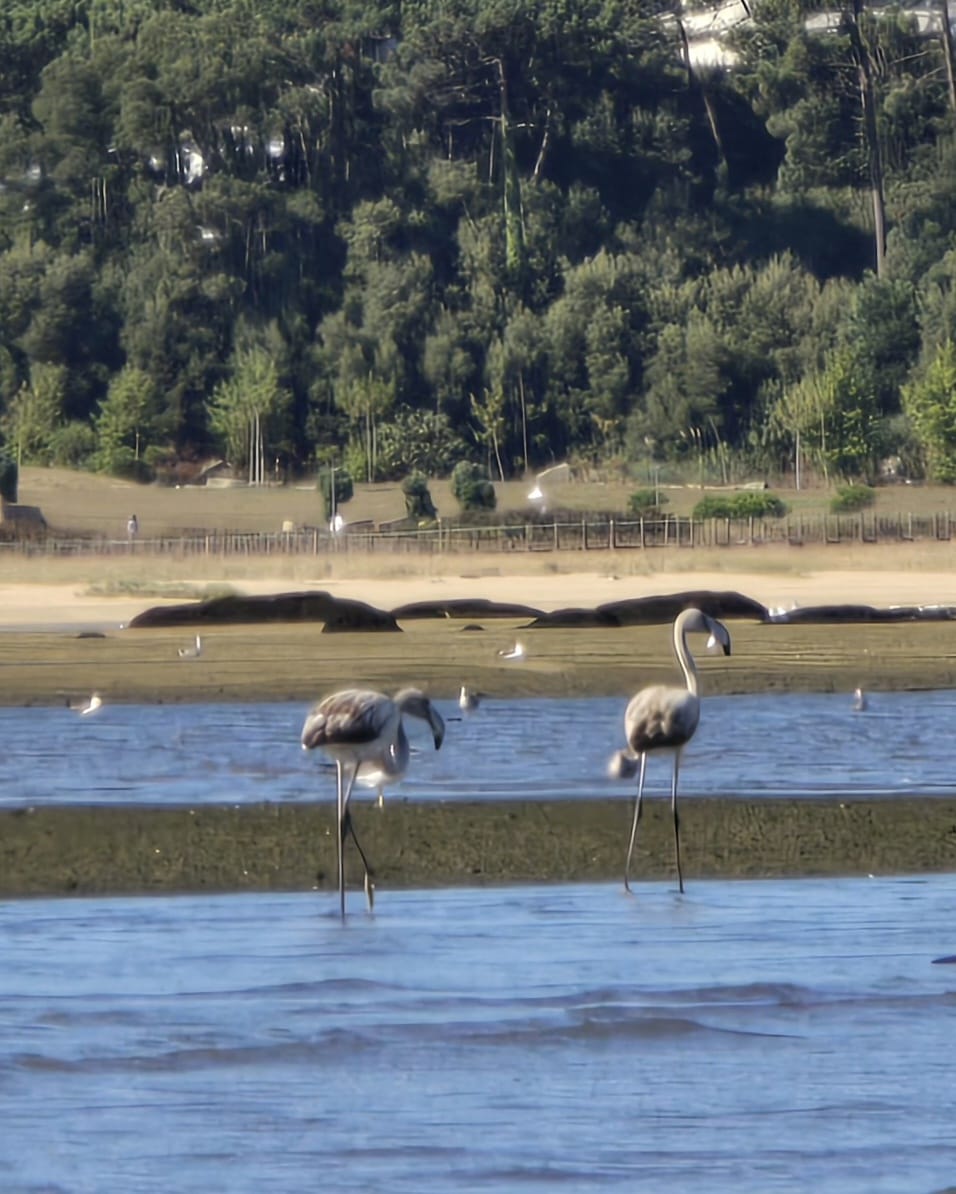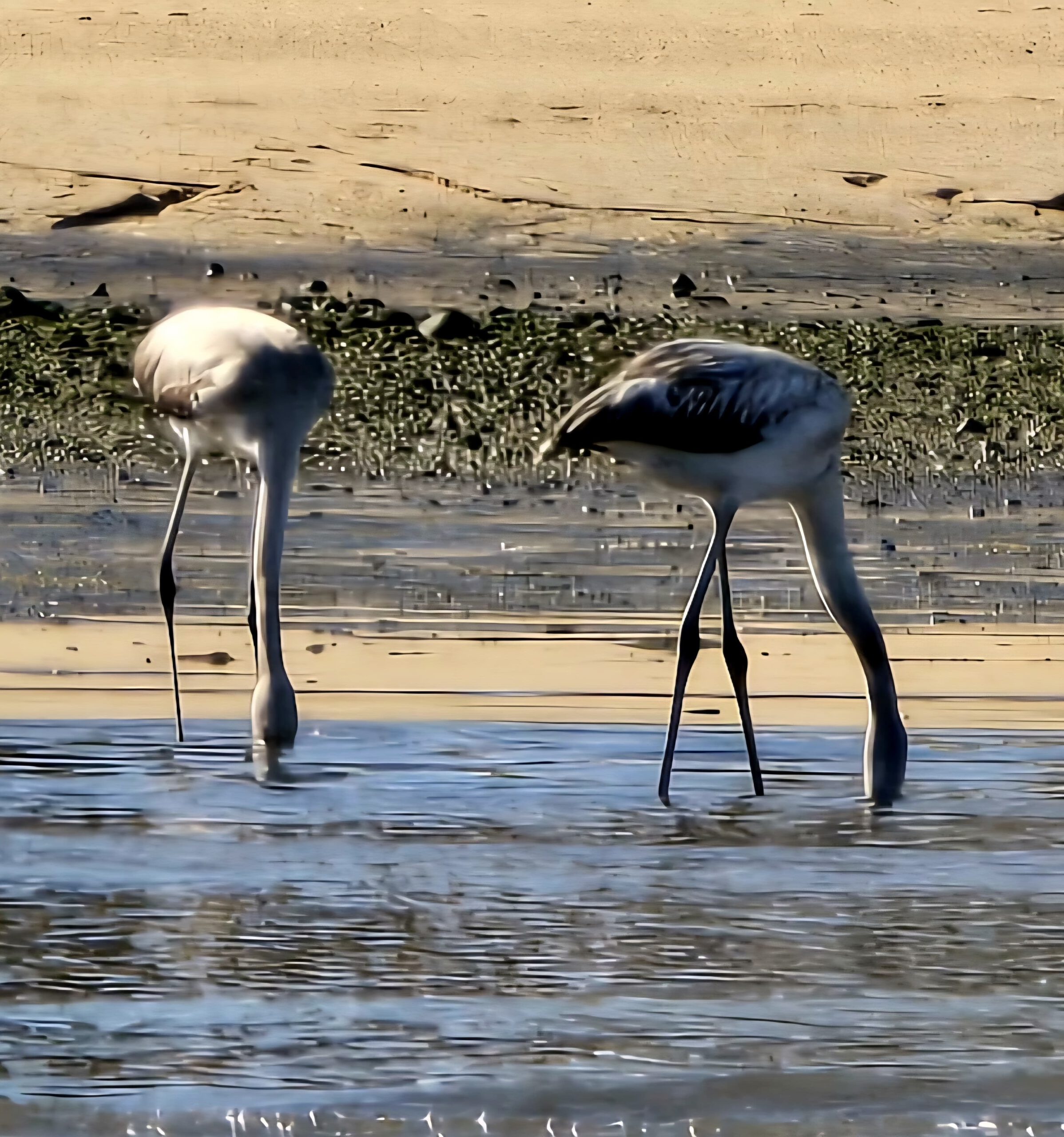 In the morning, Bird Song alerts us that there are flamingos here!!!! What? Really? We look through the binoculars, and yes!!!!… we see Flamingo’s at the beach! They are not pink, they are shades of gray, but they are gorgeous!