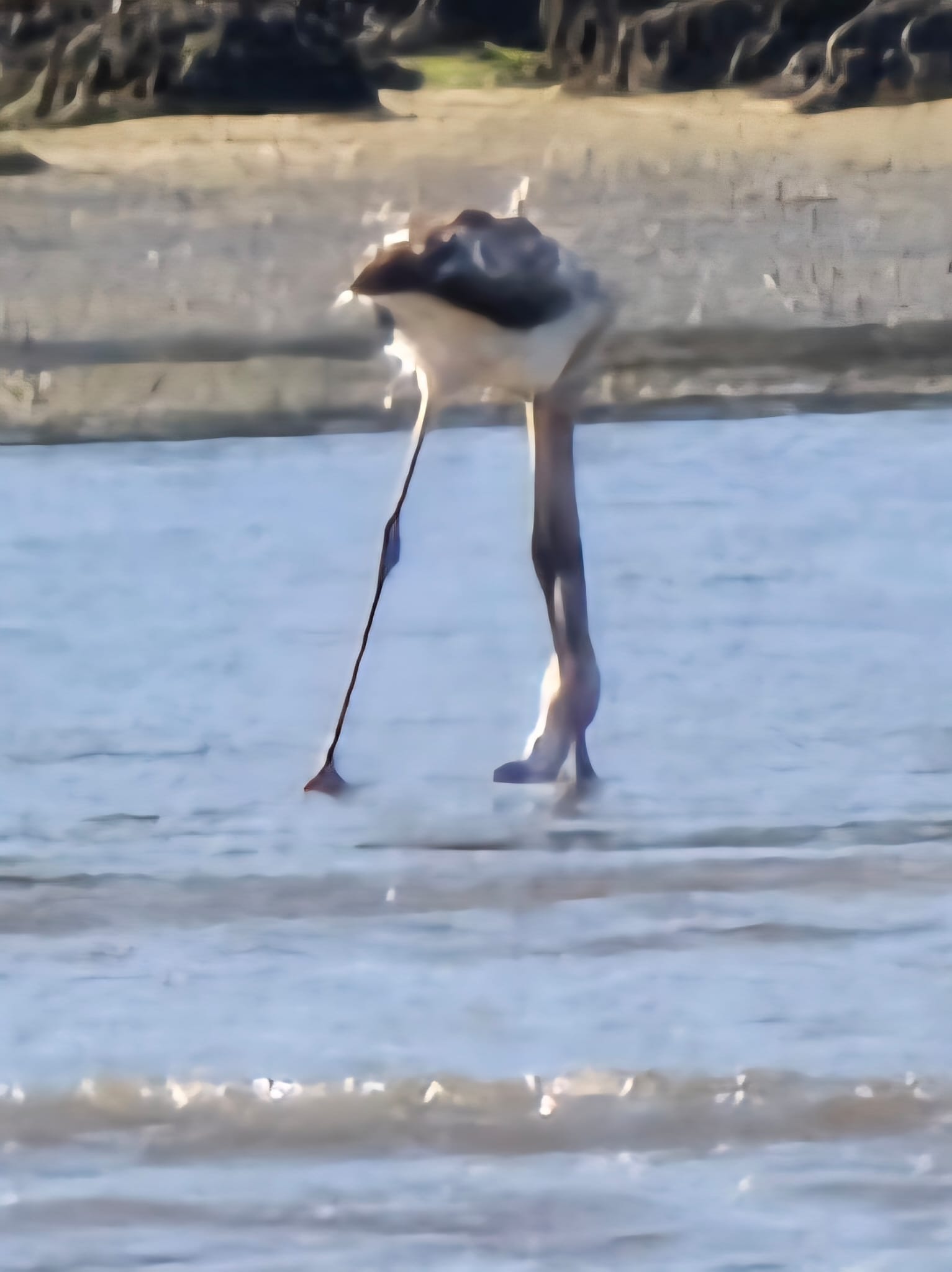 The following morning, Bird Song alerts us that there are flamingos here!!!! What? Really? We look through the binoculars, and yes!!!!… we see Flamingo’s at the beach! They are not pink, they are shades of gray, but they are gorgeous!