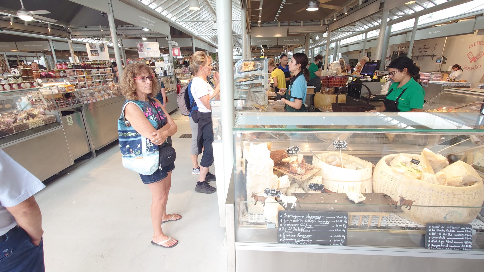 We wobble along the quay, cross the bridge, and have lunch at a wonderful little cafe called Pregar. Then Castro is just a few doors down the street for dessert! Yummy! Afterwards, we have a walk to the Sao Bento market, where we have been last year and found the same places with delicious cheeses!