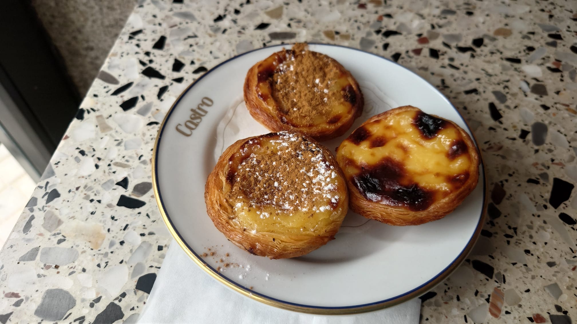 We have coffee and a not-so-good Pastel de Nata in a little restaurant near the marina do Freixo.
